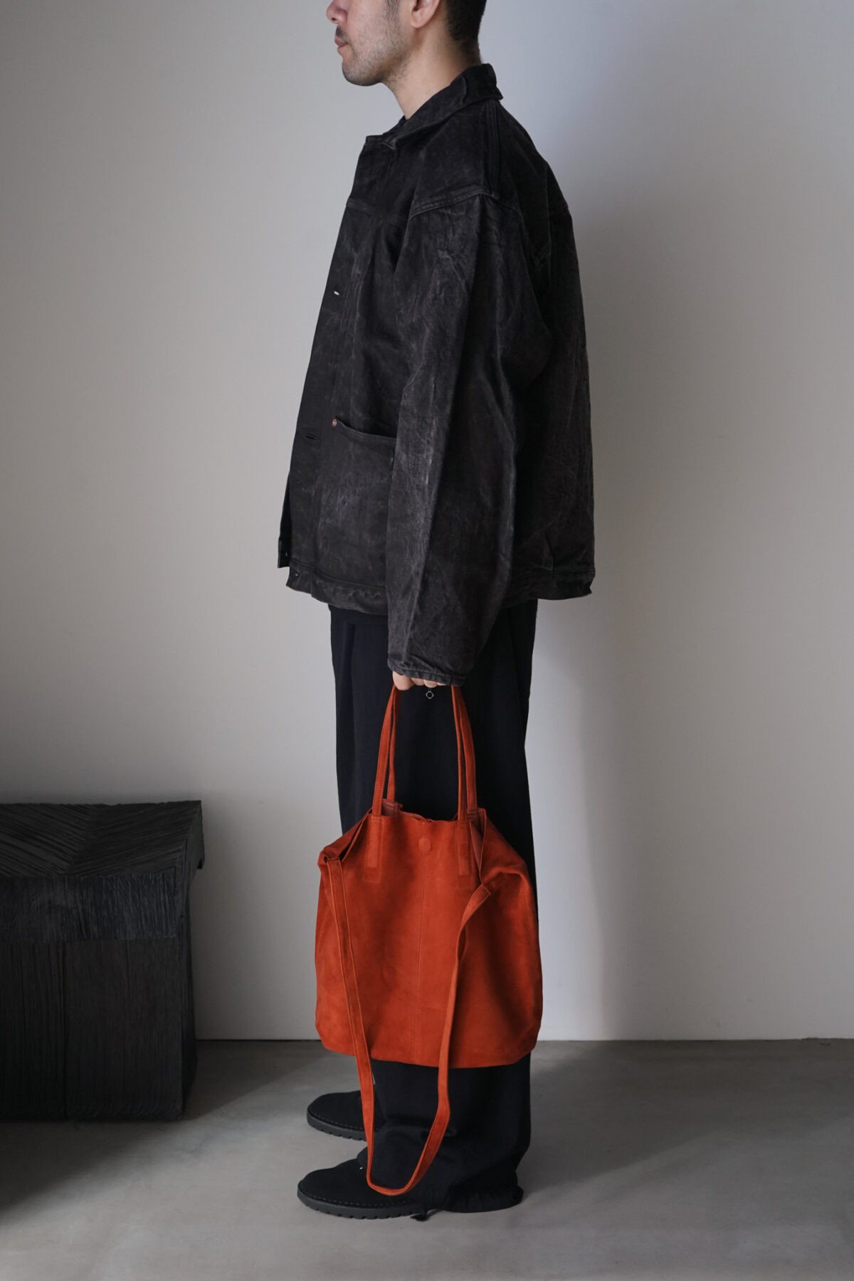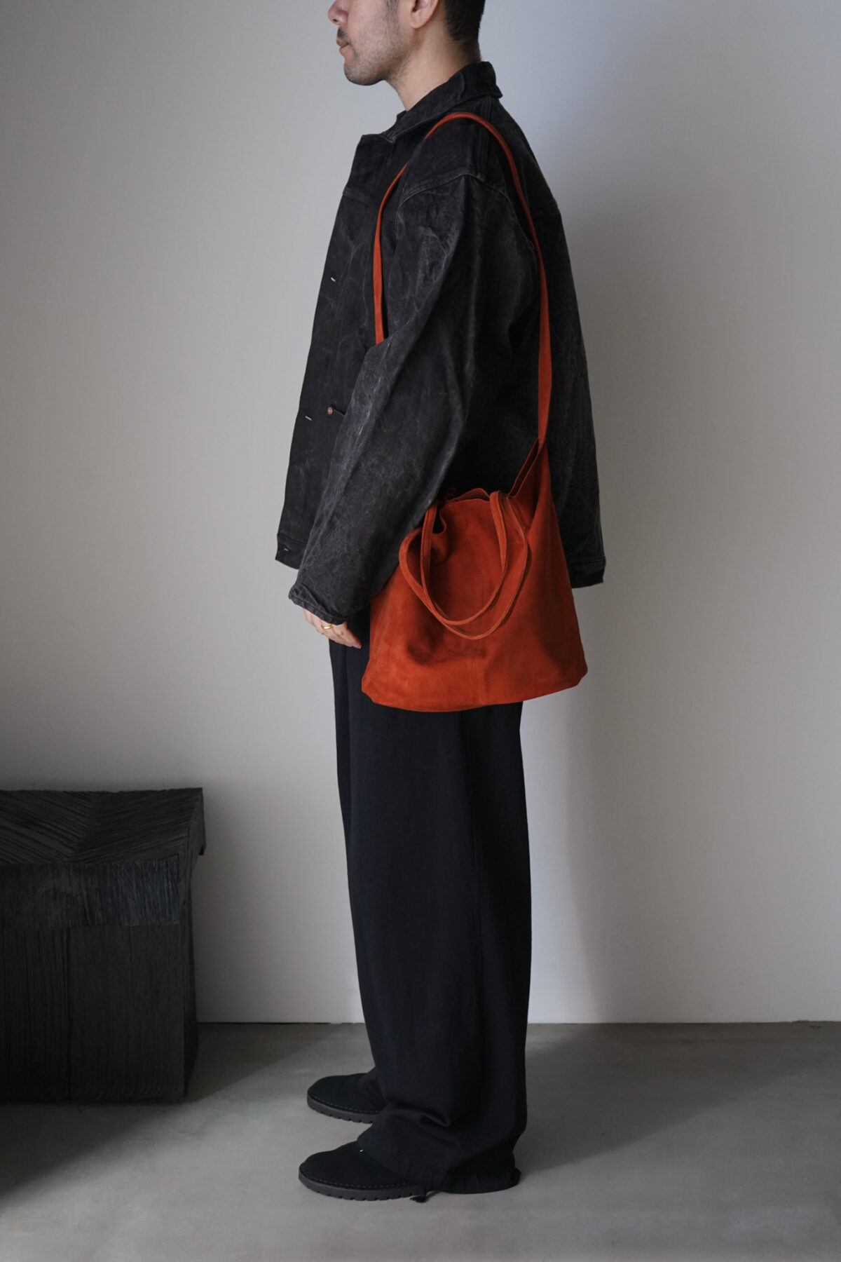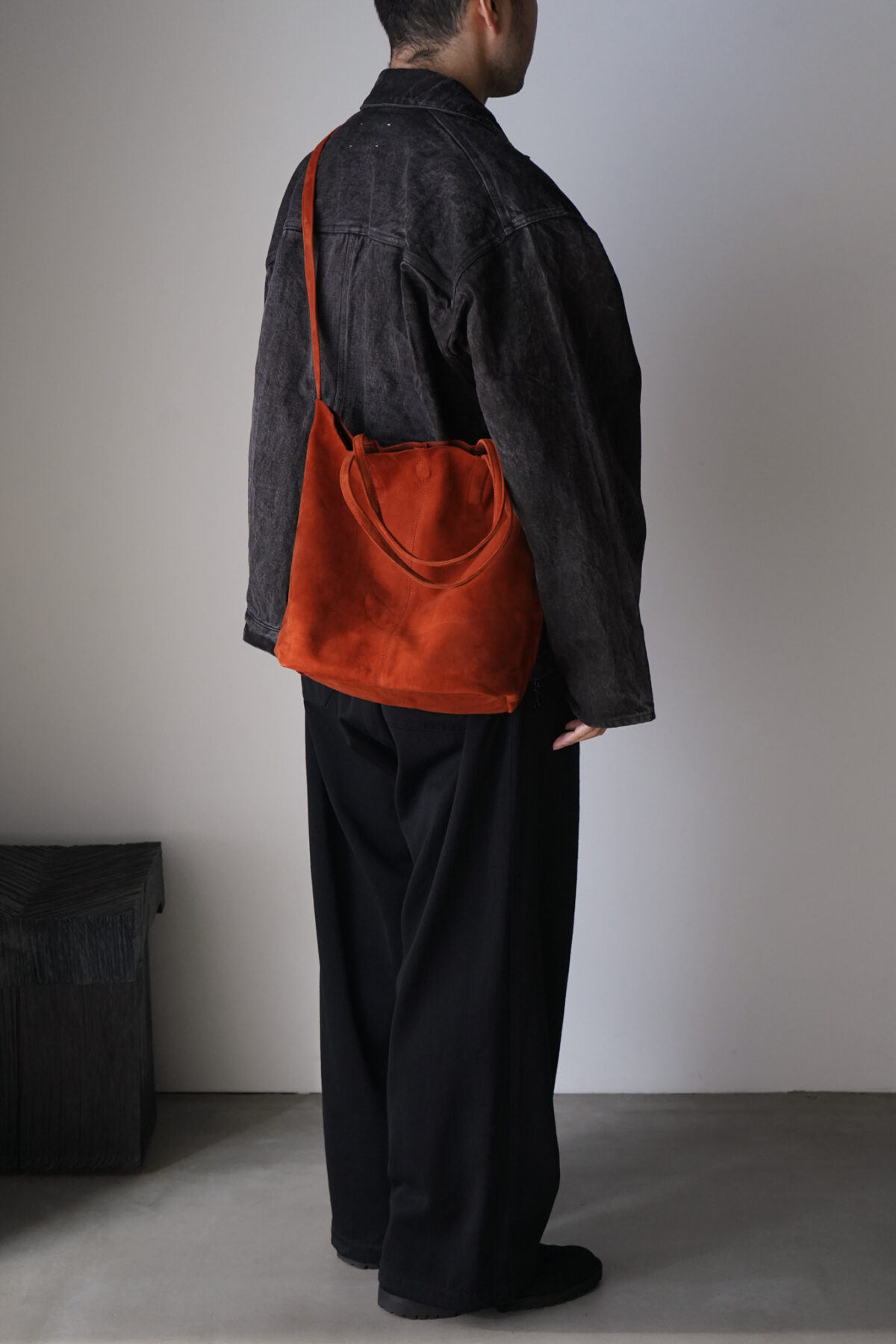 微量のオイルを入れることで通常のスエードレザーに比べより撥水効果が期待できます。普遍的でデイリーにお使いいただけるデザイン性、また丈夫さを併せ持ち、経年により美しさが増していくレザーバックです