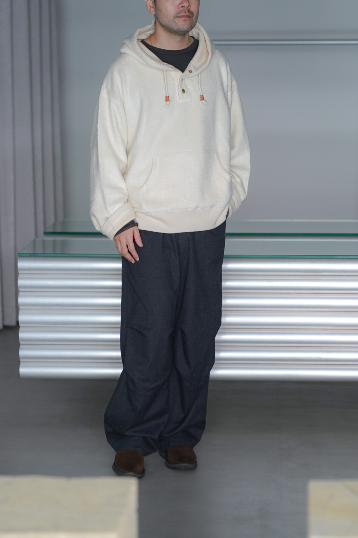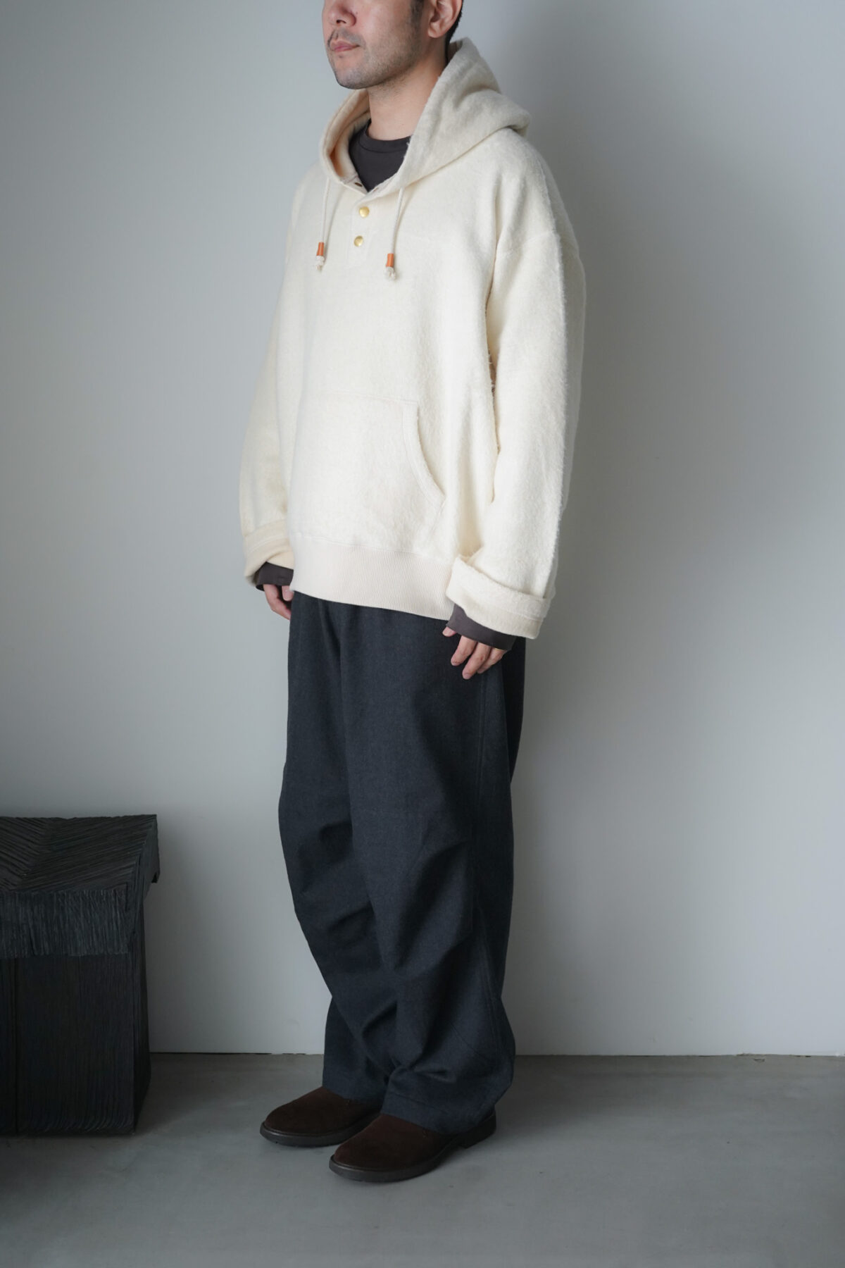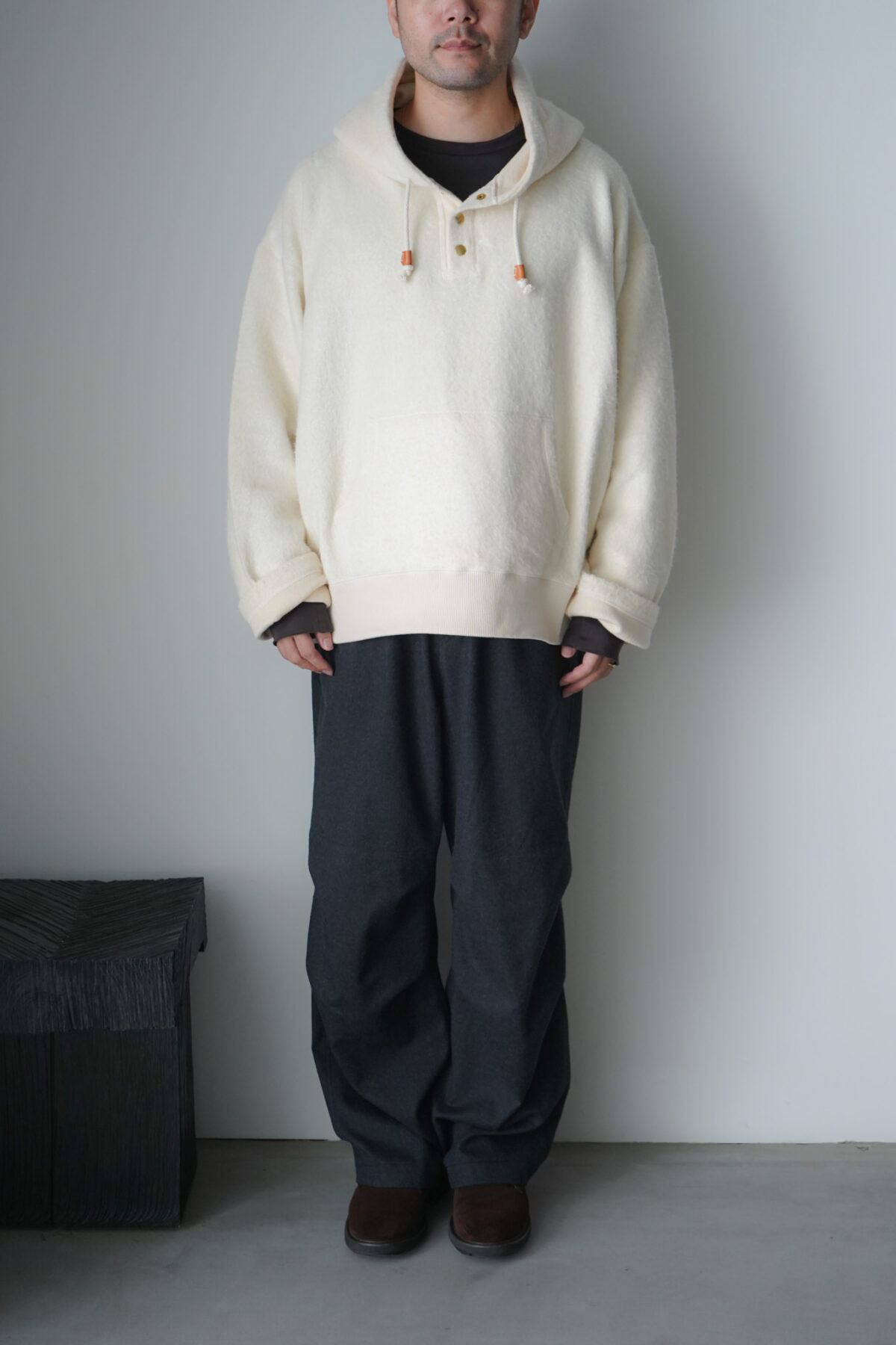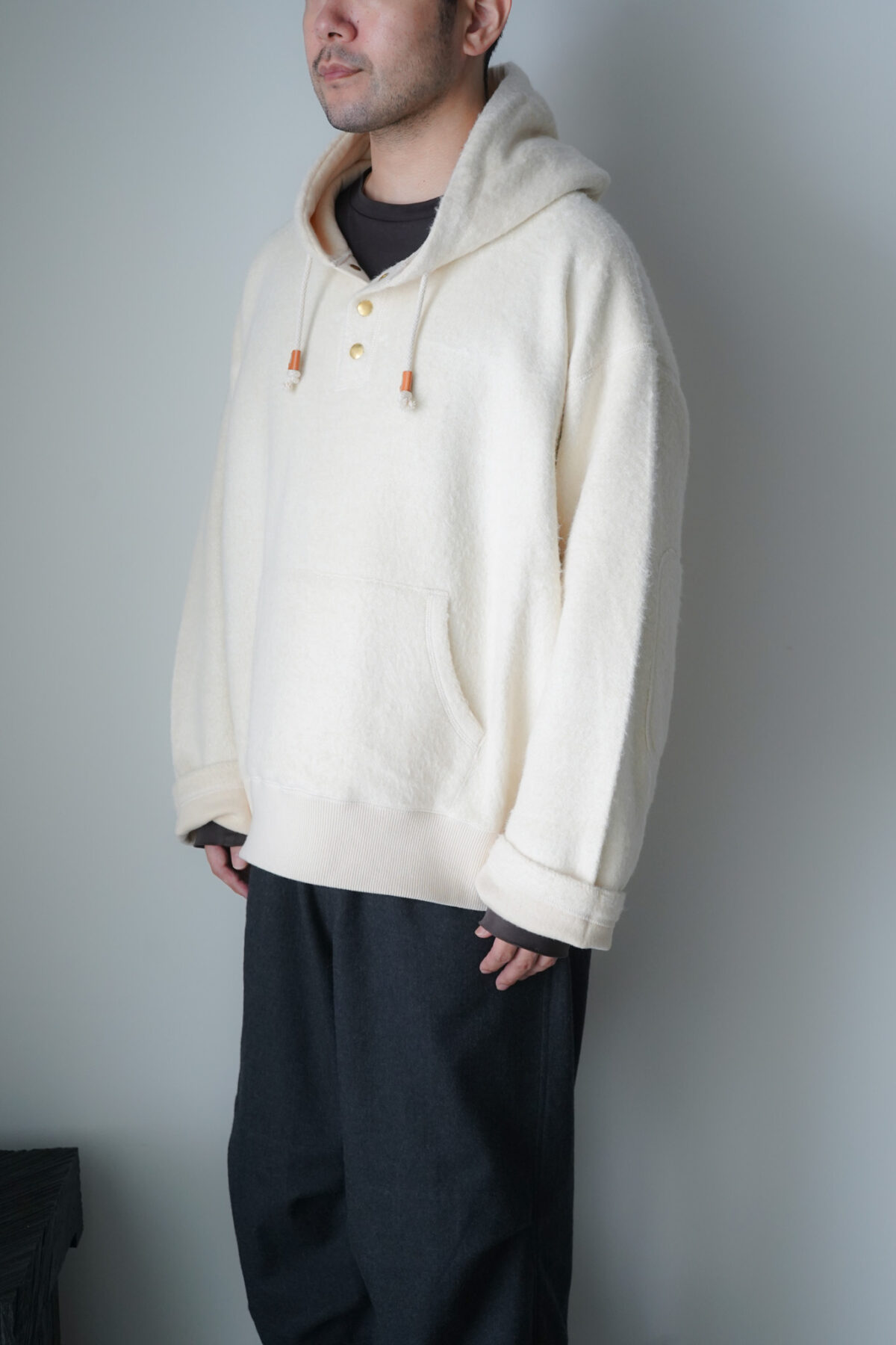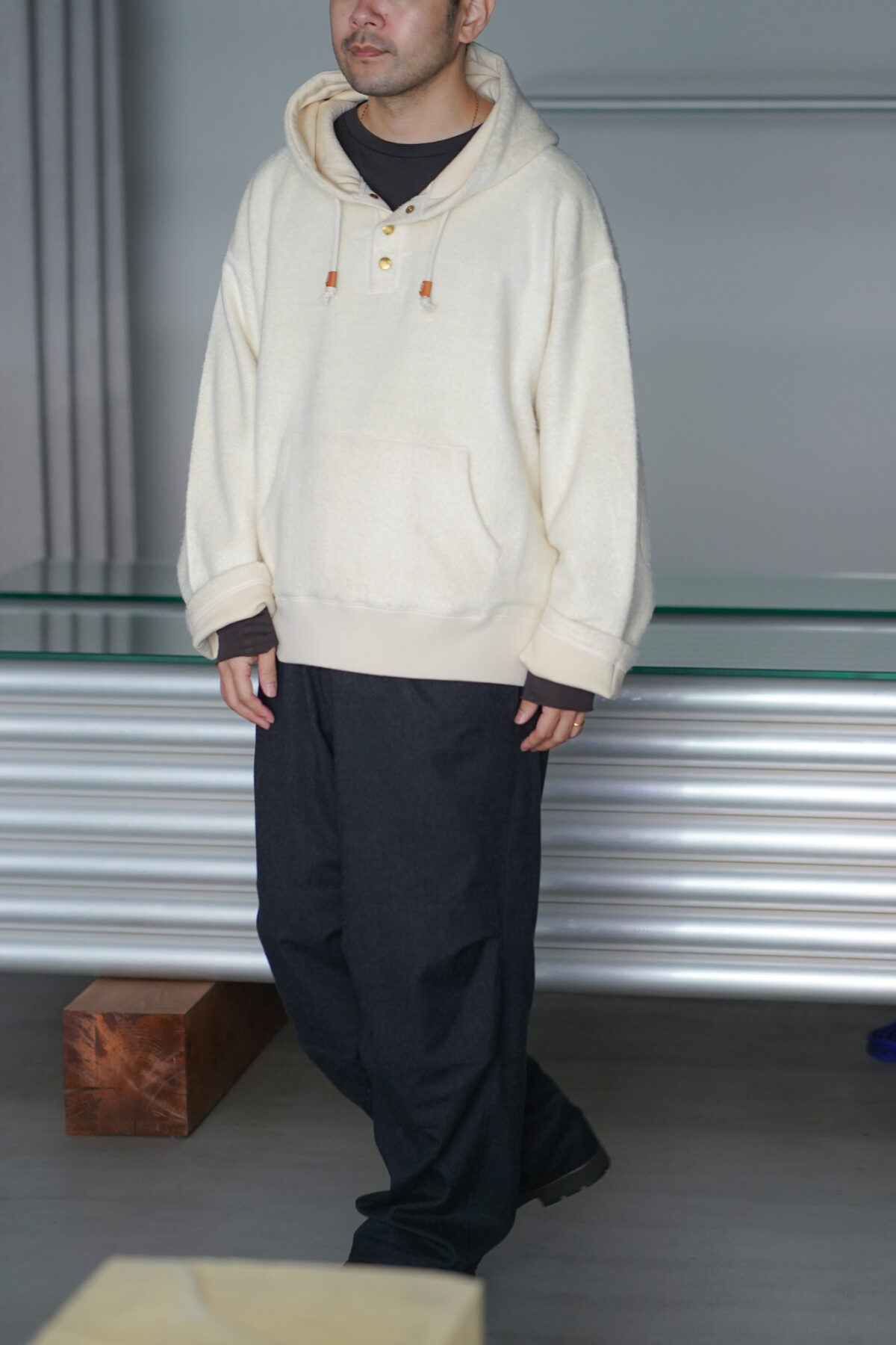 ゆったりとしたサイズ感でアウターとしてもインナーとしても着用可能。リバーシプル仕様で裏表両方楽しめるパーカーです。