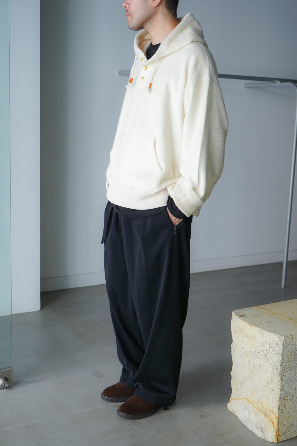 ゆったりとしたサイズ感でアウターとしてもインナーとしても着用可能。リバーシプル仕様で裏表両方楽しめるパーカーです。