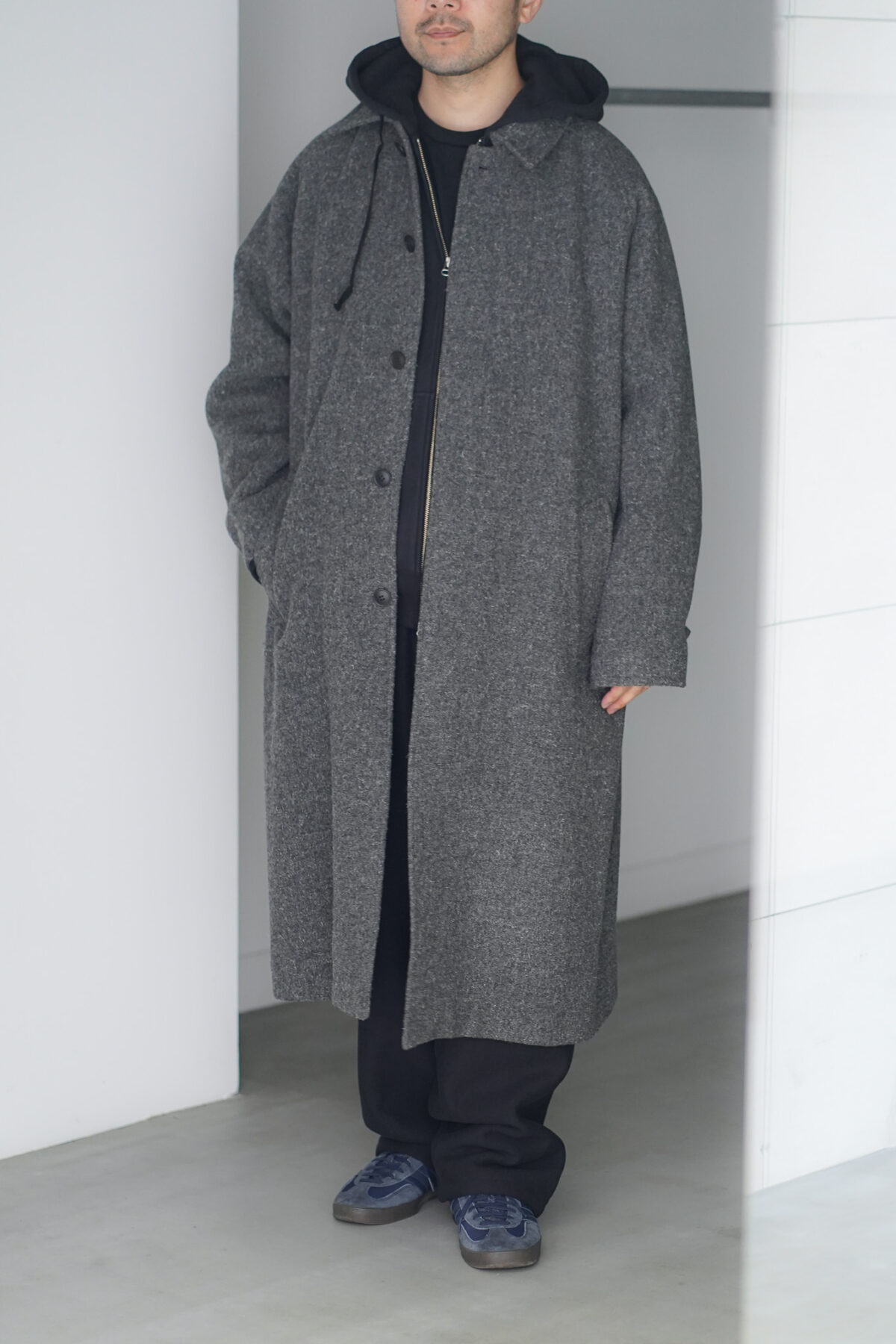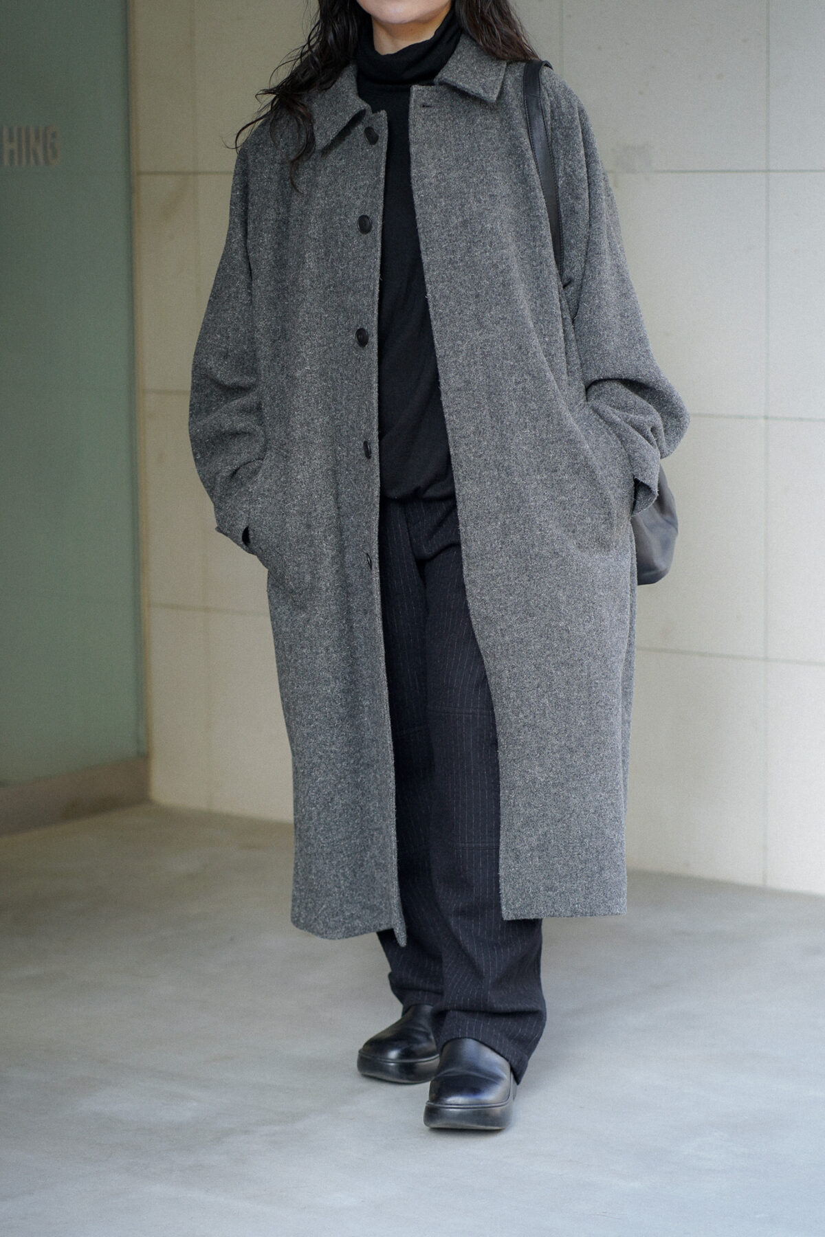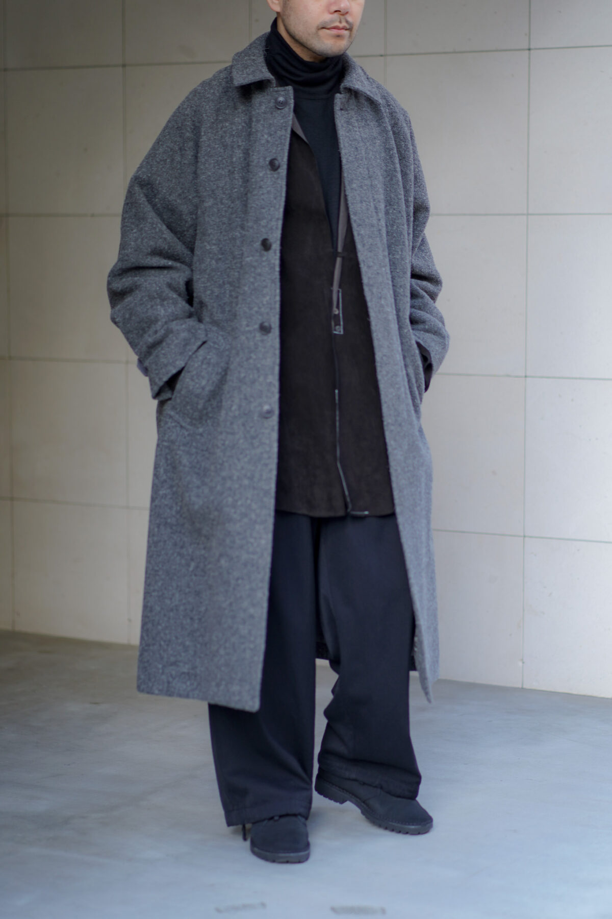 クラシックなロングコートのデザインをルーズなサイズ感に落とし込んだオーバーサイズバルカラーコート。