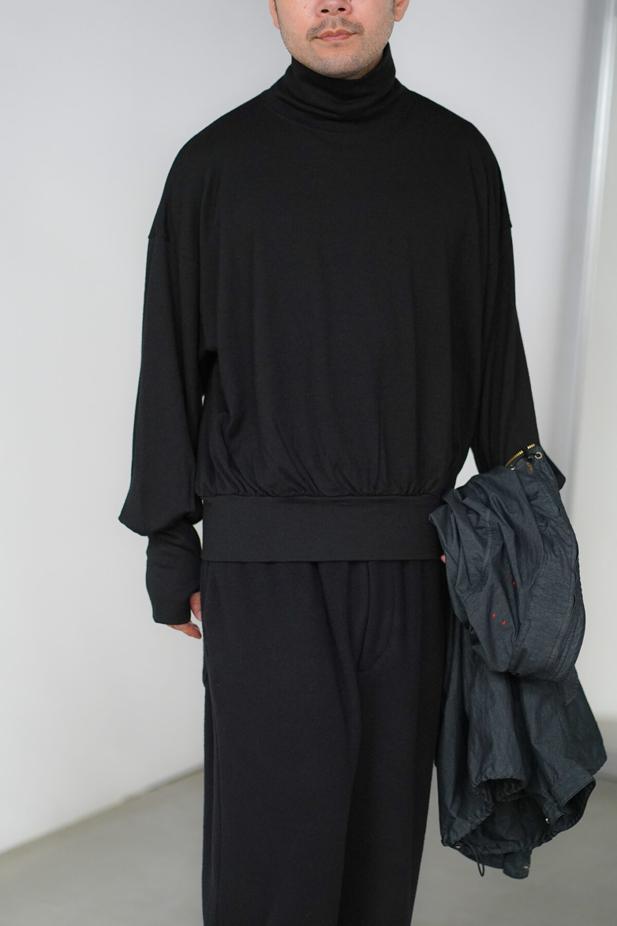 スタイリングのベースとして着用したいタートルネック。首周りは緩やかで程よい余白があり、袖にはフィンガーホールが付いています。