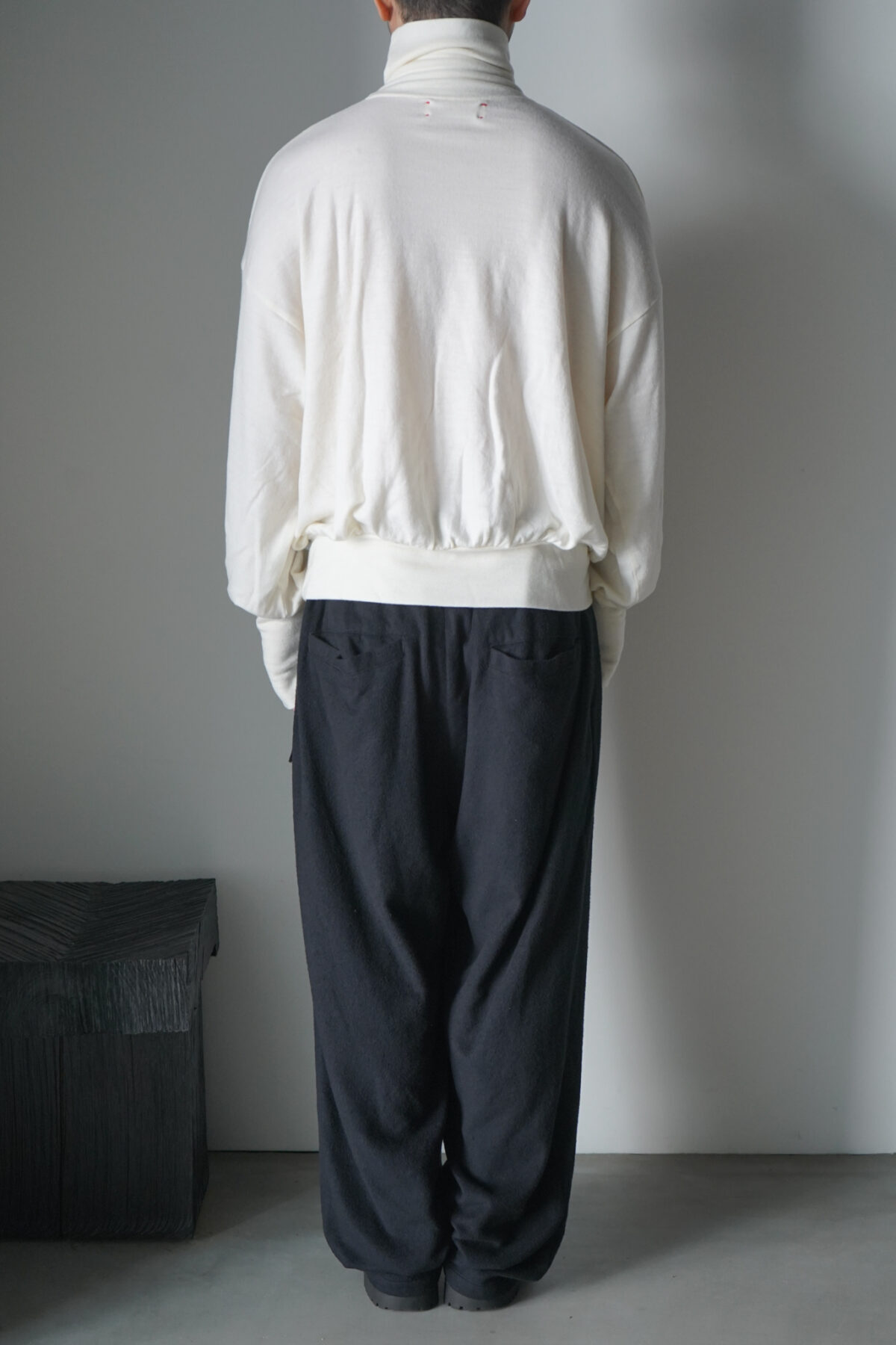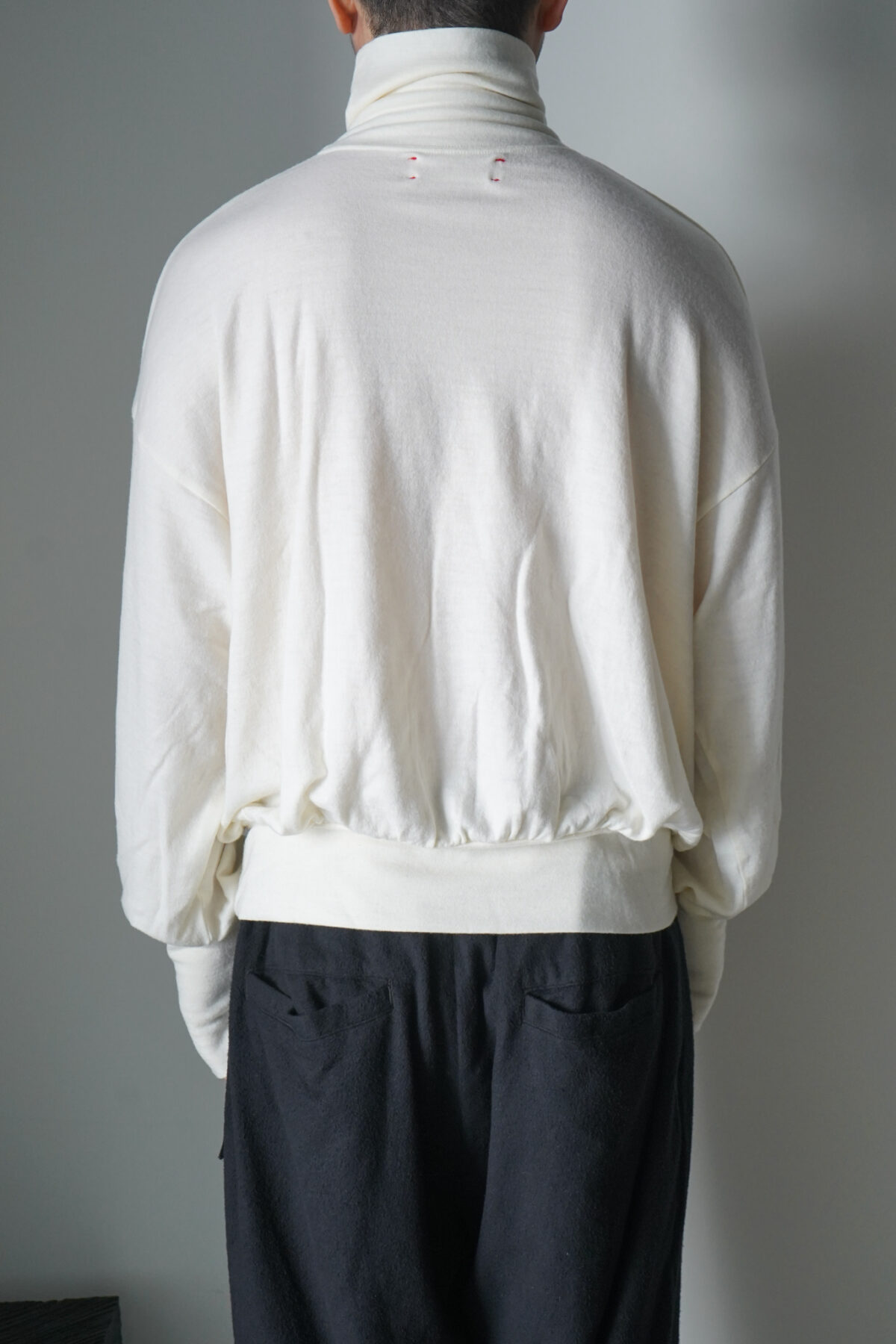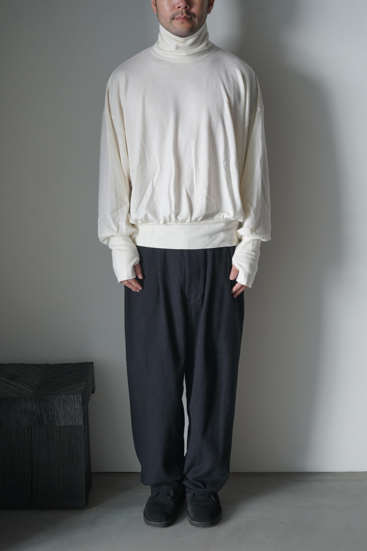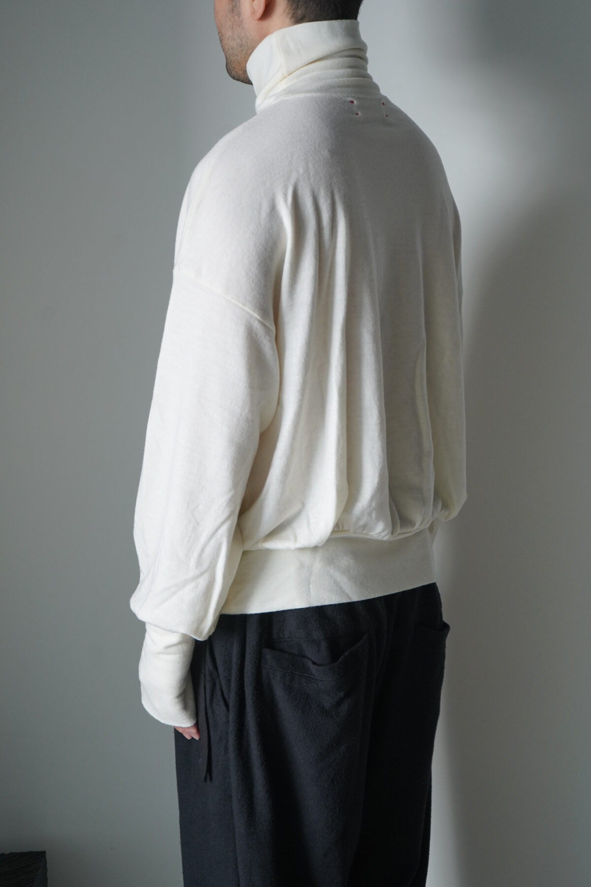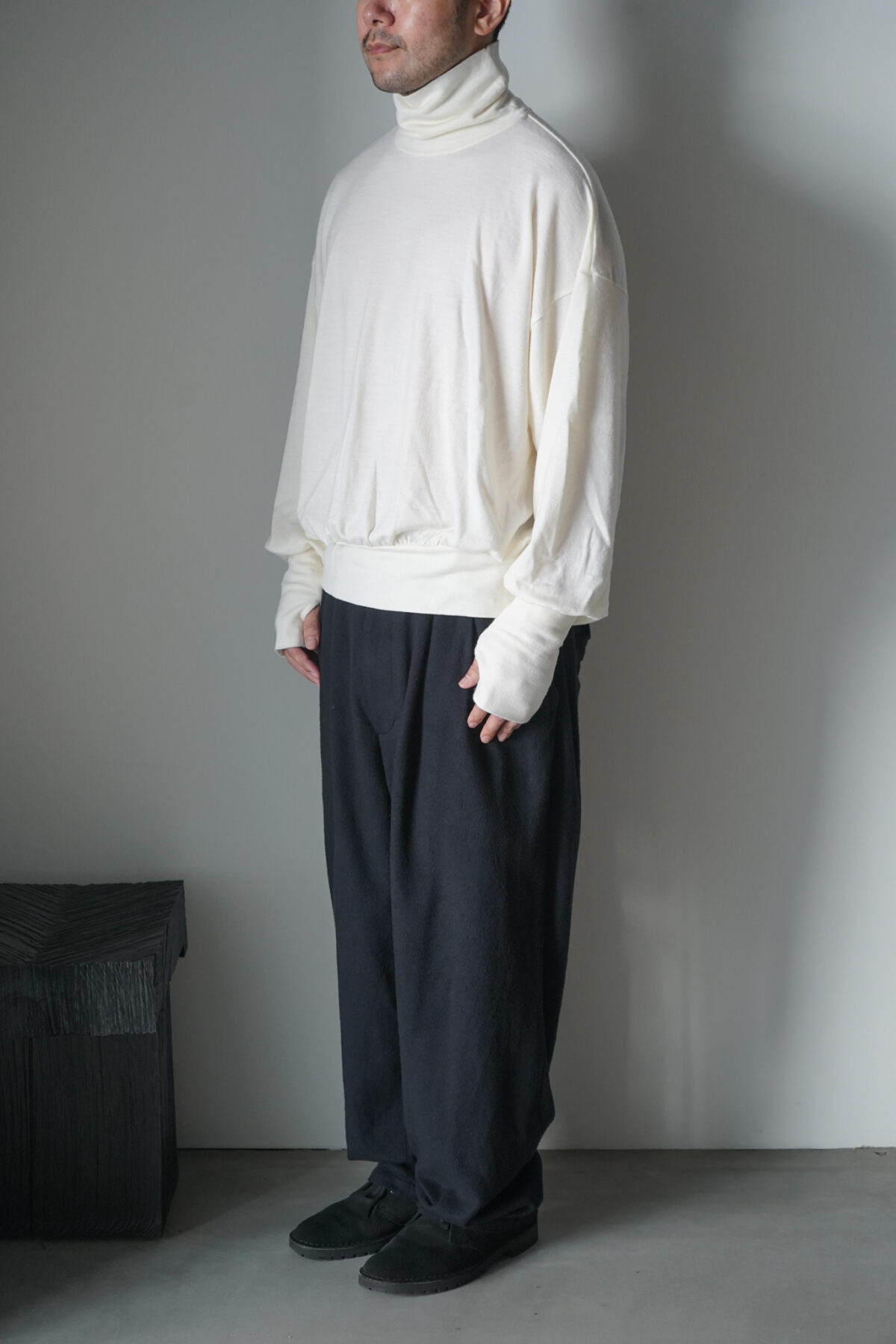スタイリングのベースとして着用したいタートルネック。首周りは緩やかで程よい余白があり、袖にはフィンガーホールが付いています。