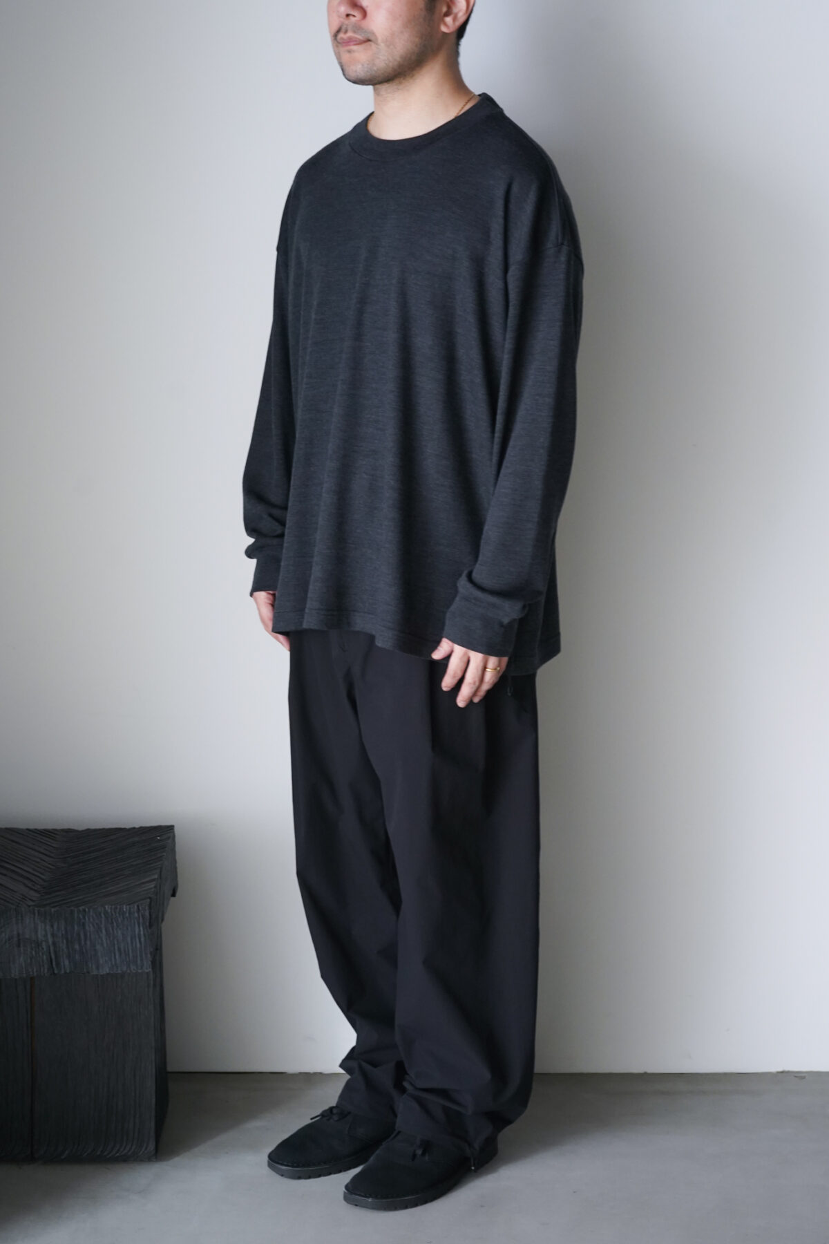 UNTRACE BOX WOOL TEE L/S _241 CHARCOAL