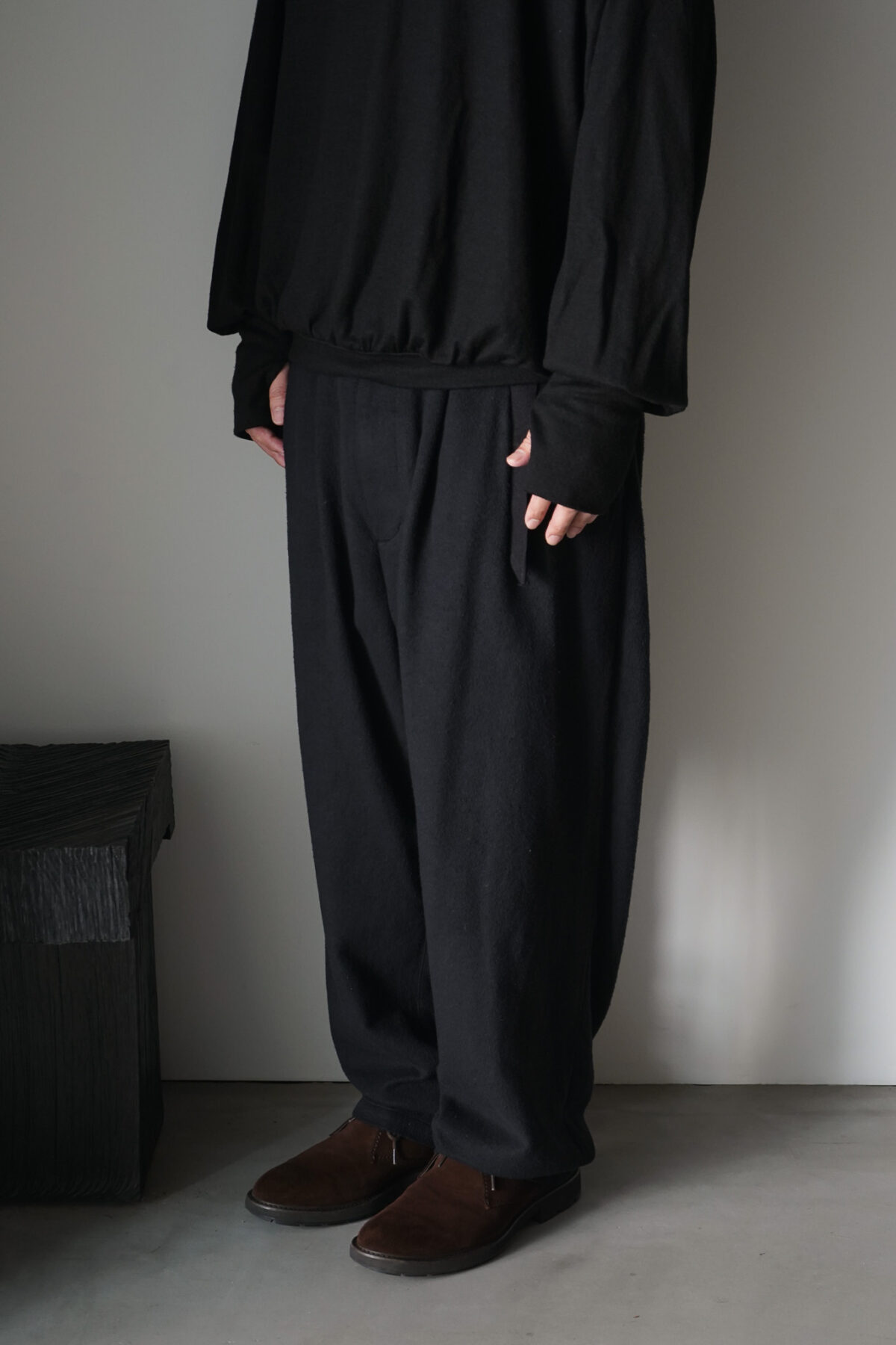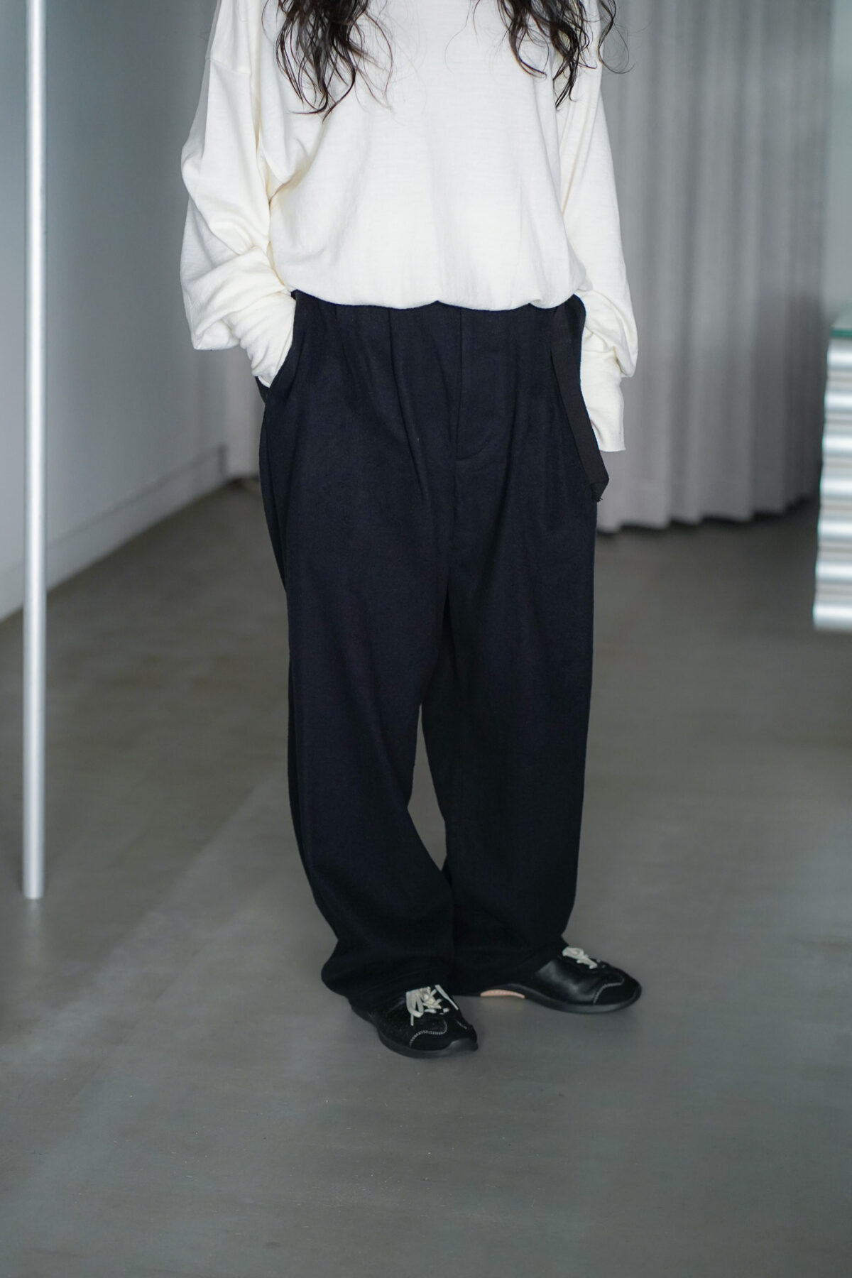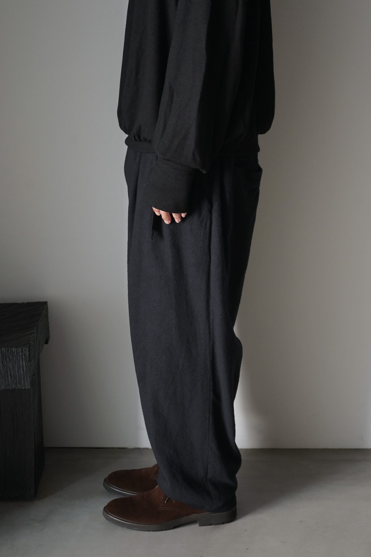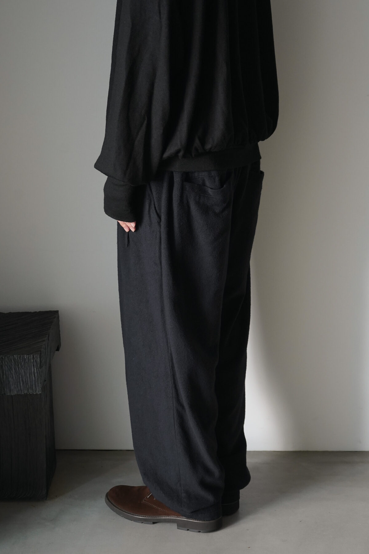 快適なホールド感を演出してくれるクリップがウエストに採用されたclip pt。腰回りにゆとりがあり、裾にかけて少しテーパードした馴染みのあるシルエット。オーガニックコットンとピュアシルクのライトキャンバス生地、表地の柔らかな表情やタッチに反して裏面は肌離れが大変よく快適にご着用いただけます。