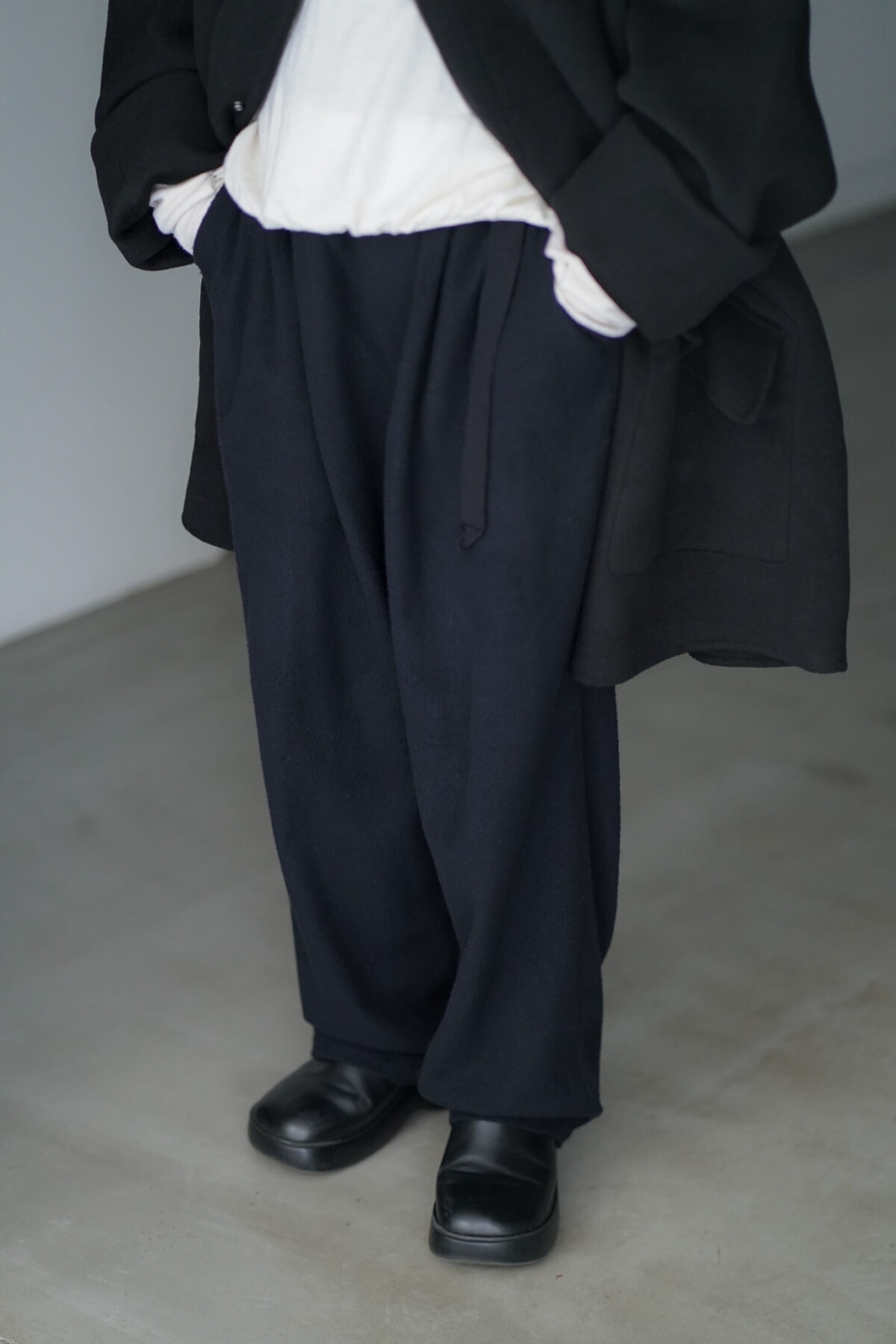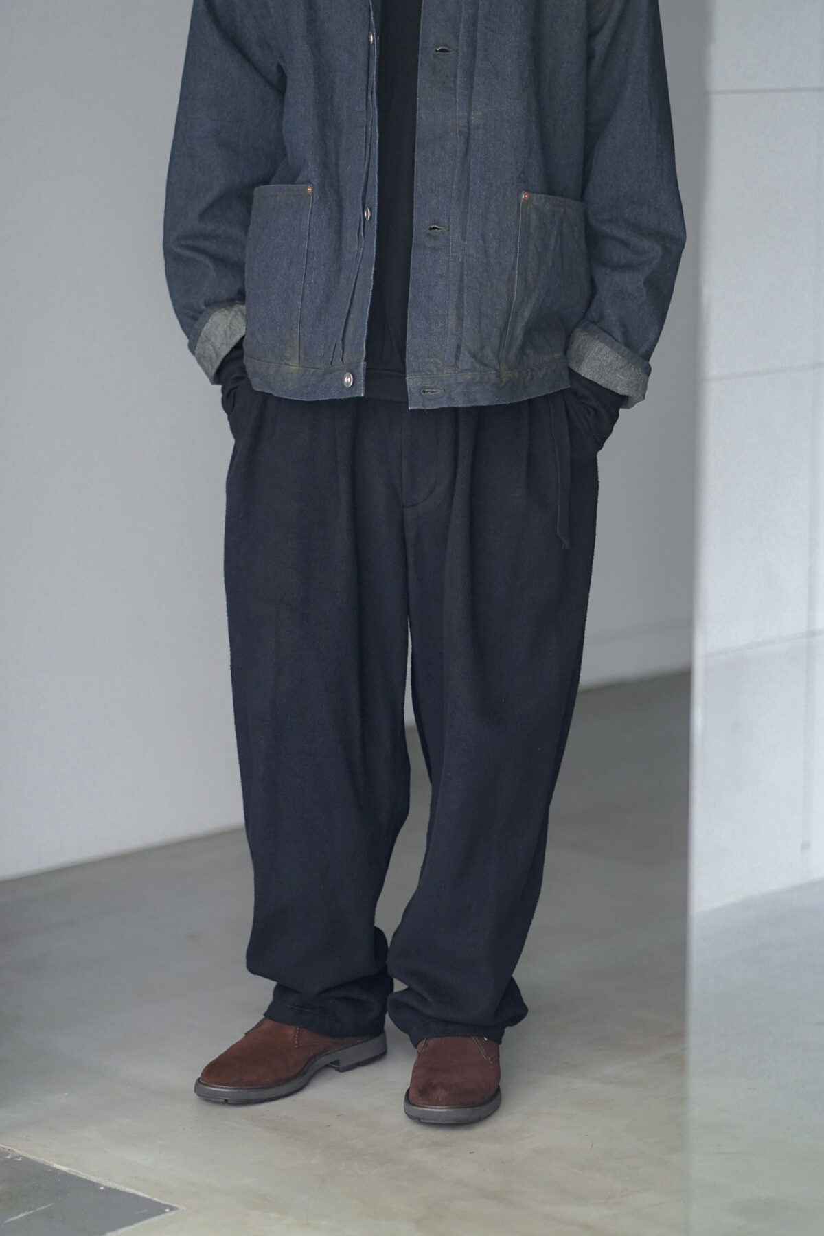 快適なホールド感を演出してくれるクリップがウエストに採用されたclip pt。腰回りにゆとりがあり、裾にかけて少しテーパードした馴染みのあるシルエット。オーガニックコットンとピュアシルクのライトキャンバス生地、表地の柔らかな表情やタッチに反して裏面は肌離れが大変よく快適にご着用いただけます。