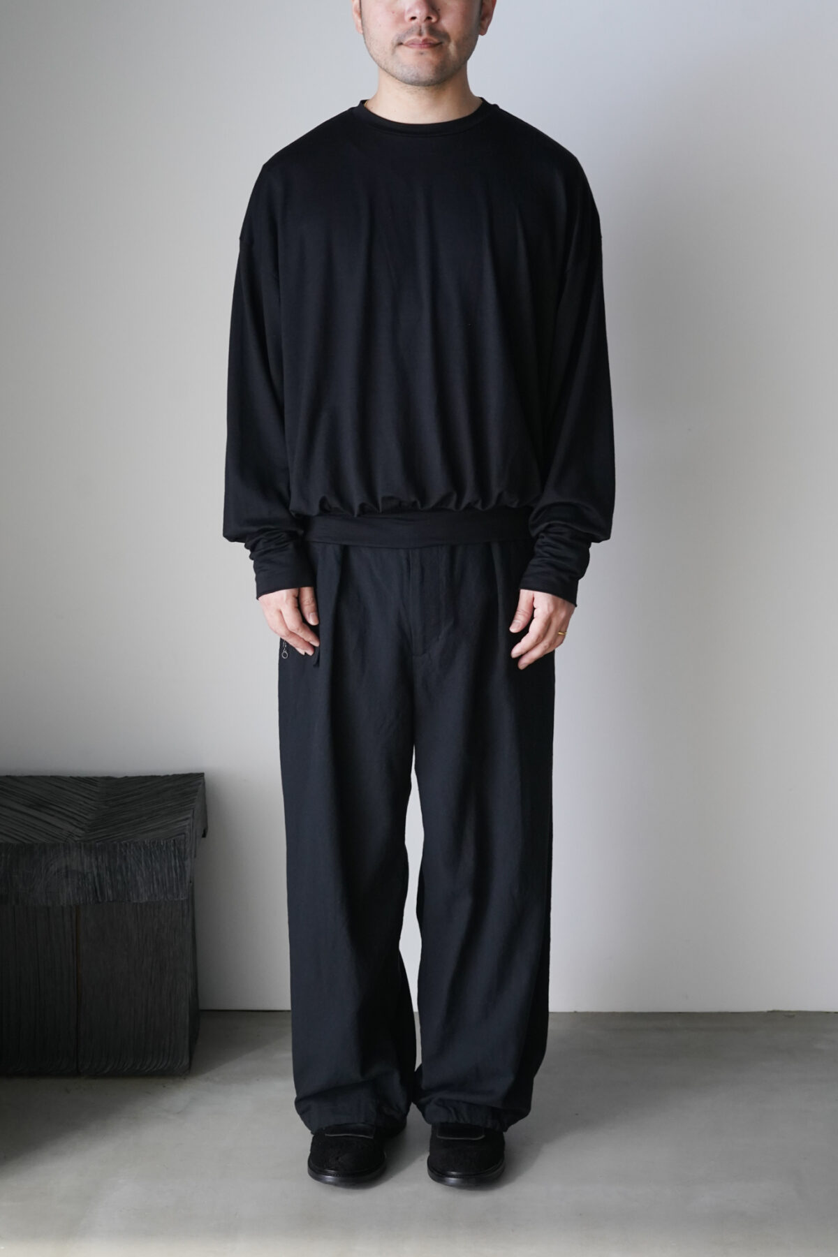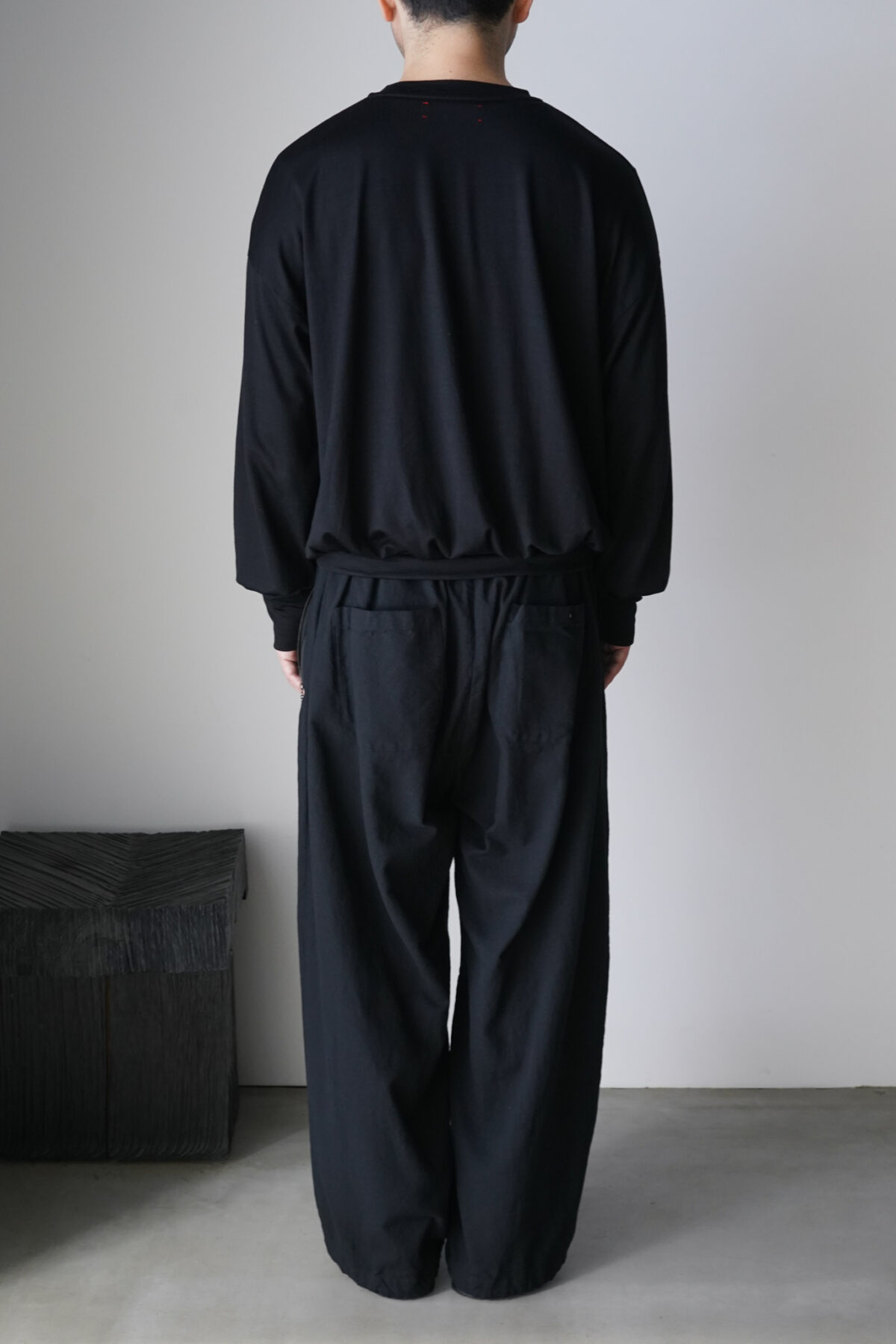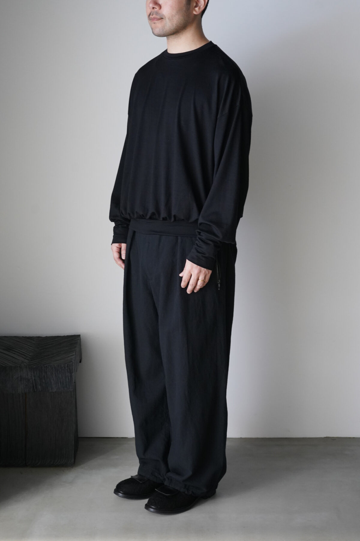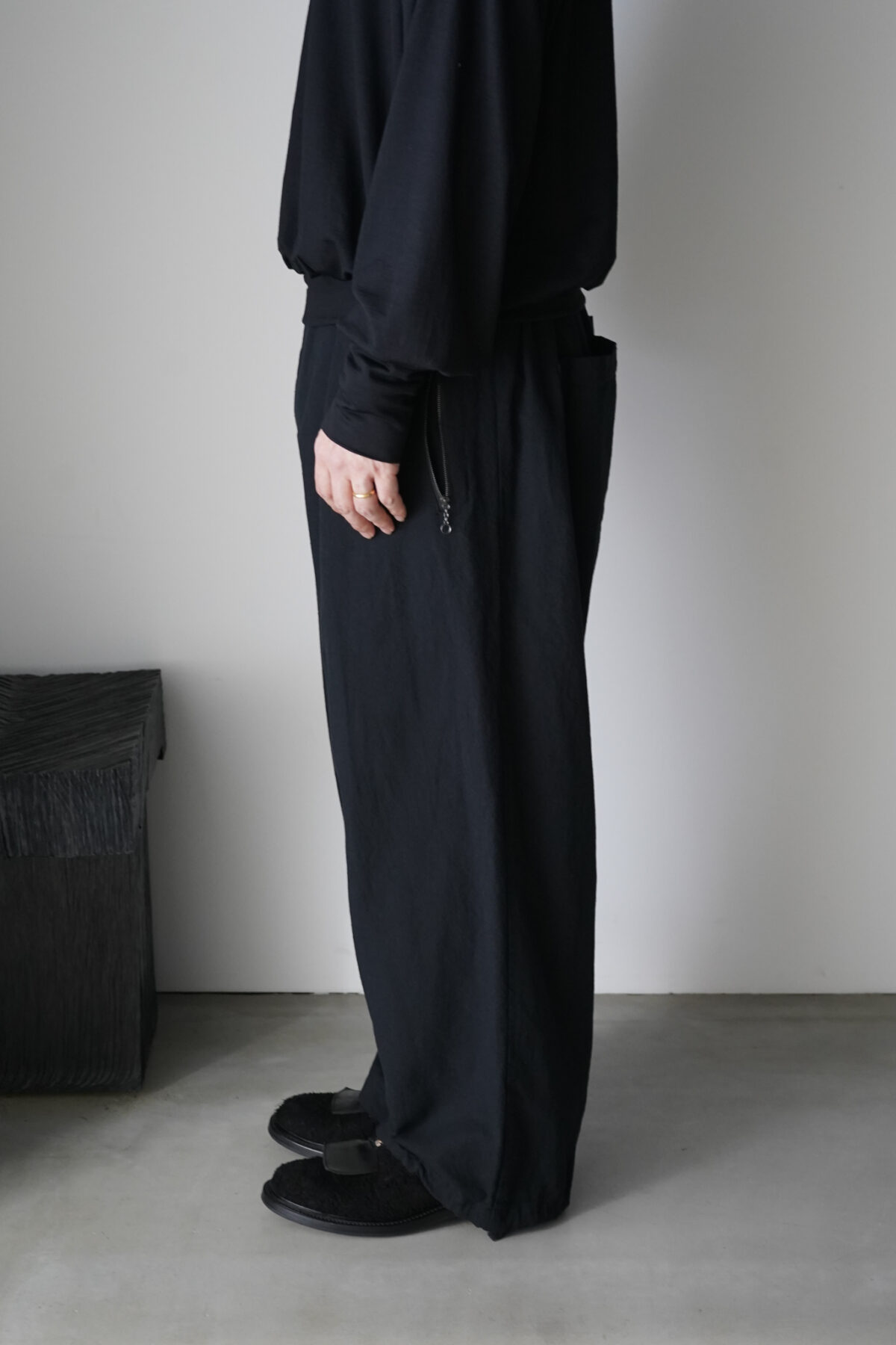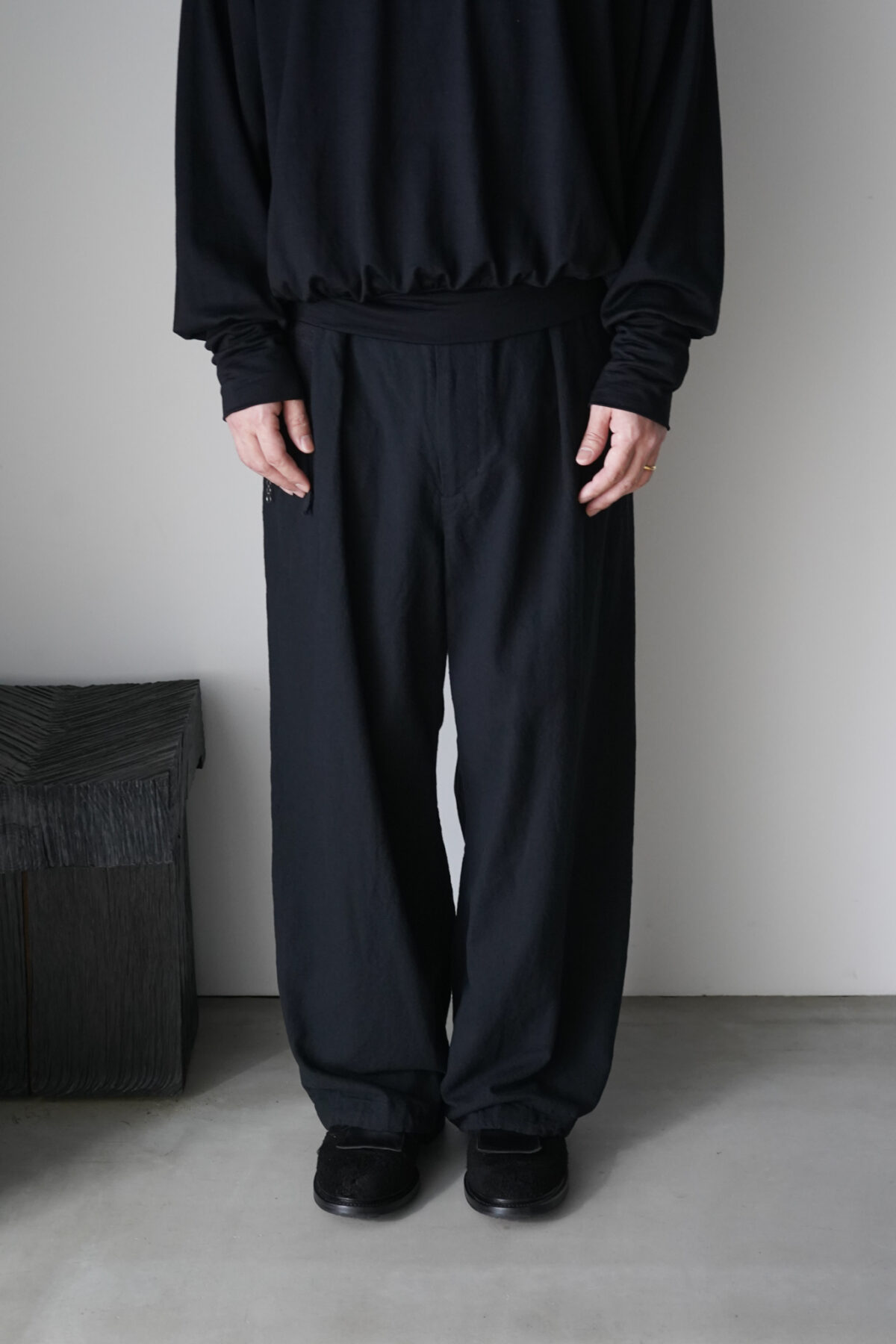 腰回りのボリュームから流れるように落ちるストレートシルエット。