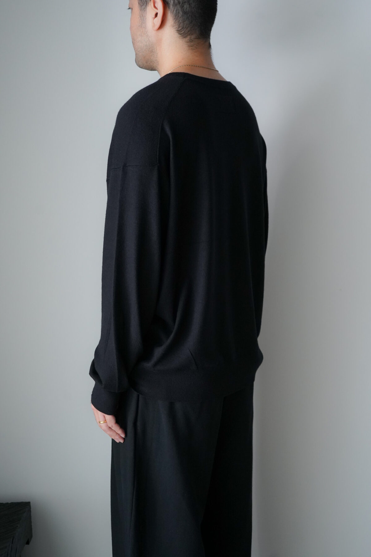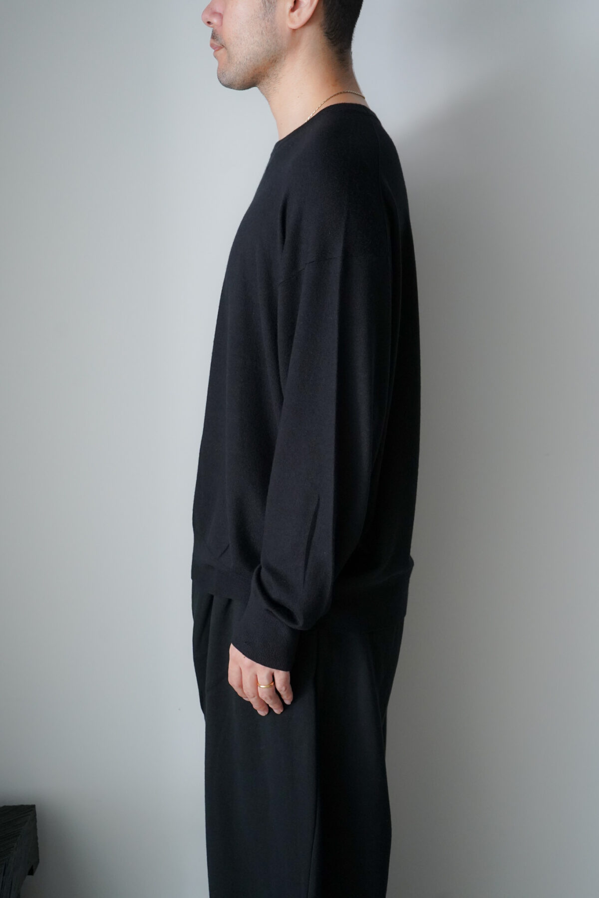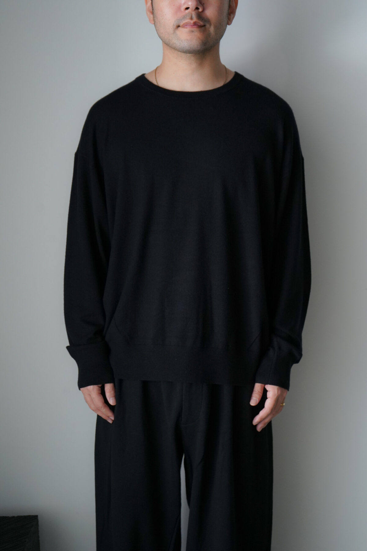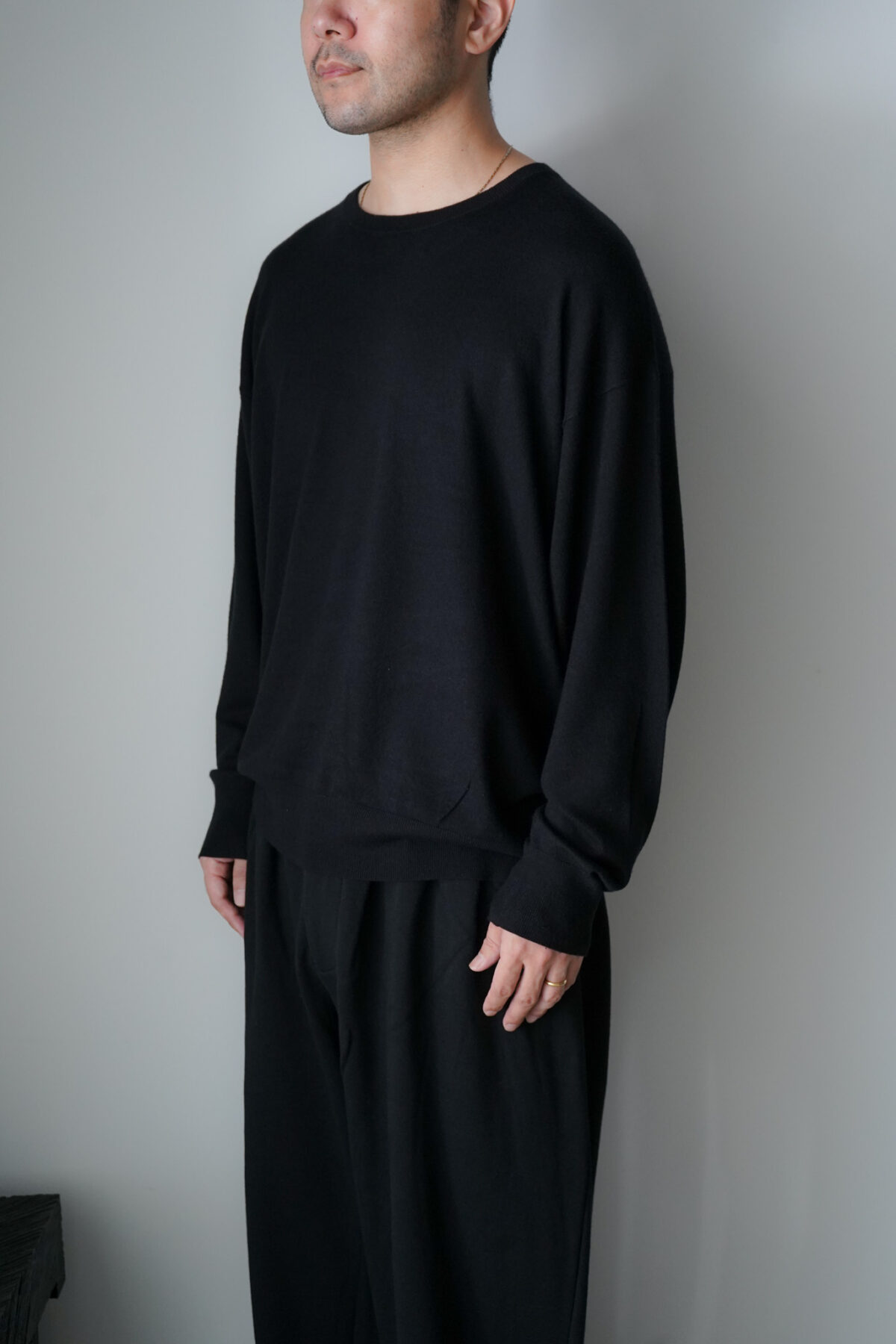 大変ソフトな肌触りが特徴的なコットン/カシミアを使用したL/S、着用した際の収まりも大変より上質で落ち着いたムードを纏っています。
