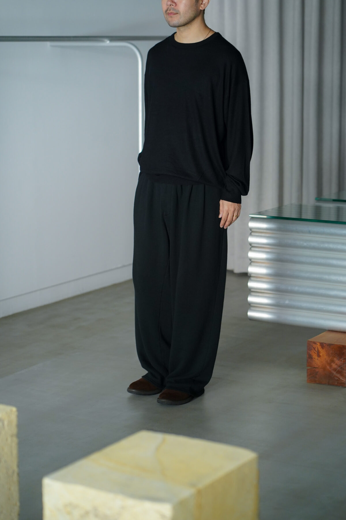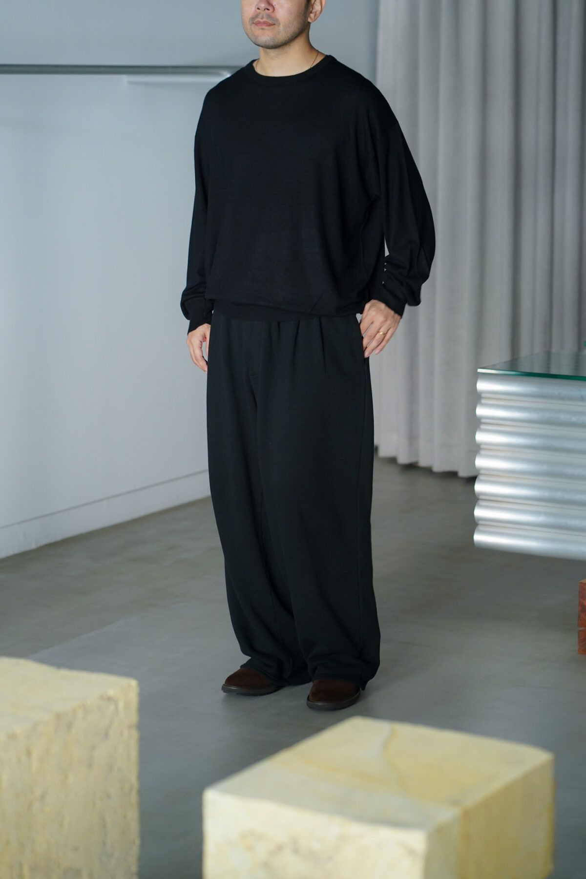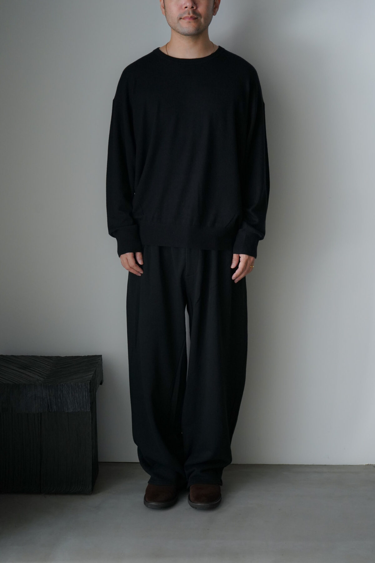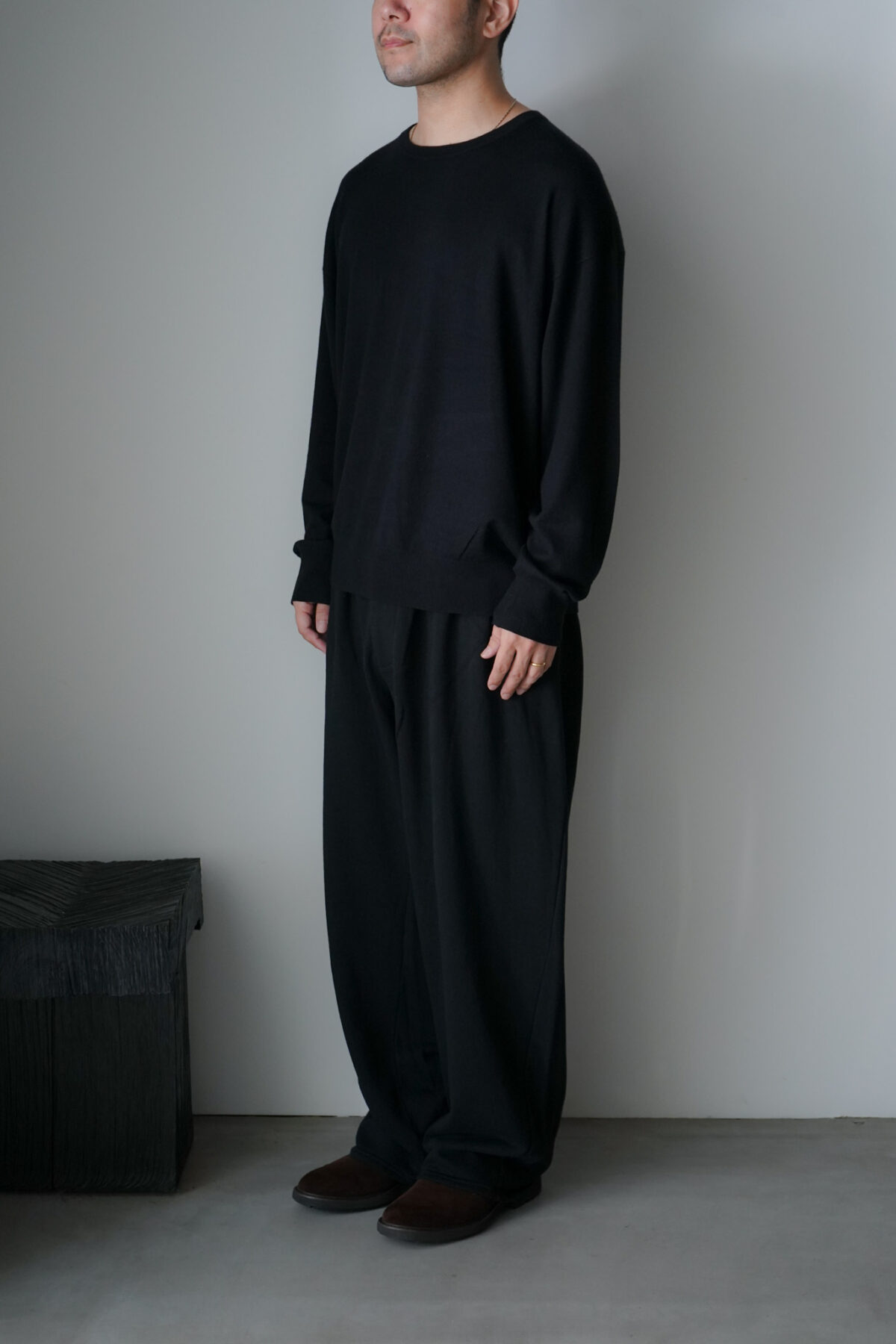 大変ソフトな肌触りが特徴的なコットン/カシミアを使用したL/S、着用した際の収まりも大変より上質で落ち着いたムードを纏っています。