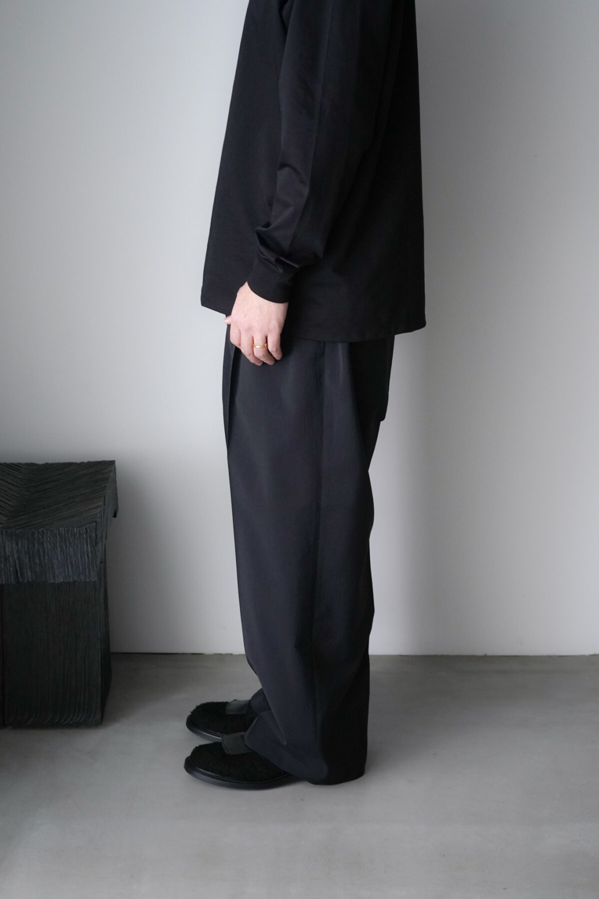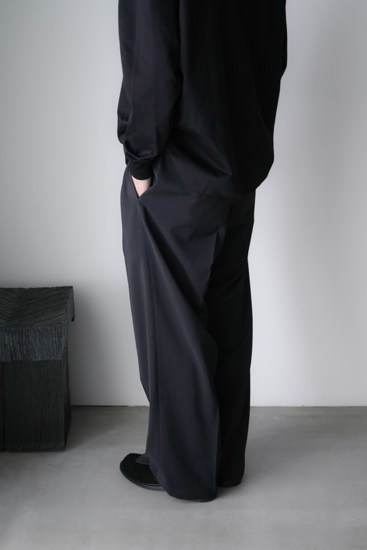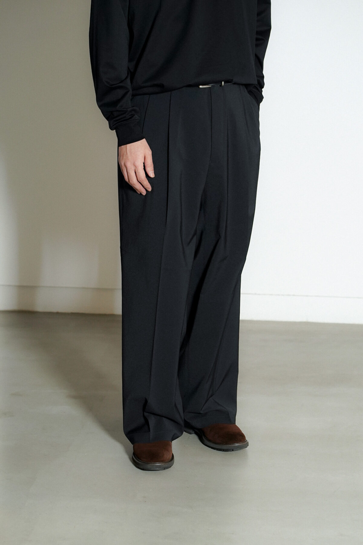 YOKO SAKAMOTO DOUBLE PLEATED TROUSERS - POLYESTER GABARDINE - BLACK