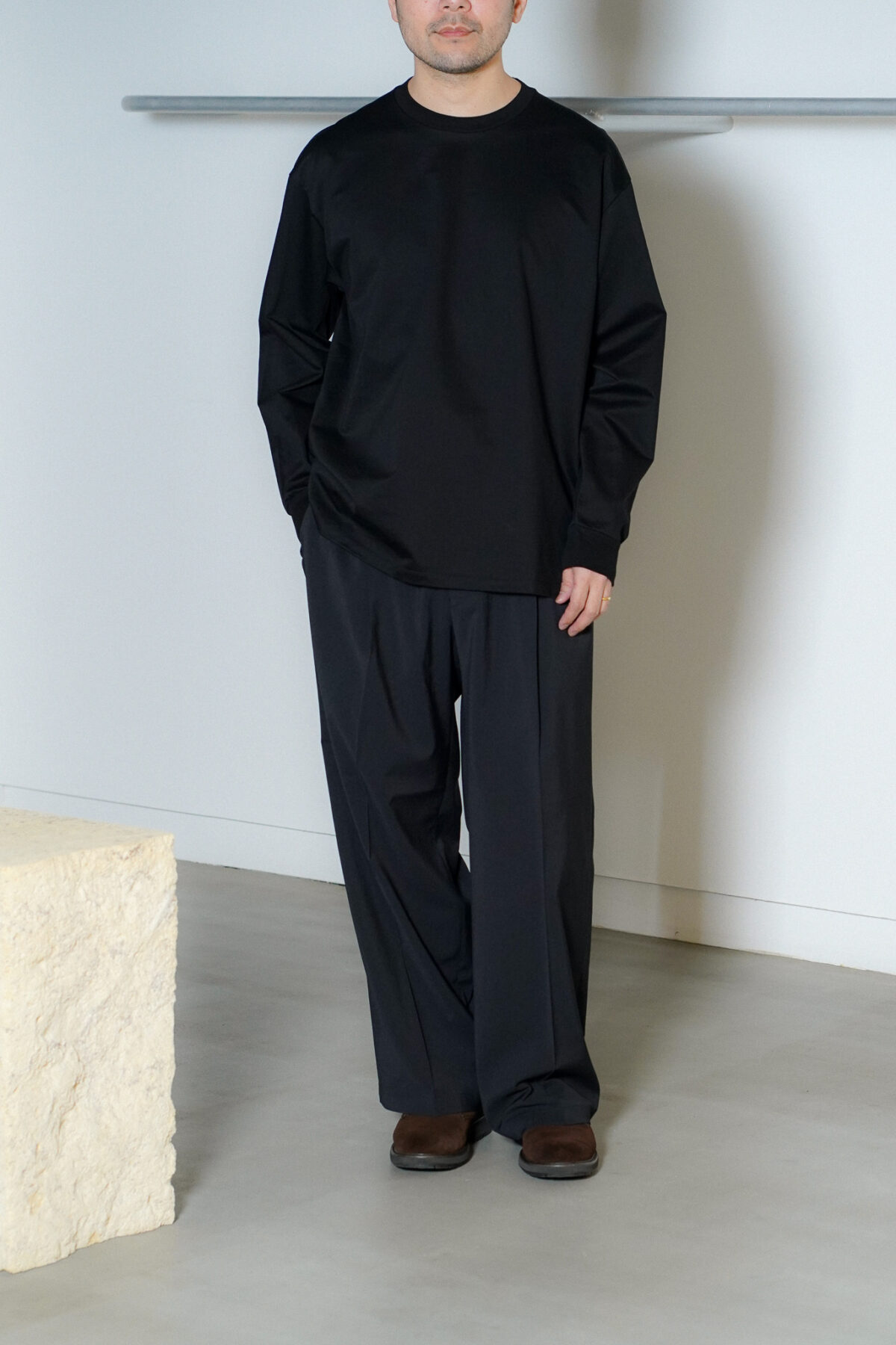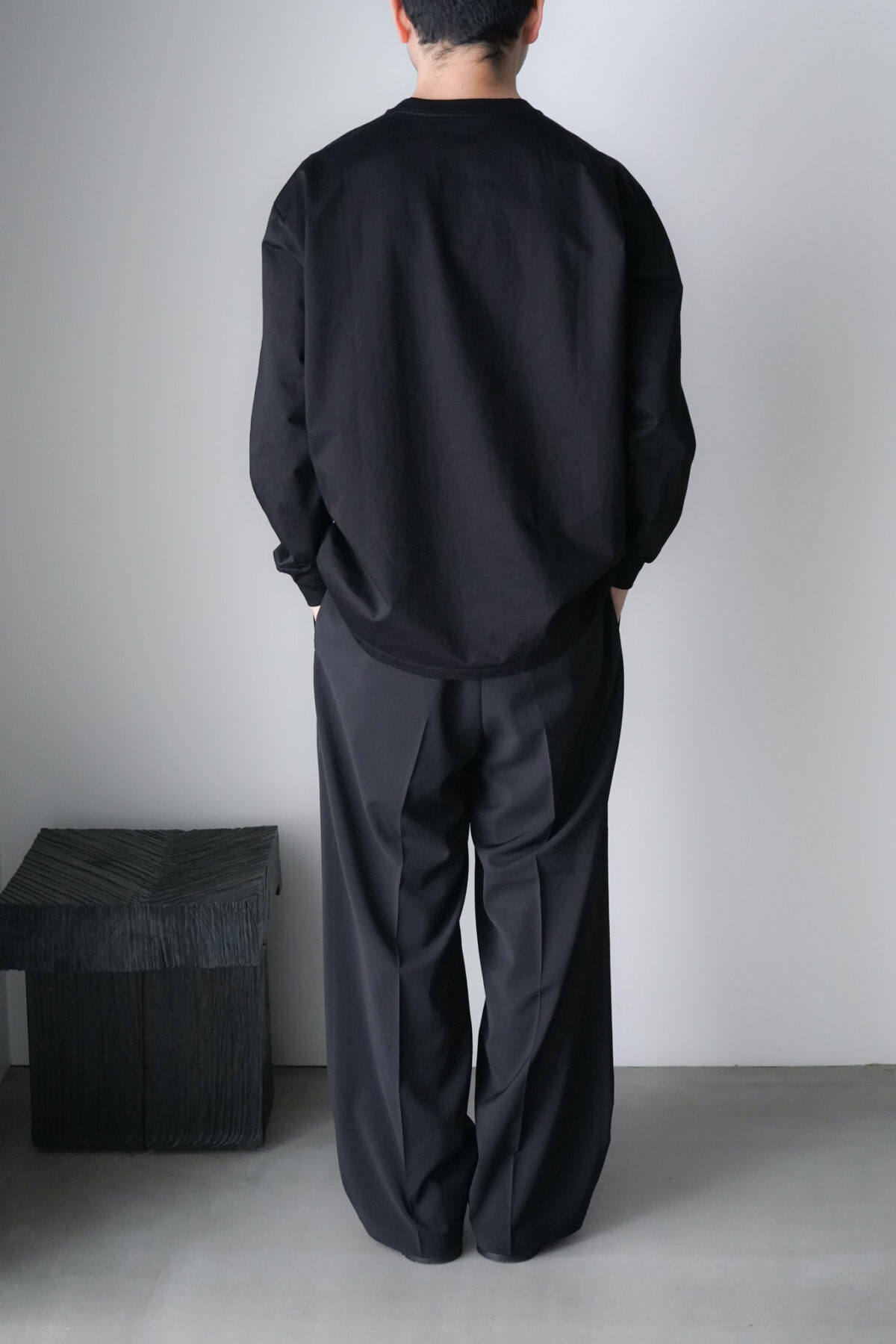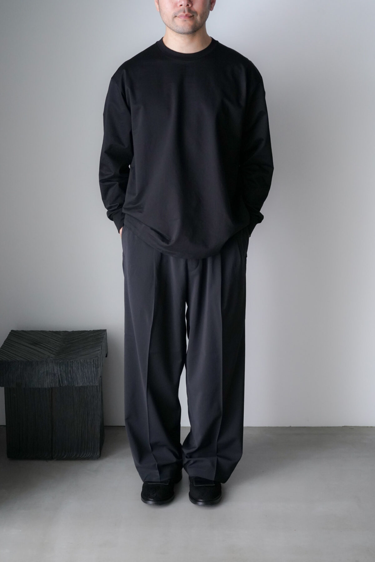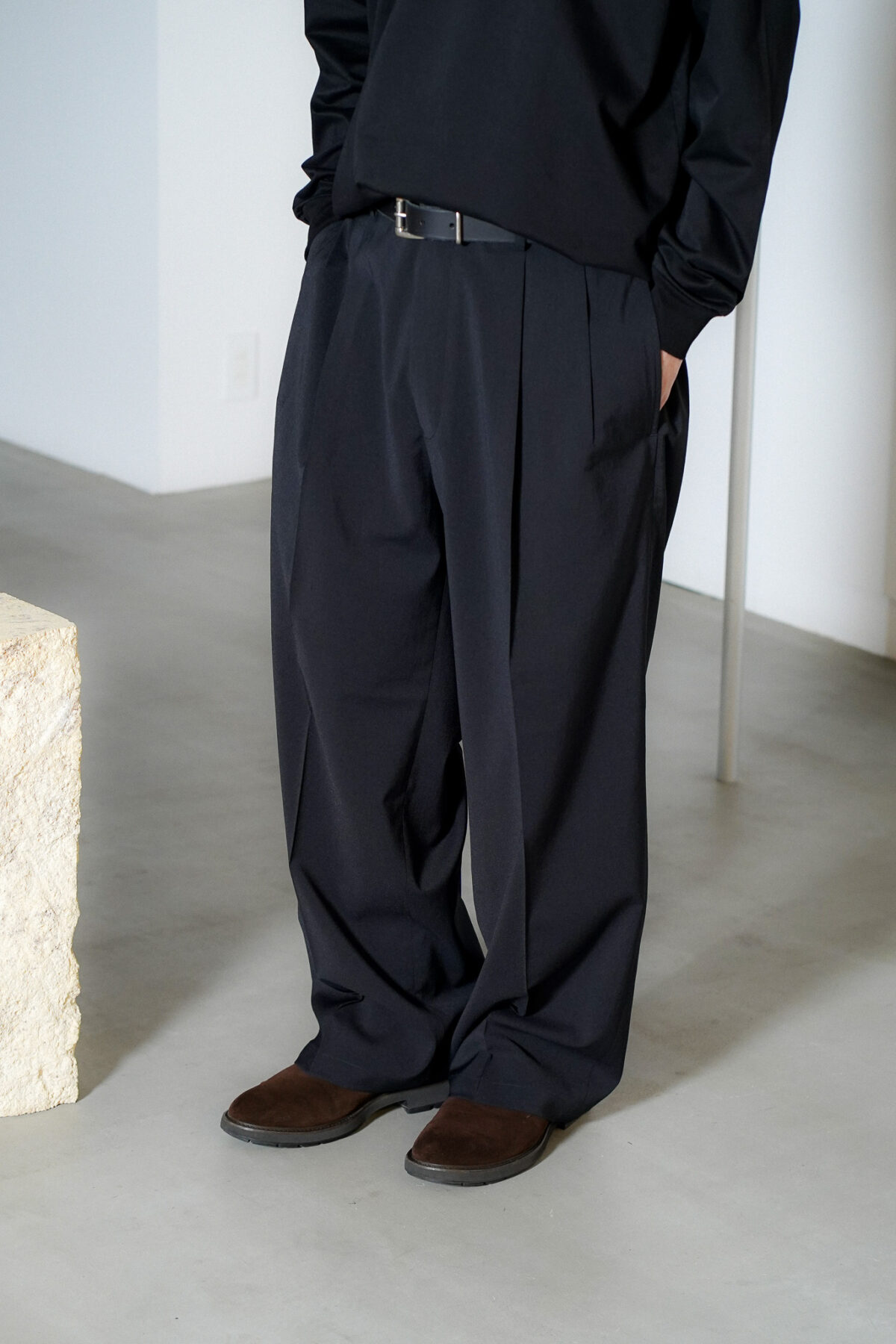 YOKO SAKAMOTO DOUBLE PLEATED TROUSERS - POLYESTER GABARDINE - BLACK