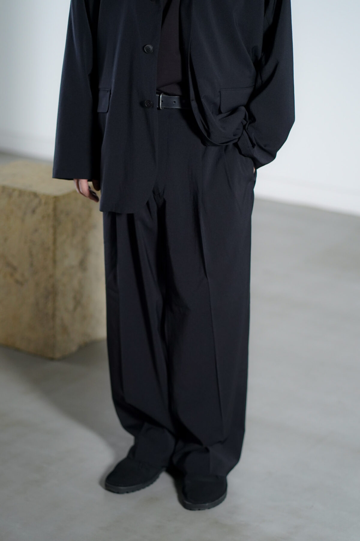 SUIT JACKET – POLYESTER GABARDINE – BLACK と同素材、セットアップとして着用可能です。