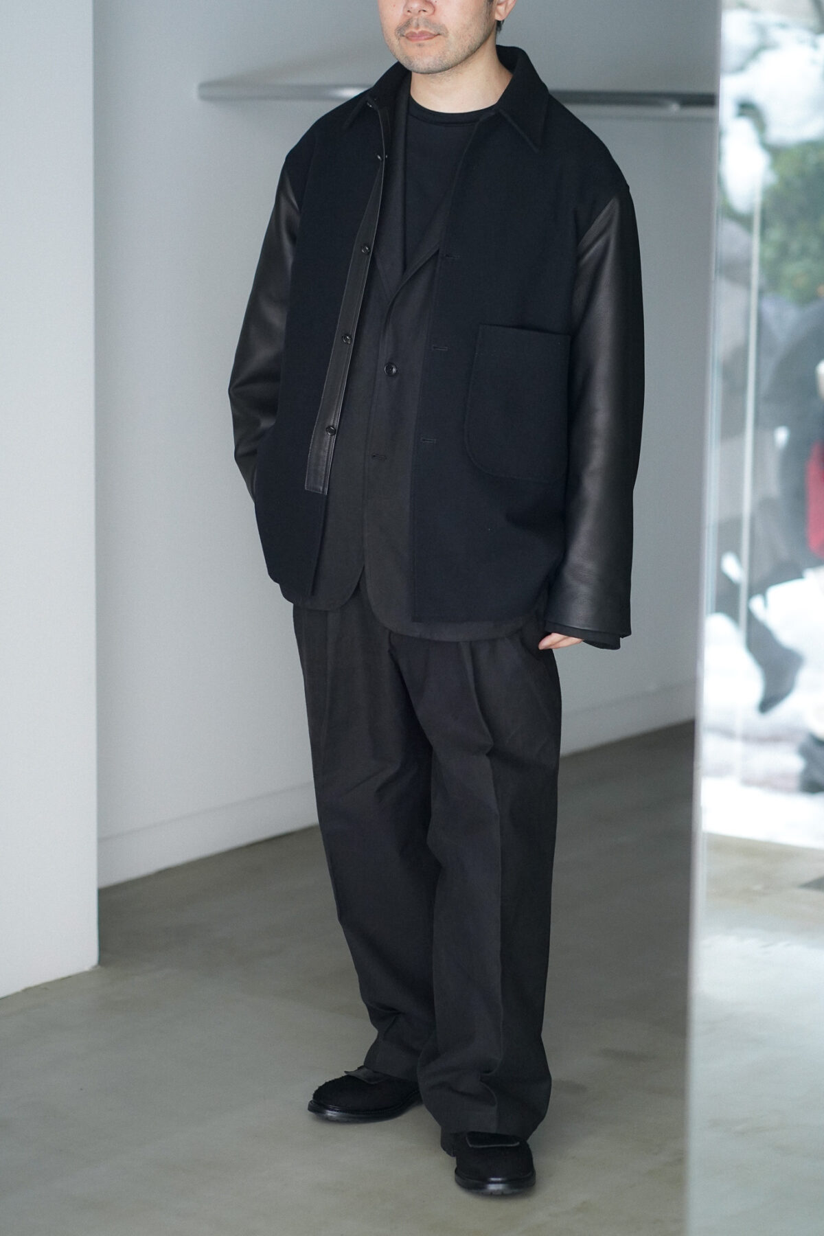 2B JACKET – SILK NEP SERGE – BLACK と同素材、セットアップとして着用可能です。