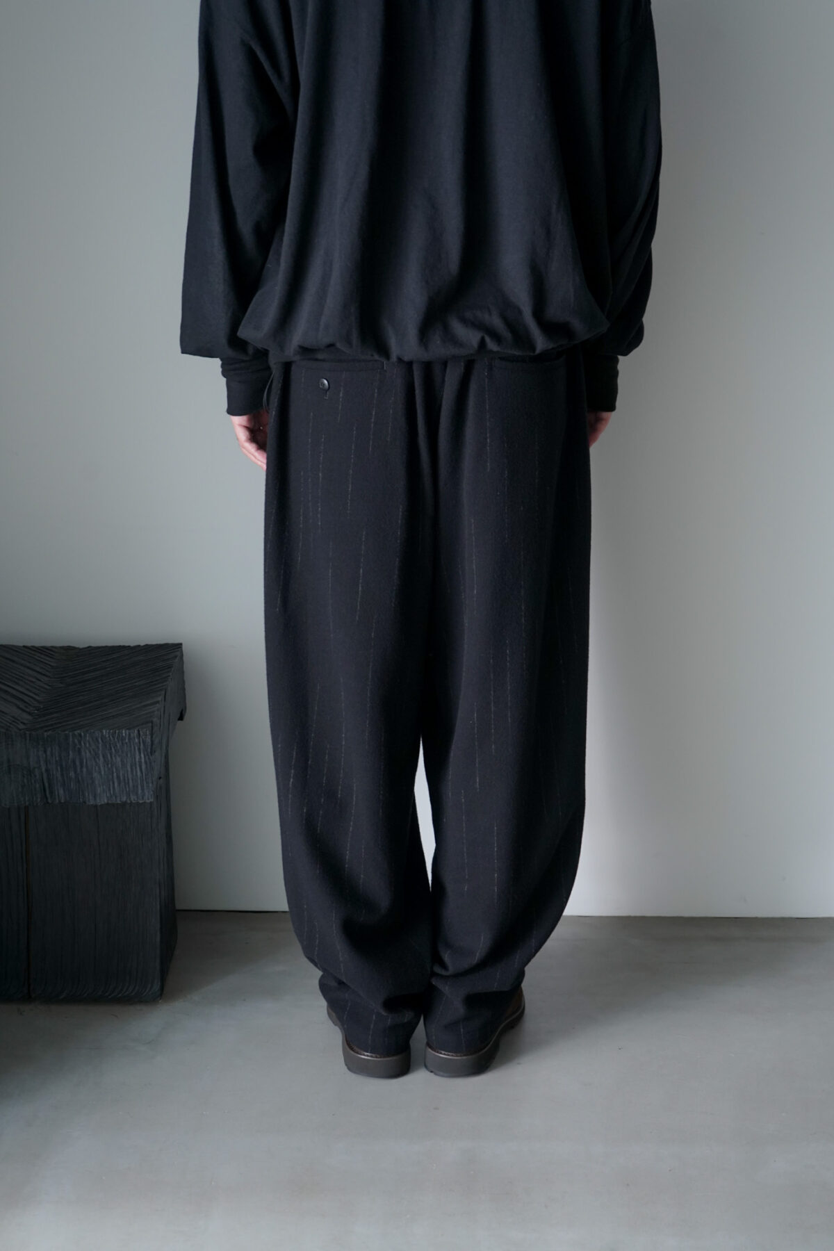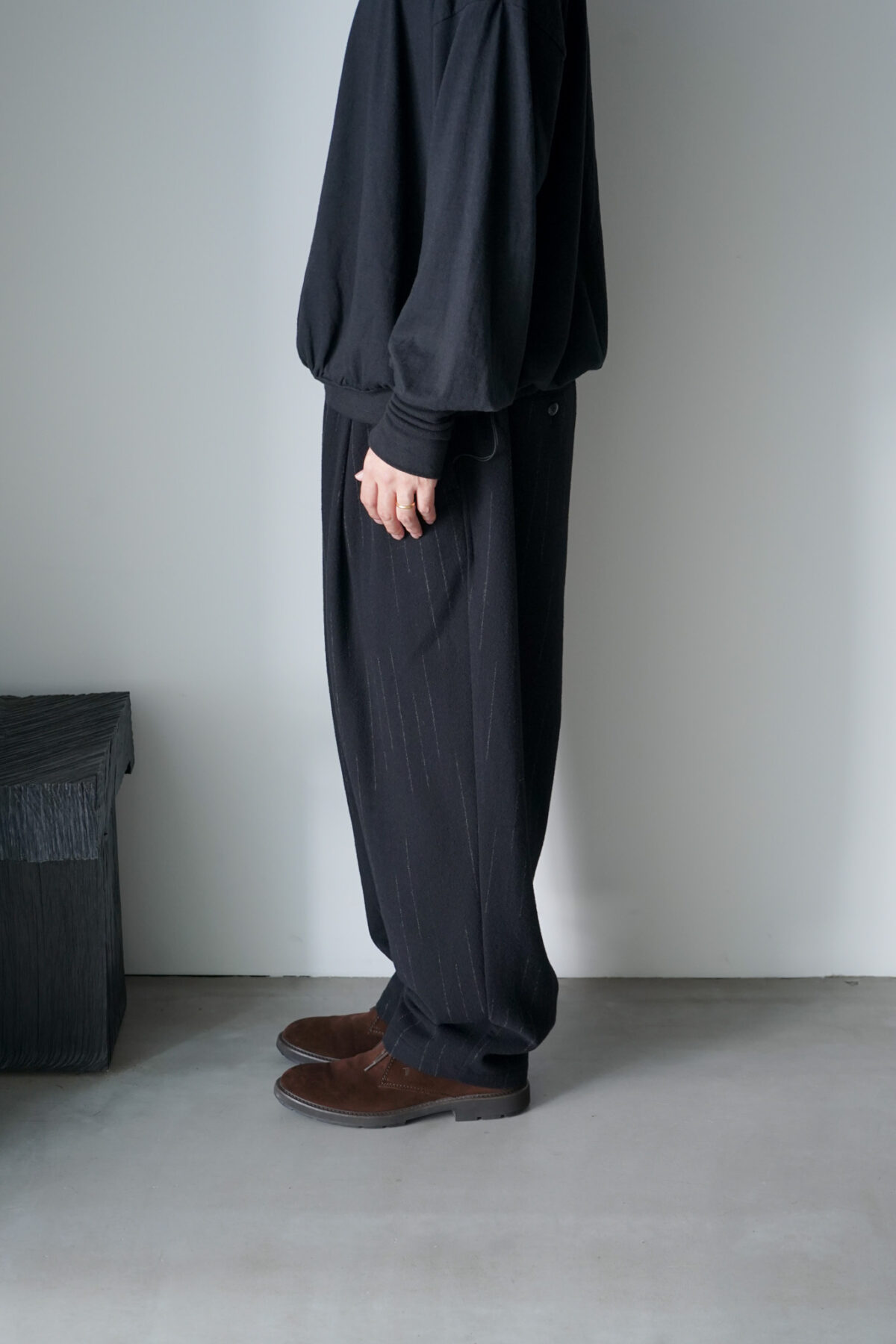 2タックの入ったウエスト周りはゆったりしつつ、裾に掛けて程よくスッキリとしたワイドシルエット。
