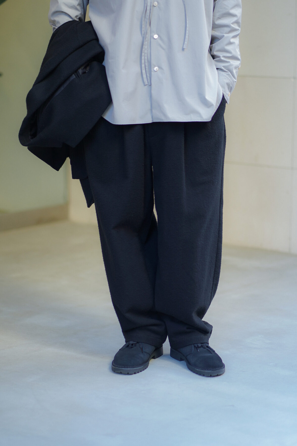 YOKO SAKAMOTO DOUBLE PLEATED WIDE EASY PANTS - SILK × COTTON BRUSHED FLANNEL -