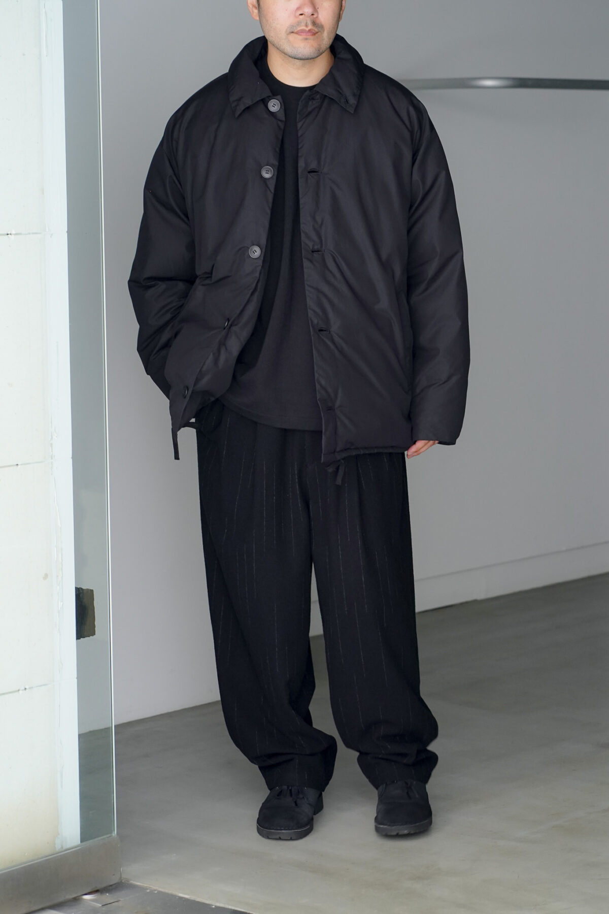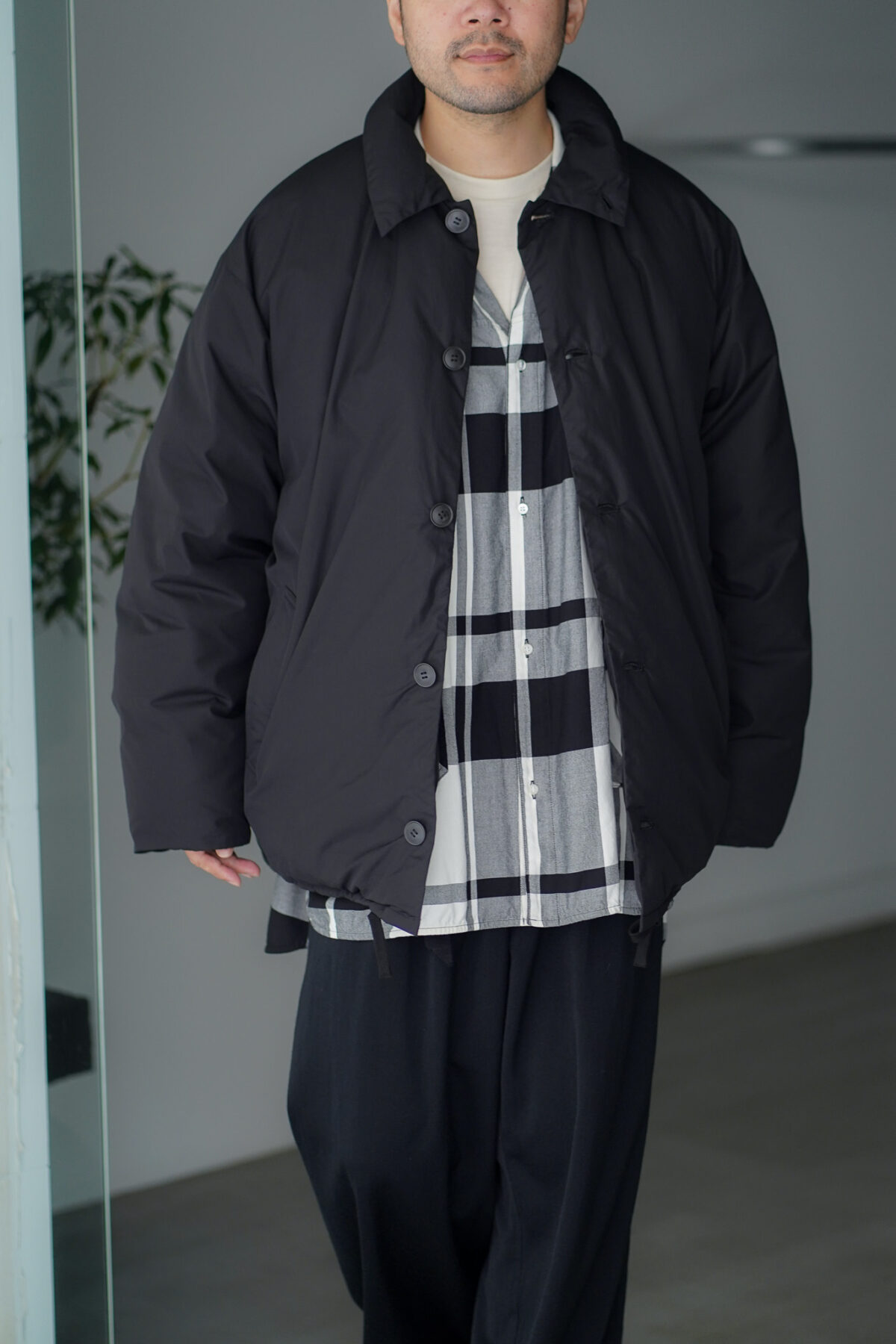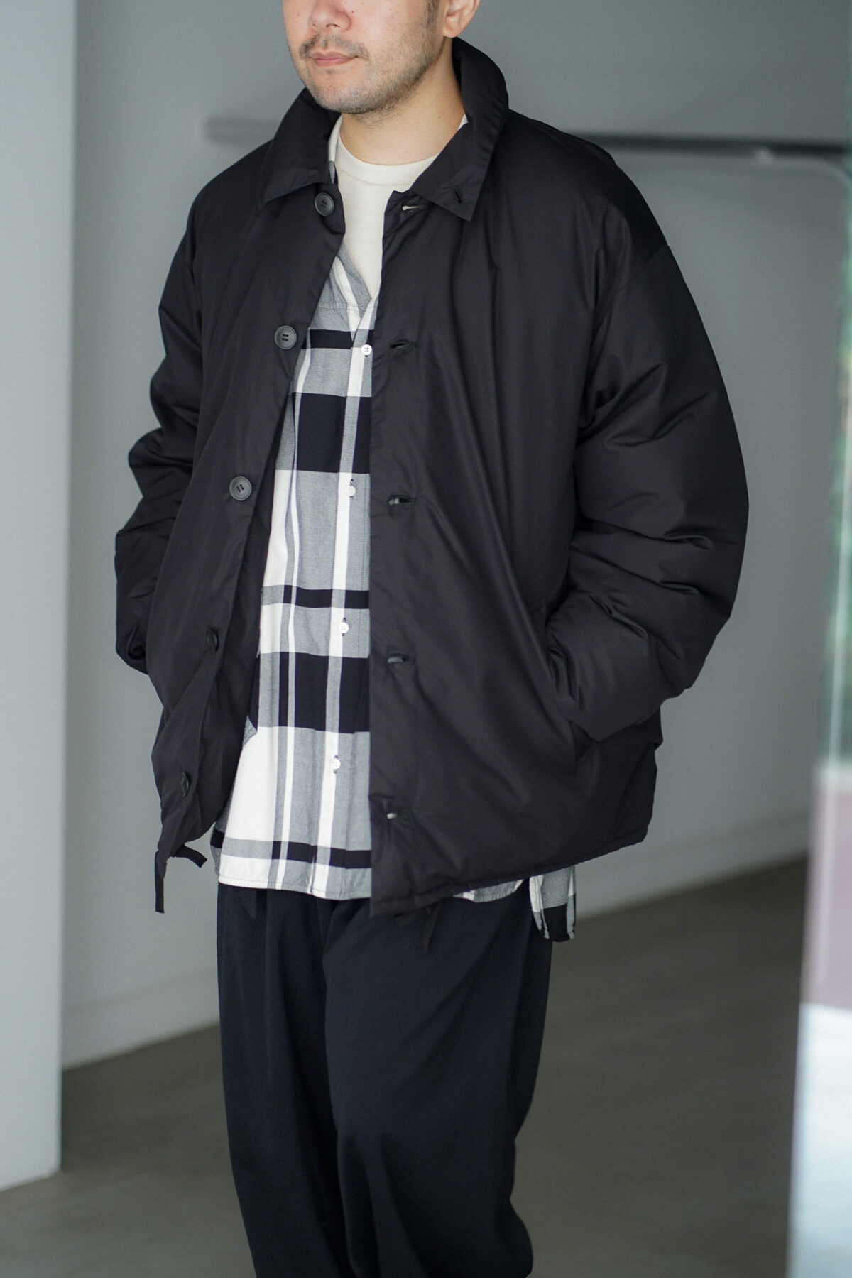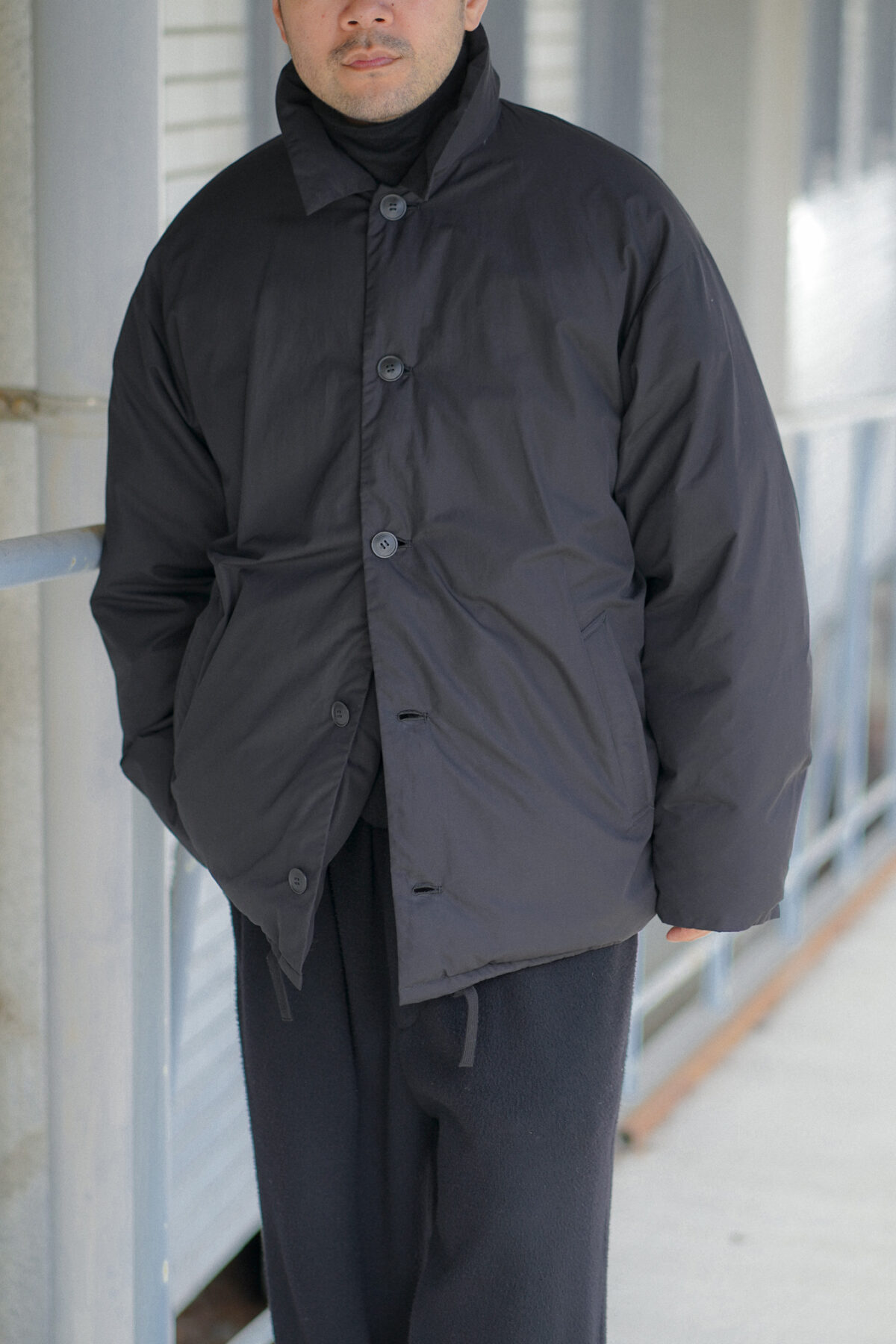 クラシックなコーチジャケットのデザインをルーズなサイズ感に落とし込んだダウンコーチジャケット。