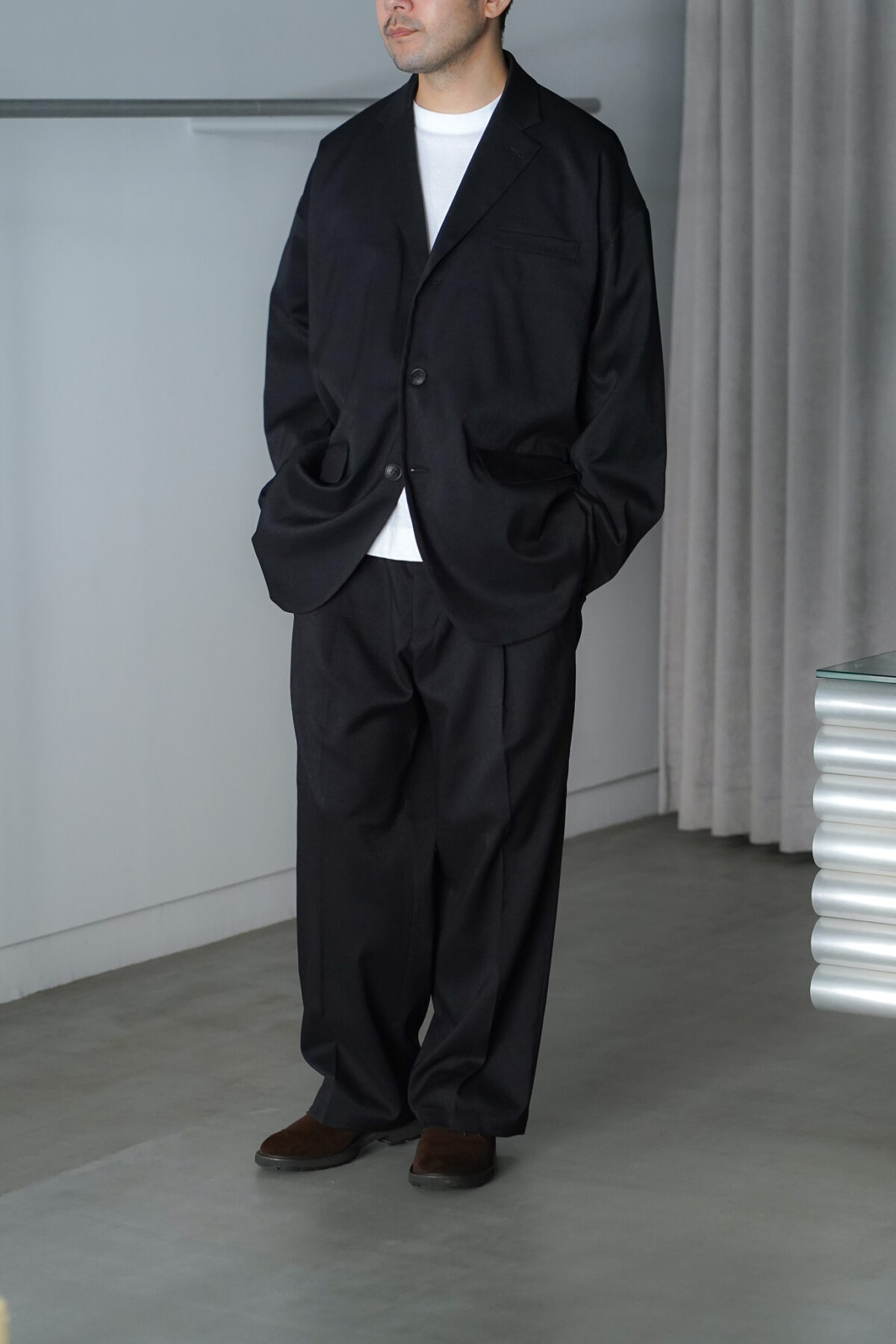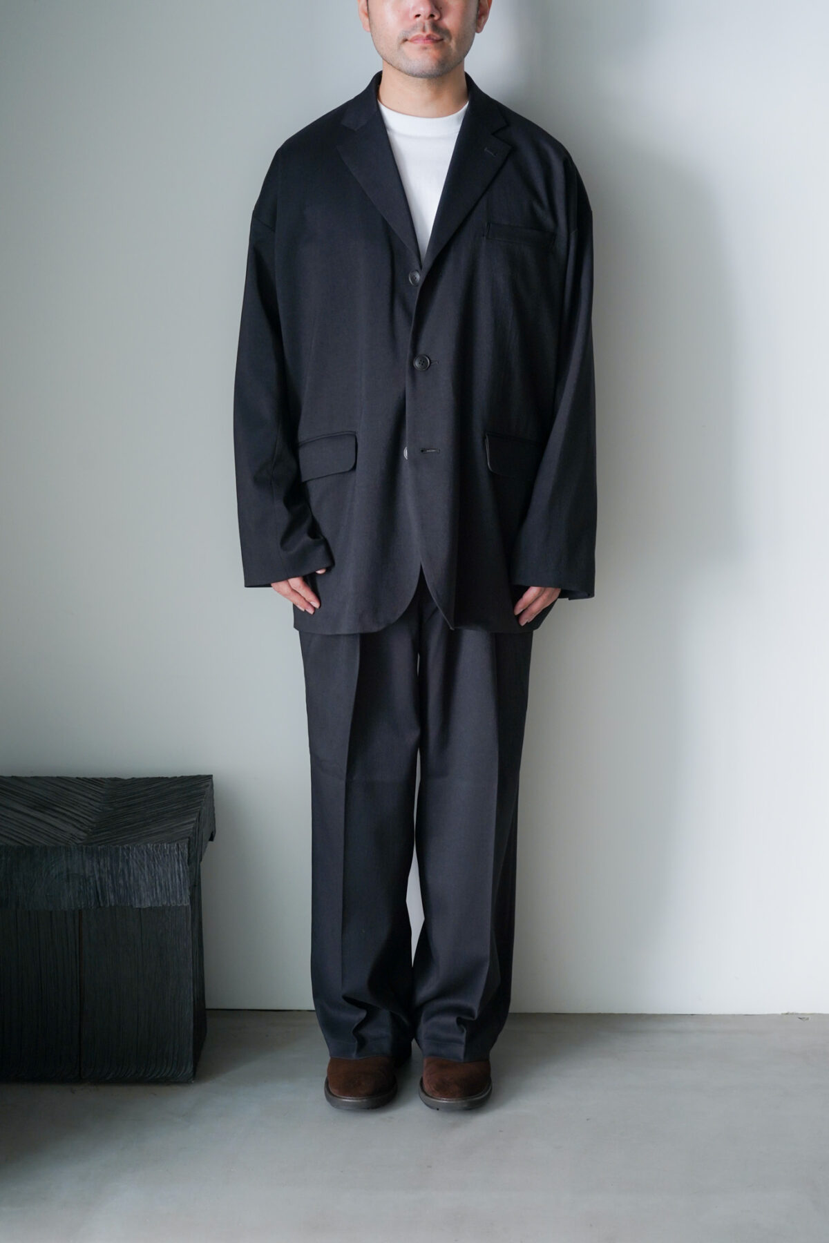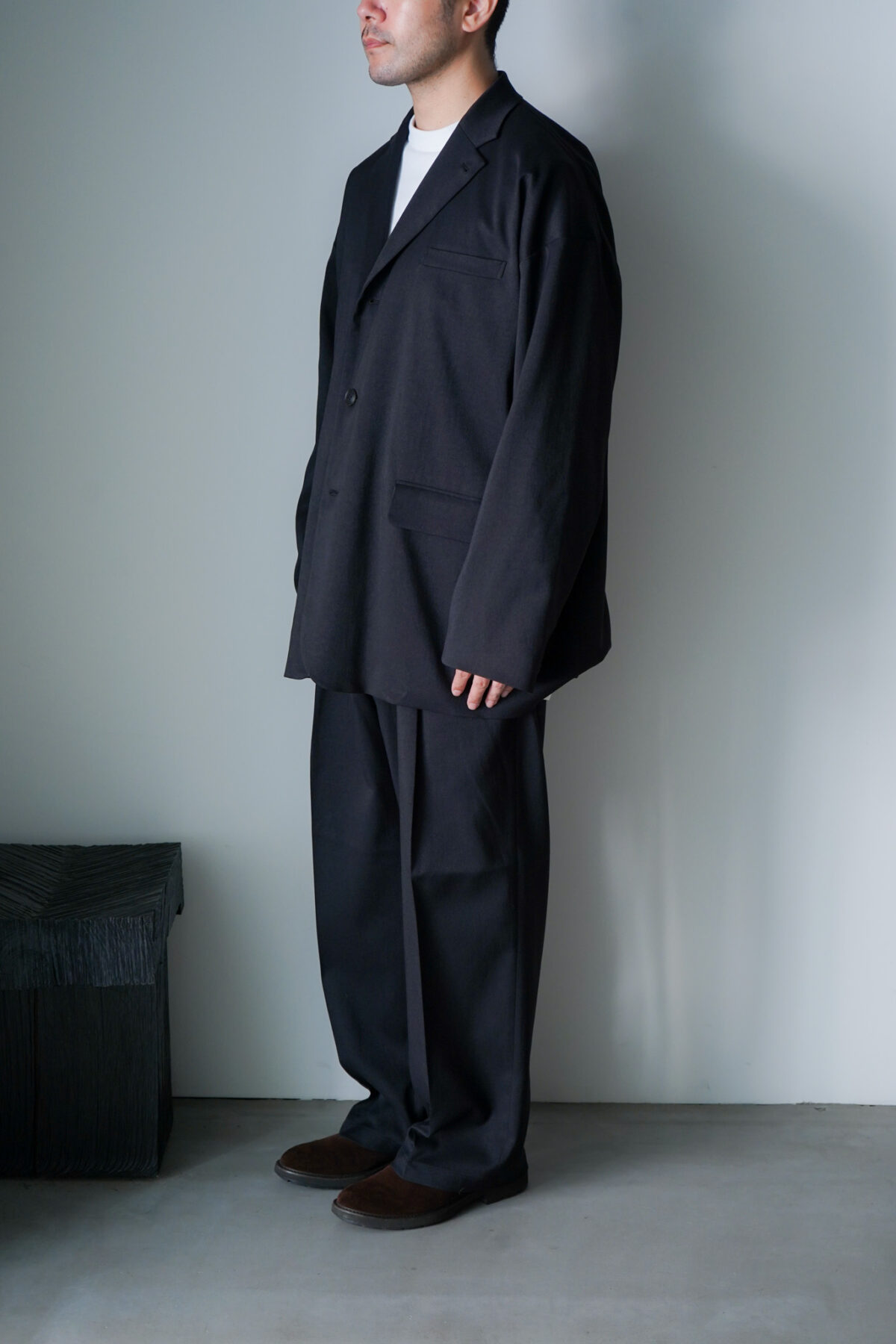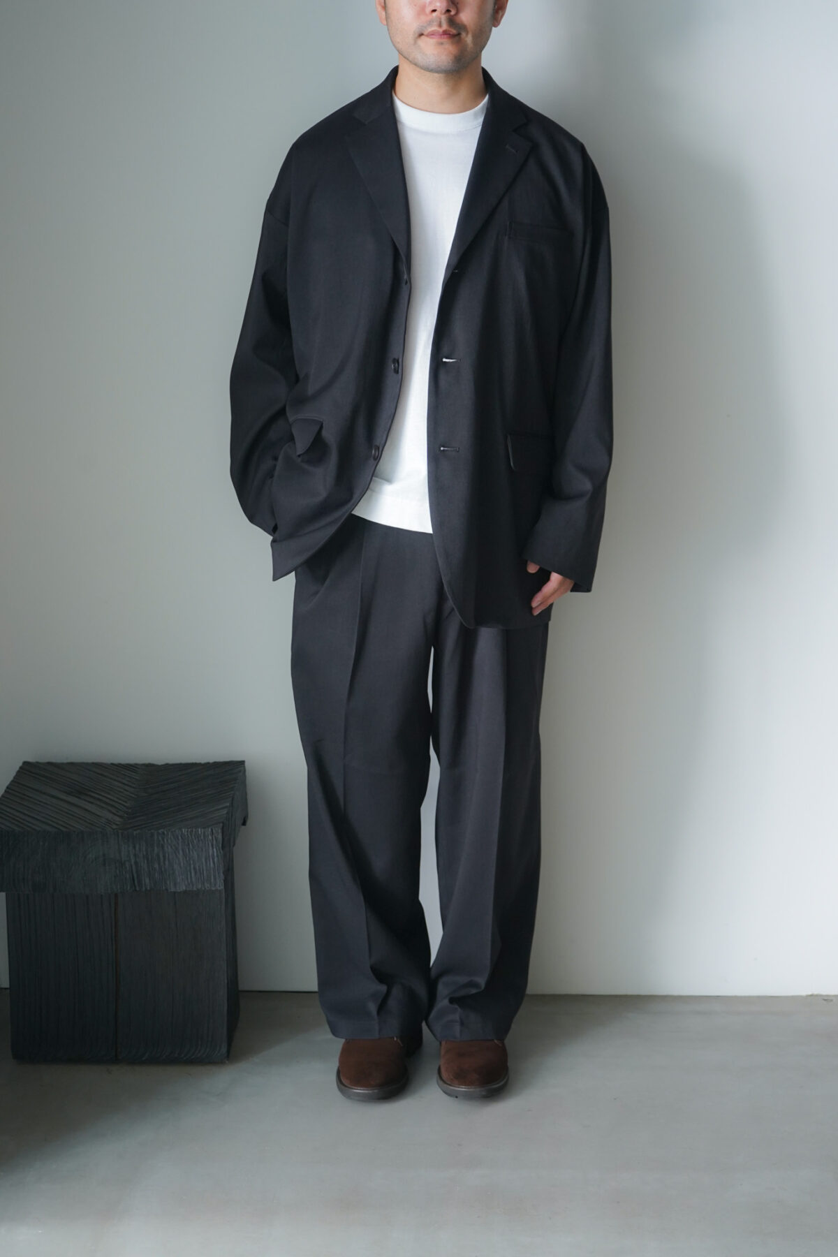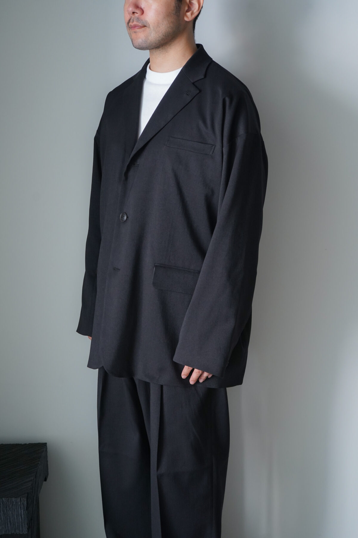 ルーズなサイズ感とドロップショルダーが特徴の、クラシックな3つボタンのテーラードジャケット。
