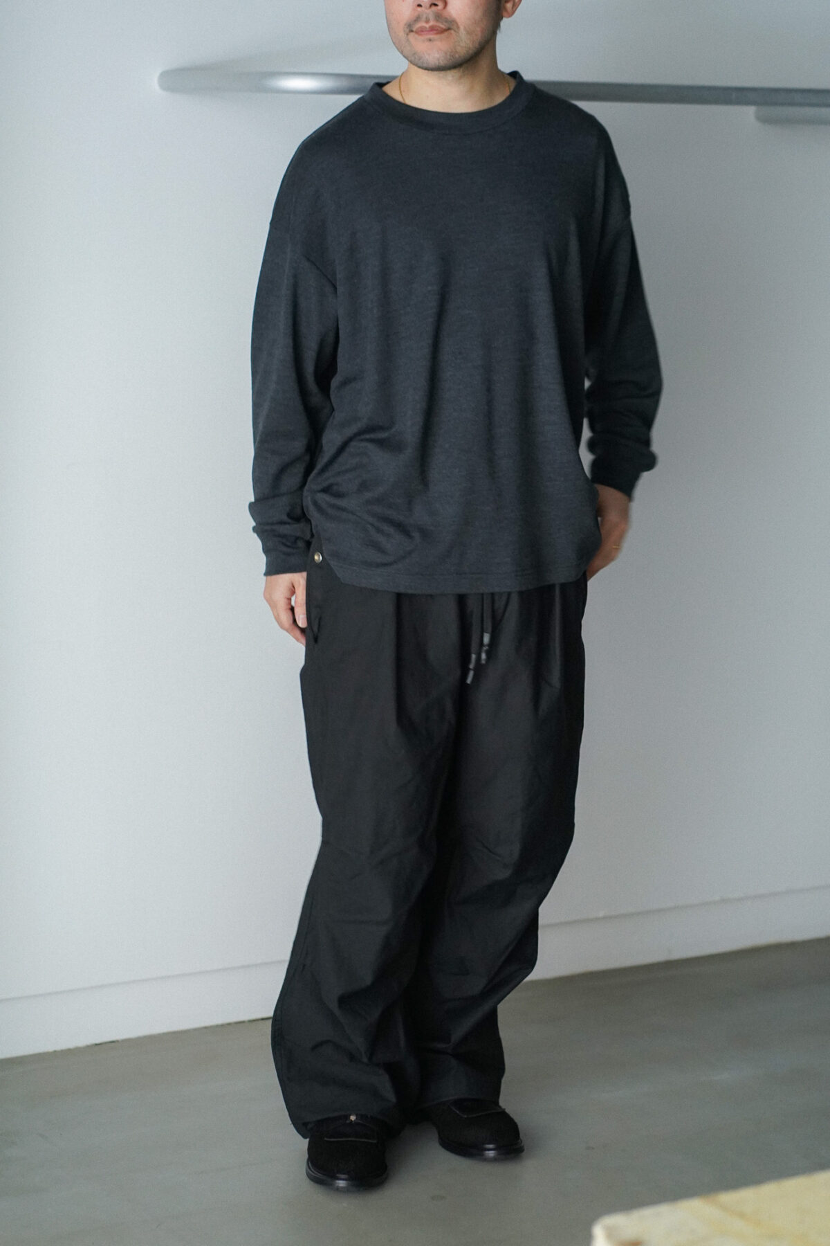 着込むほどに生地はしなやかさを増し、毛羽立ちとともに表情を変えていく経年変化も、このパンツの大きな魅力のひとつです。 フロントにはワンタックを入れ、動きやすさと視覚的なアクセントを両立。
