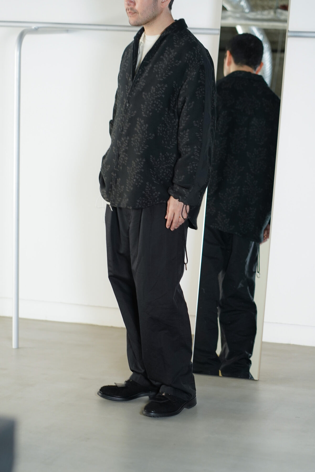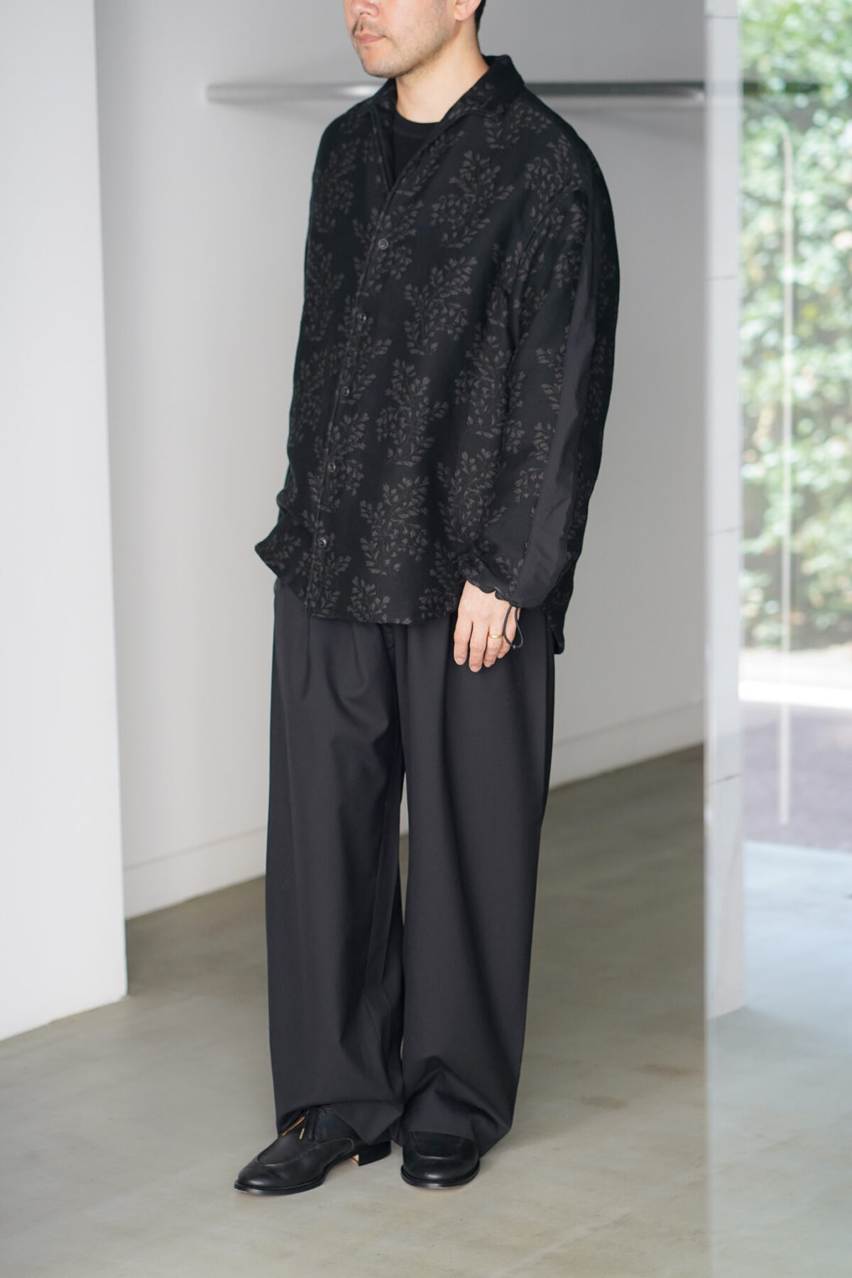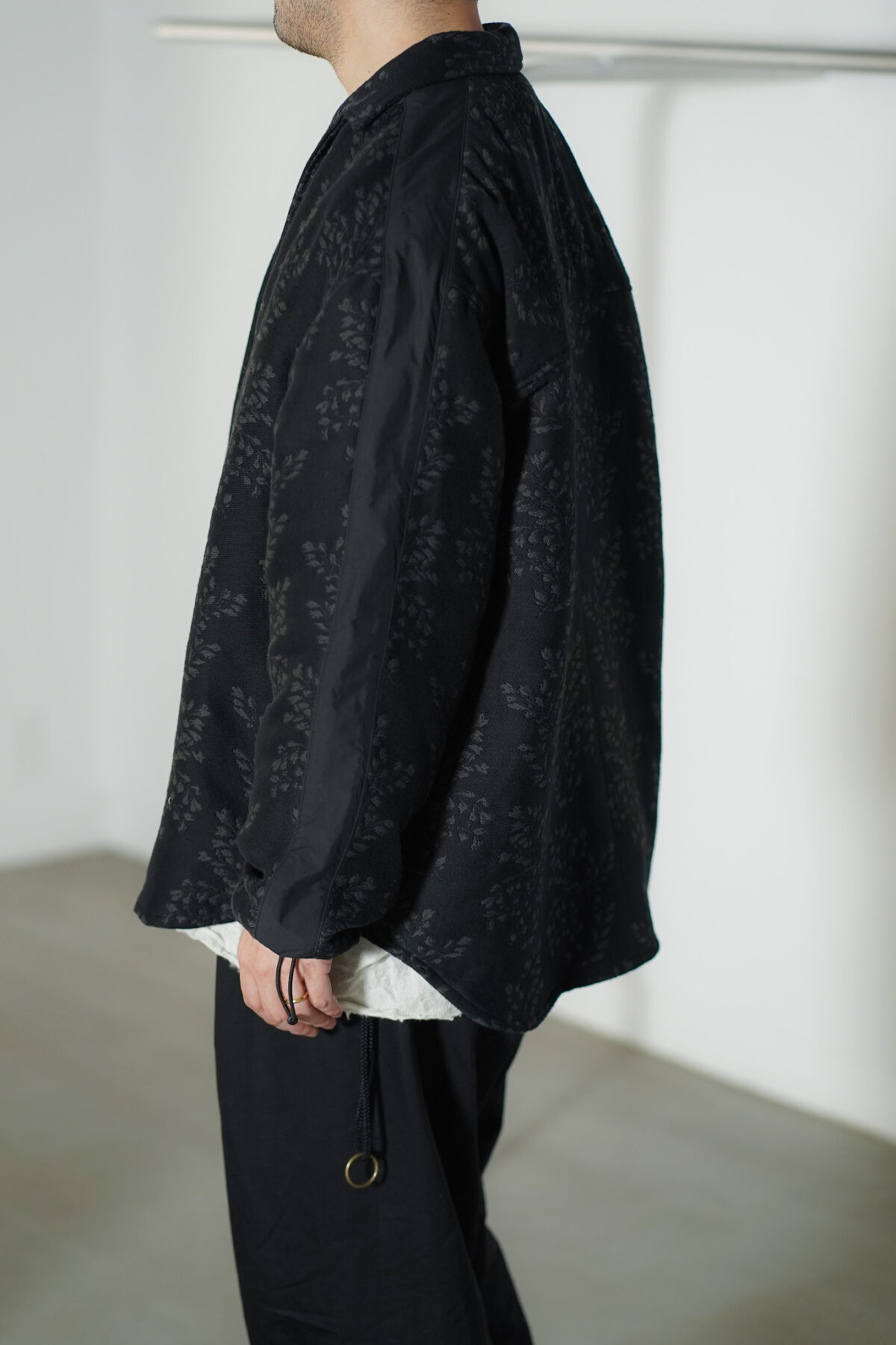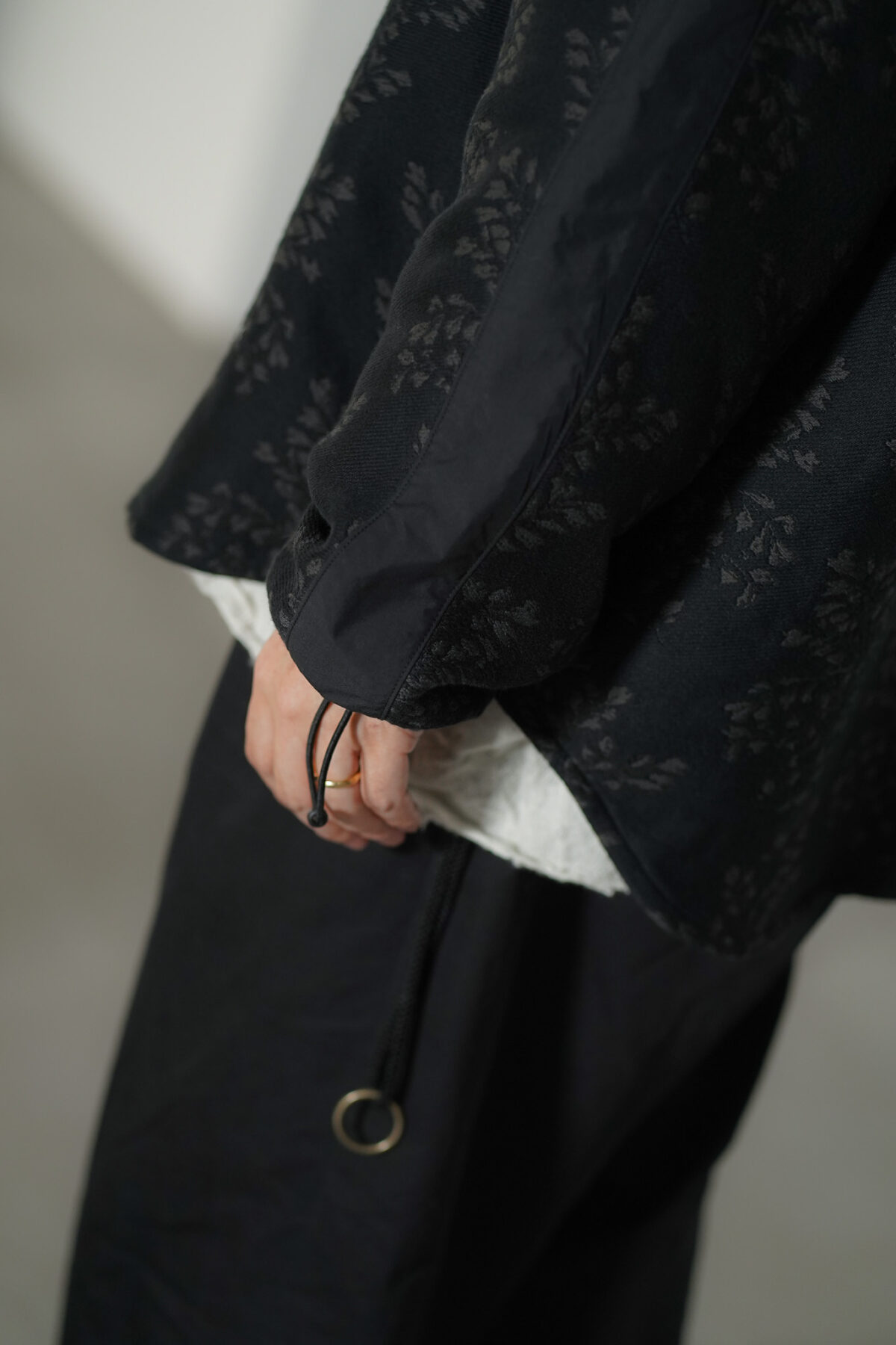 袖口のドローコードや肩の切り替えラインといったアスレチックなディテールはスタイリングに自然と馴染みながら、特徴的なパターンと相まってラグジュアリーなムードも感じさせます。