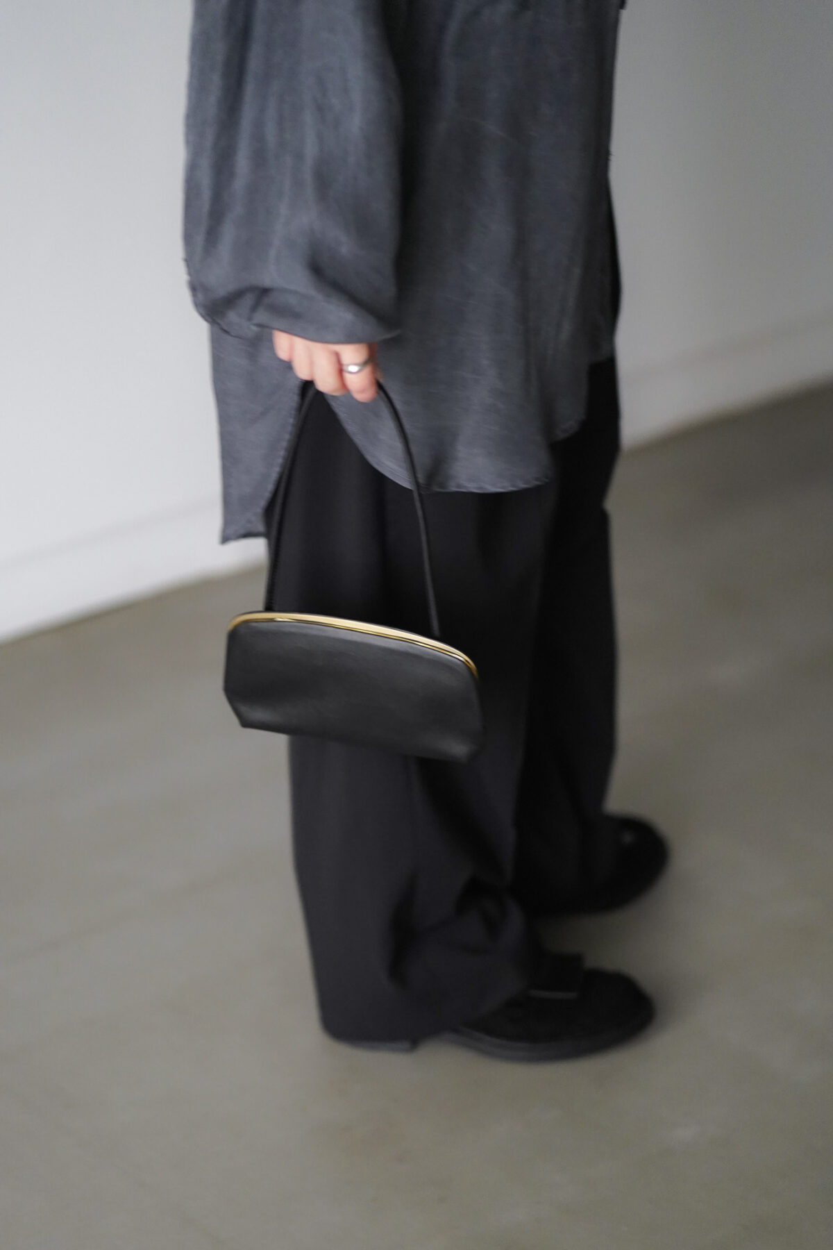 素材には牛革を使用。しなやかさと強度を備えつつ、形状を保つための厚みと張りを持たせています。装飾を排し、構造とプロポーションのみで成立させることで、日常に静かな存在感をもたらします。