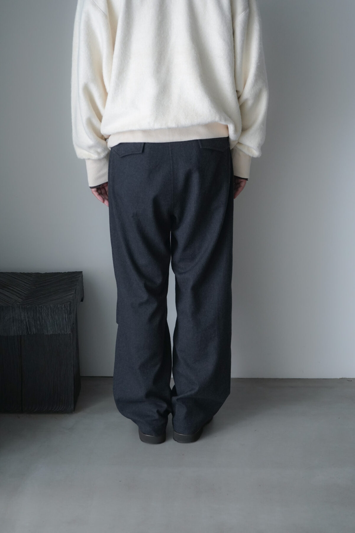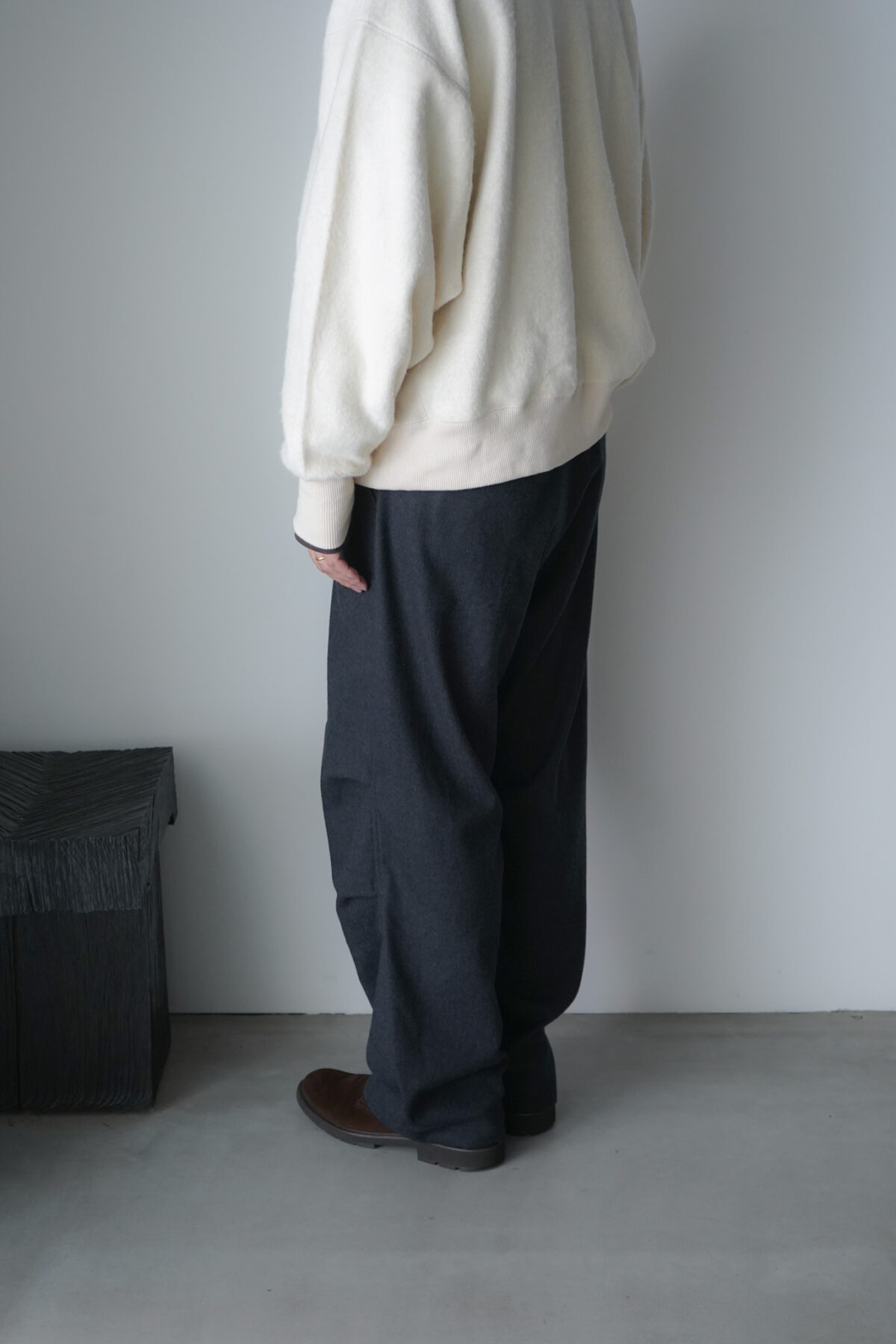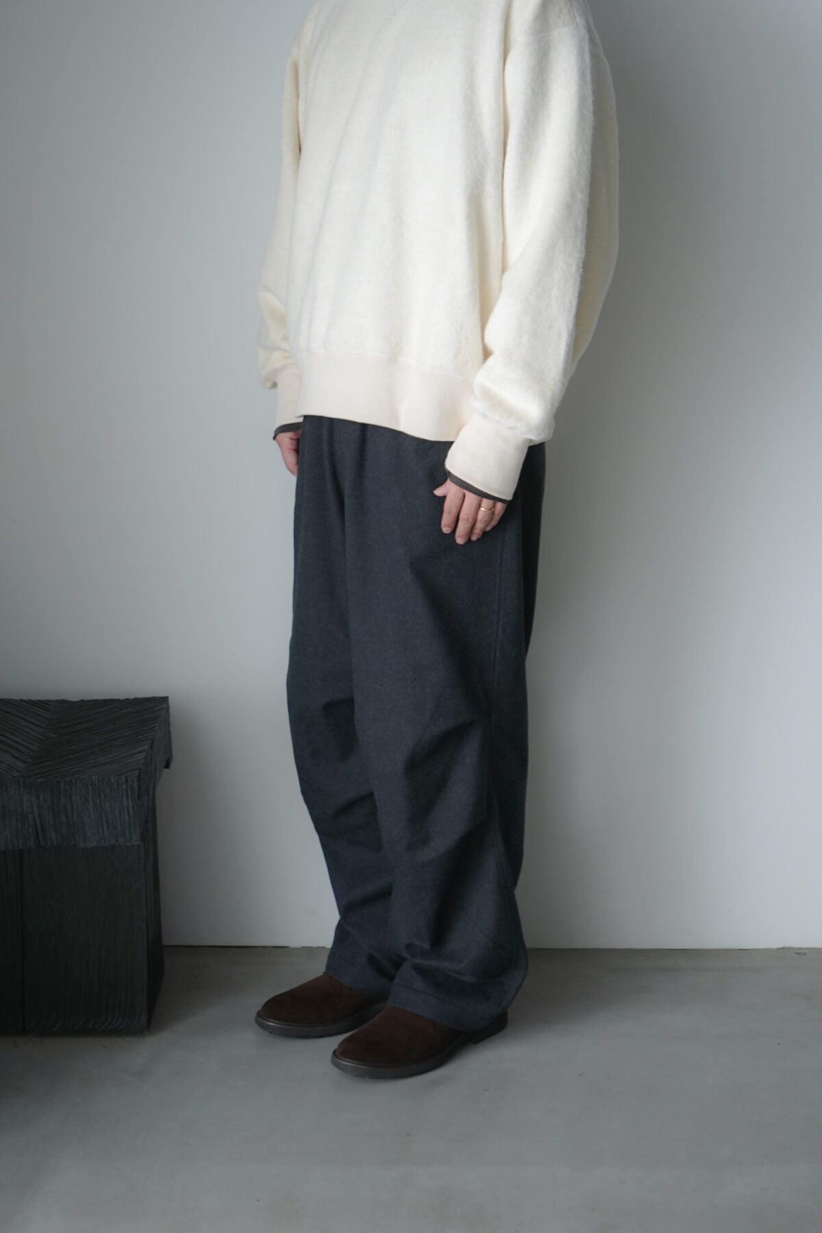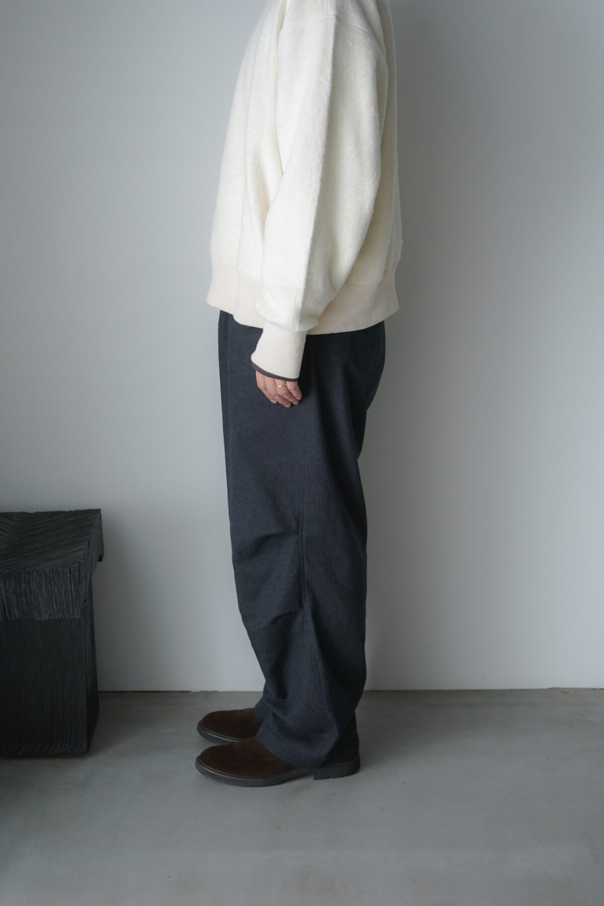 その糸で織、ワッシャー加工する事によりヴィンテージ感な表情のある、ソフトな肌触りのヴィンテージサージウールを使用。