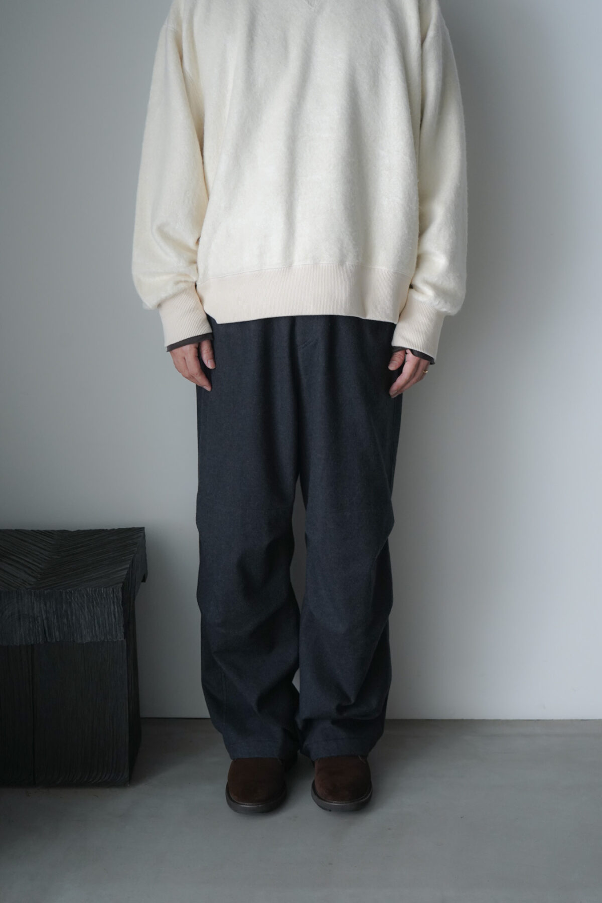 TOP糸1/80と1/80のウールを通常の撚糸より甘く撚糸して、よりソフトな風合いにした素材。