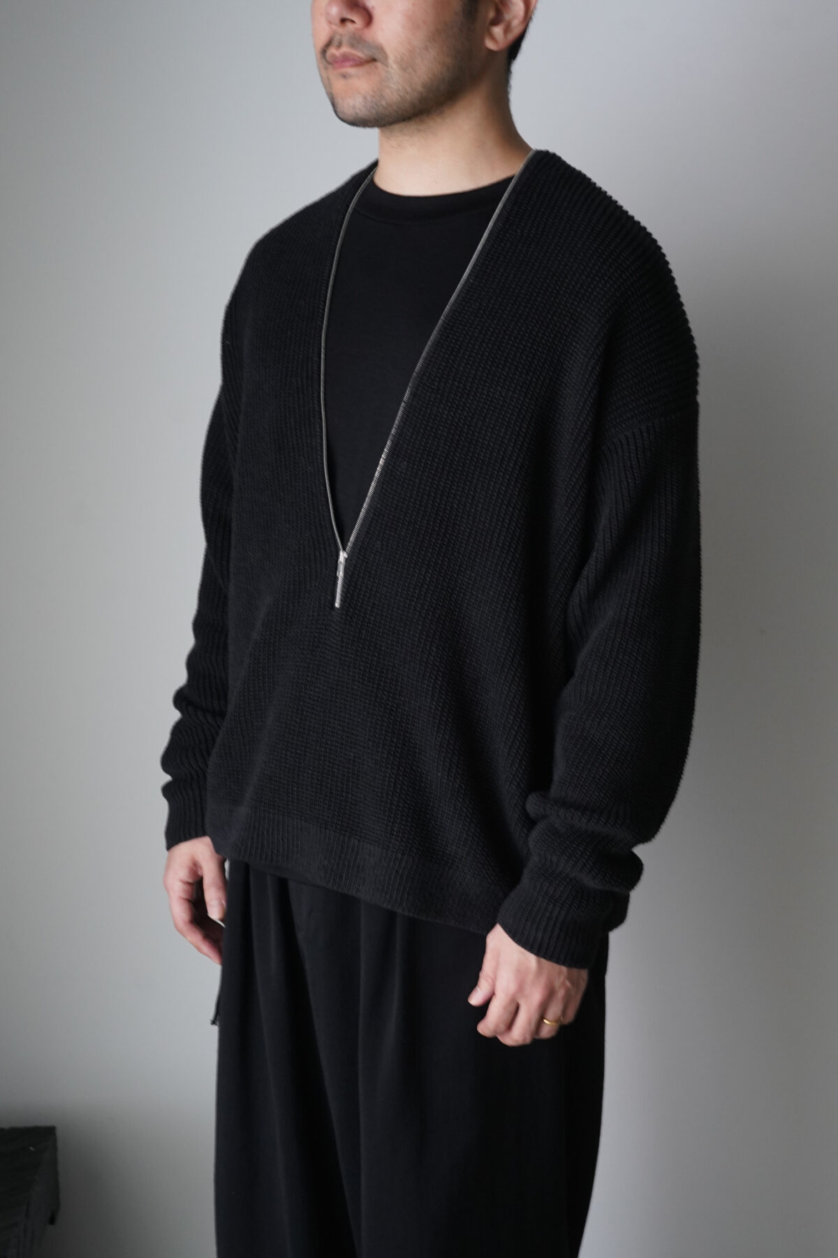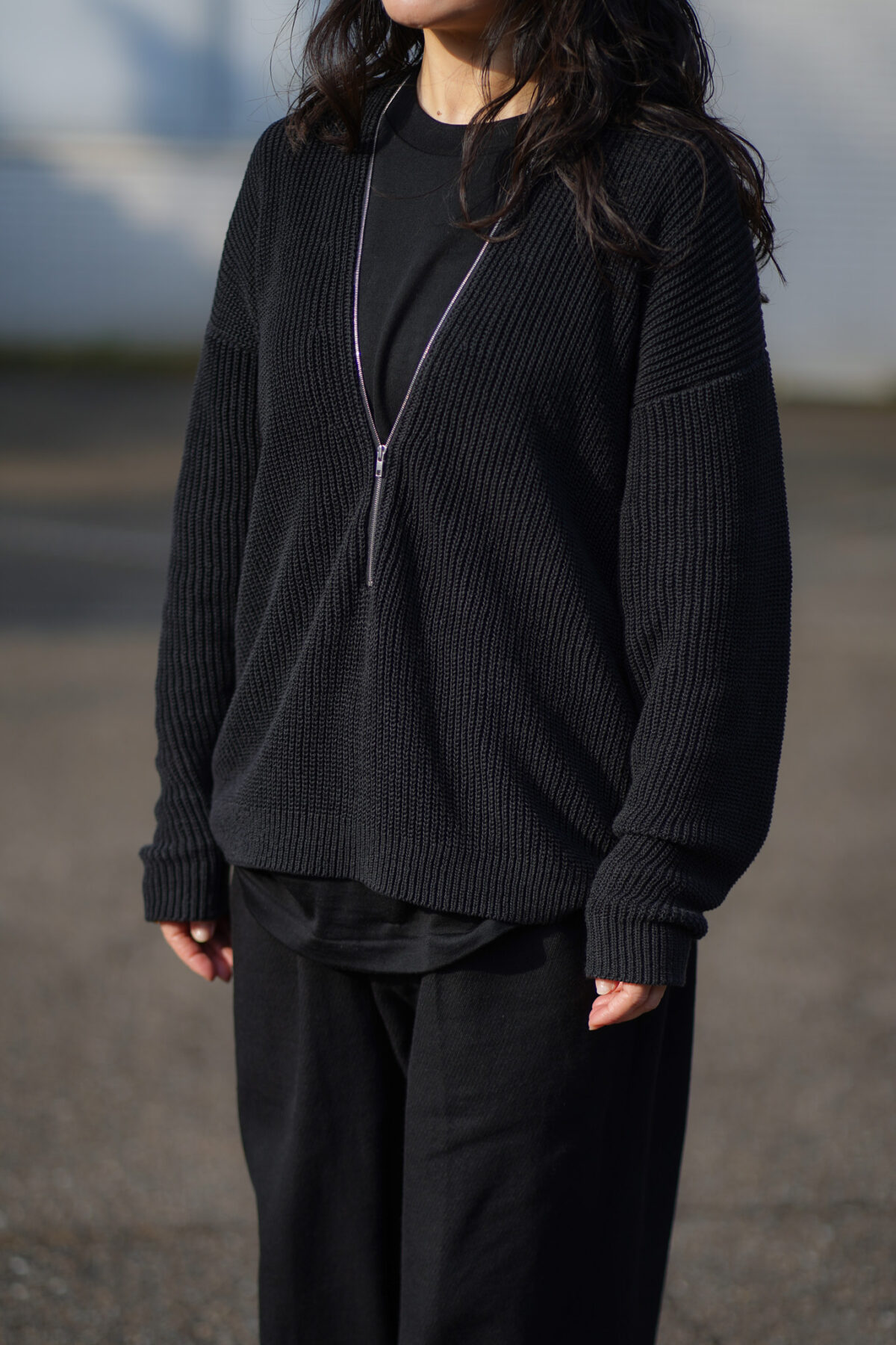 phebus HEMP KNIT ZIP-UP JUMPER BLACK