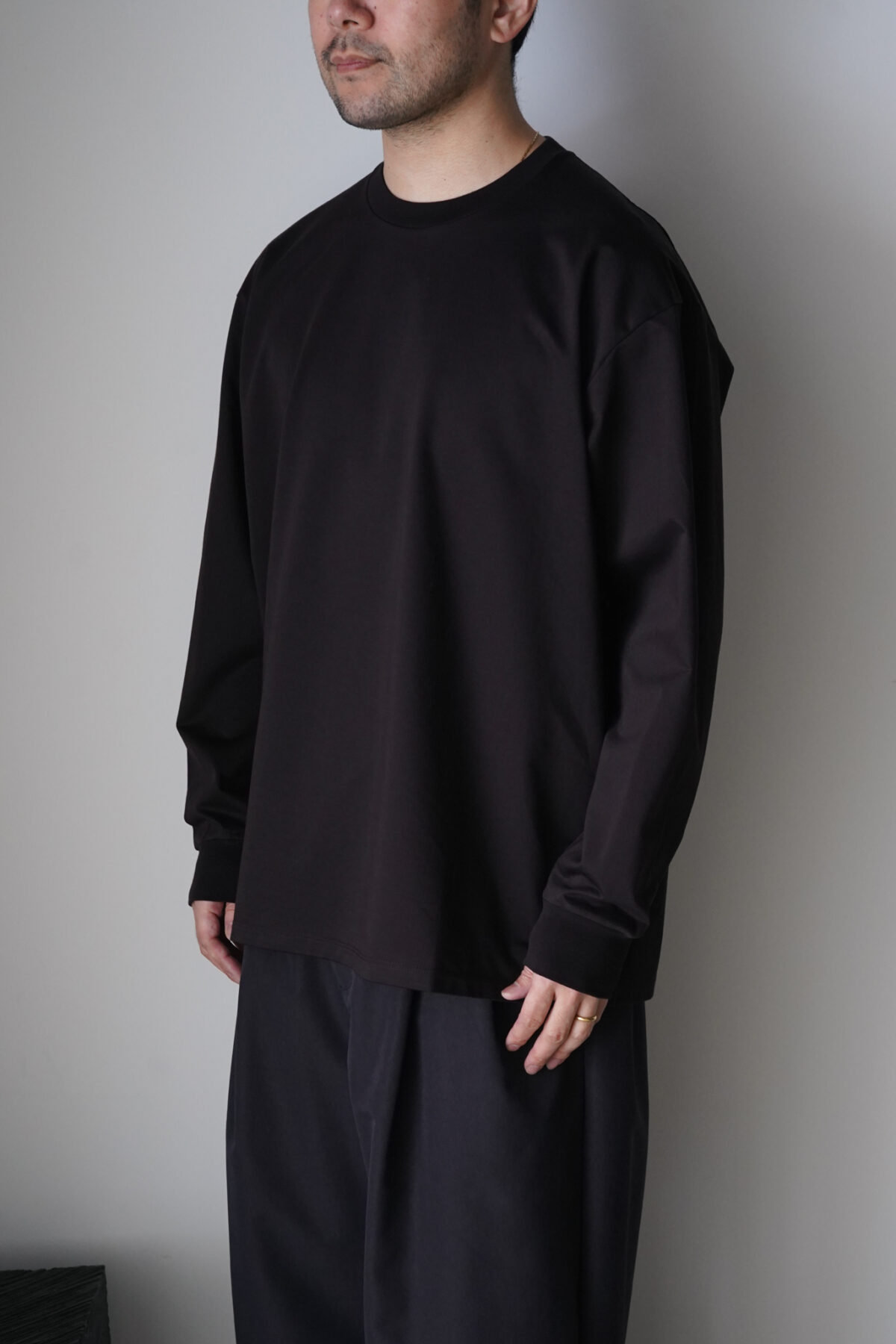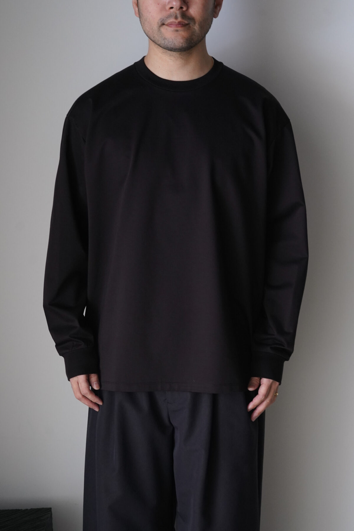 日本に数台しかない大変稀少な編み機を使用して、36Gと言う極めてハイゲージに編み上げた、もはや布帛のような天竺素材。