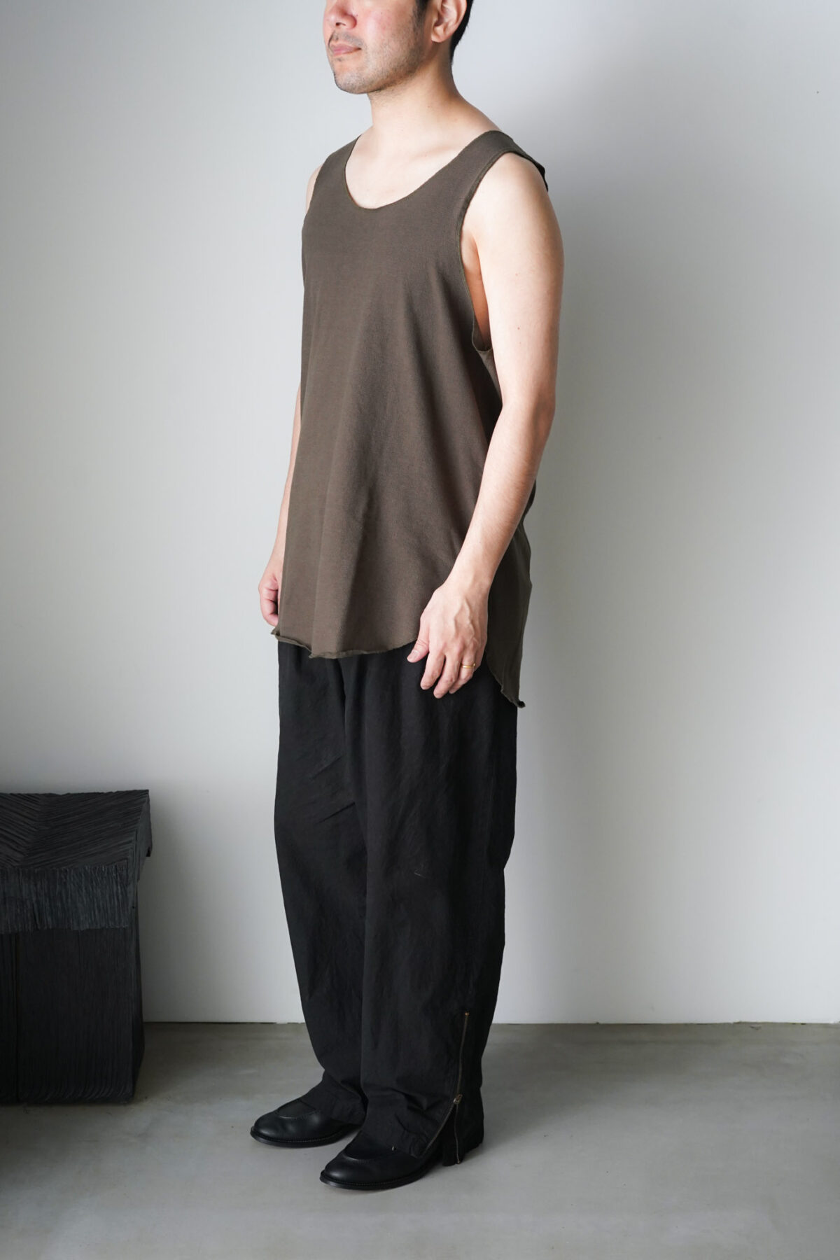 レイヤードスタイルのインナー使いはもちろん、一枚での着用や夏場の軽いスタイリングまで、幅広く重宝する一着です。