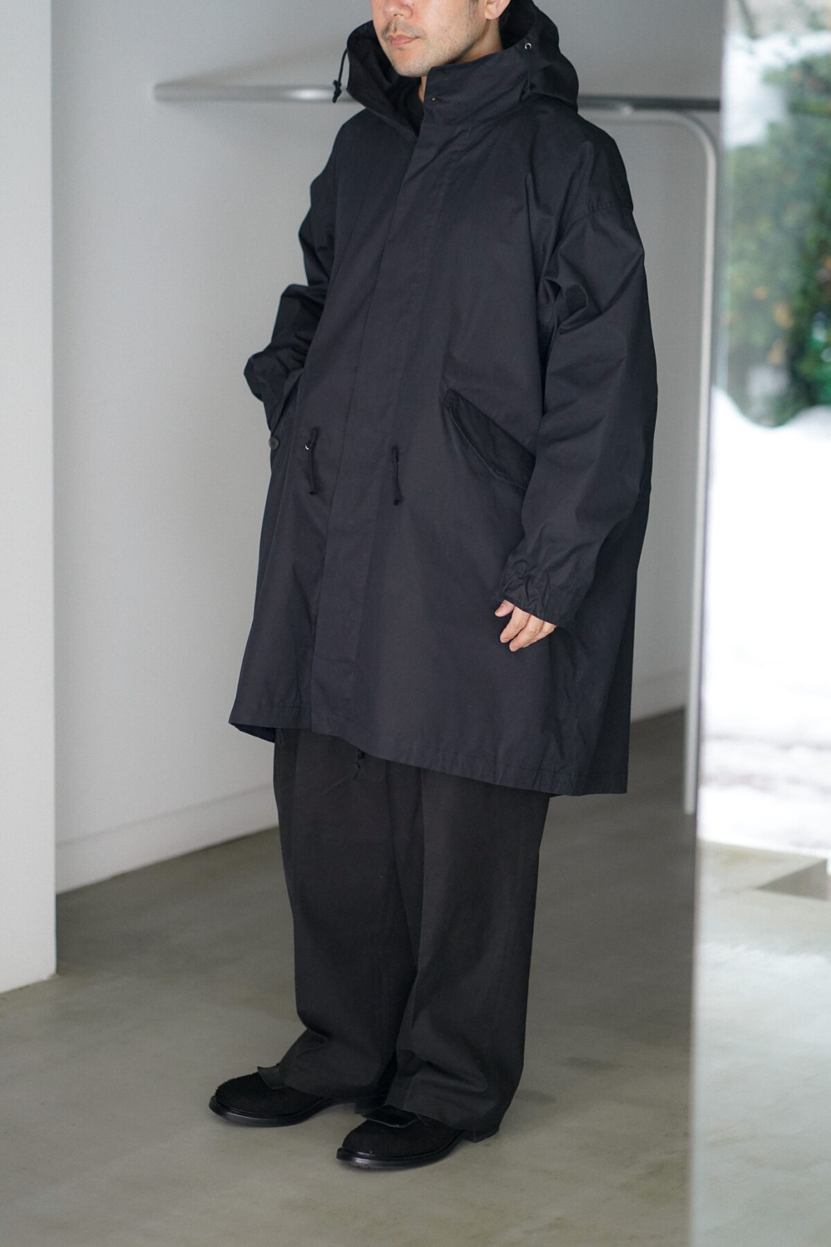 YOKO SAKAMOTO MODS COAT - MAX HIGH COUNT WEATHER TYPEWRITER - BLACK