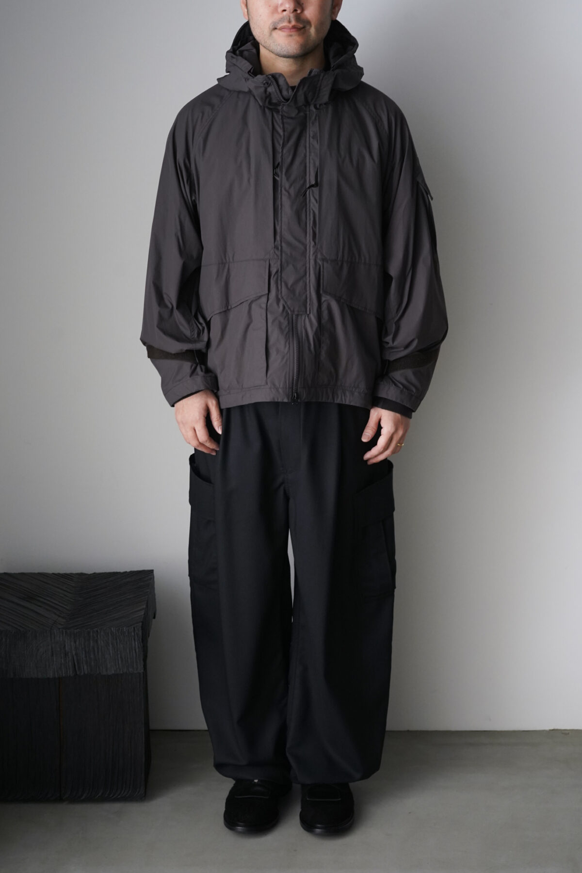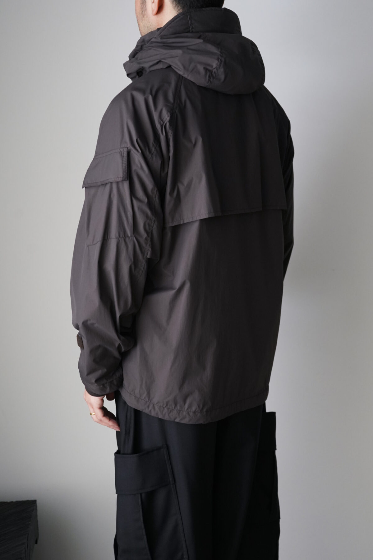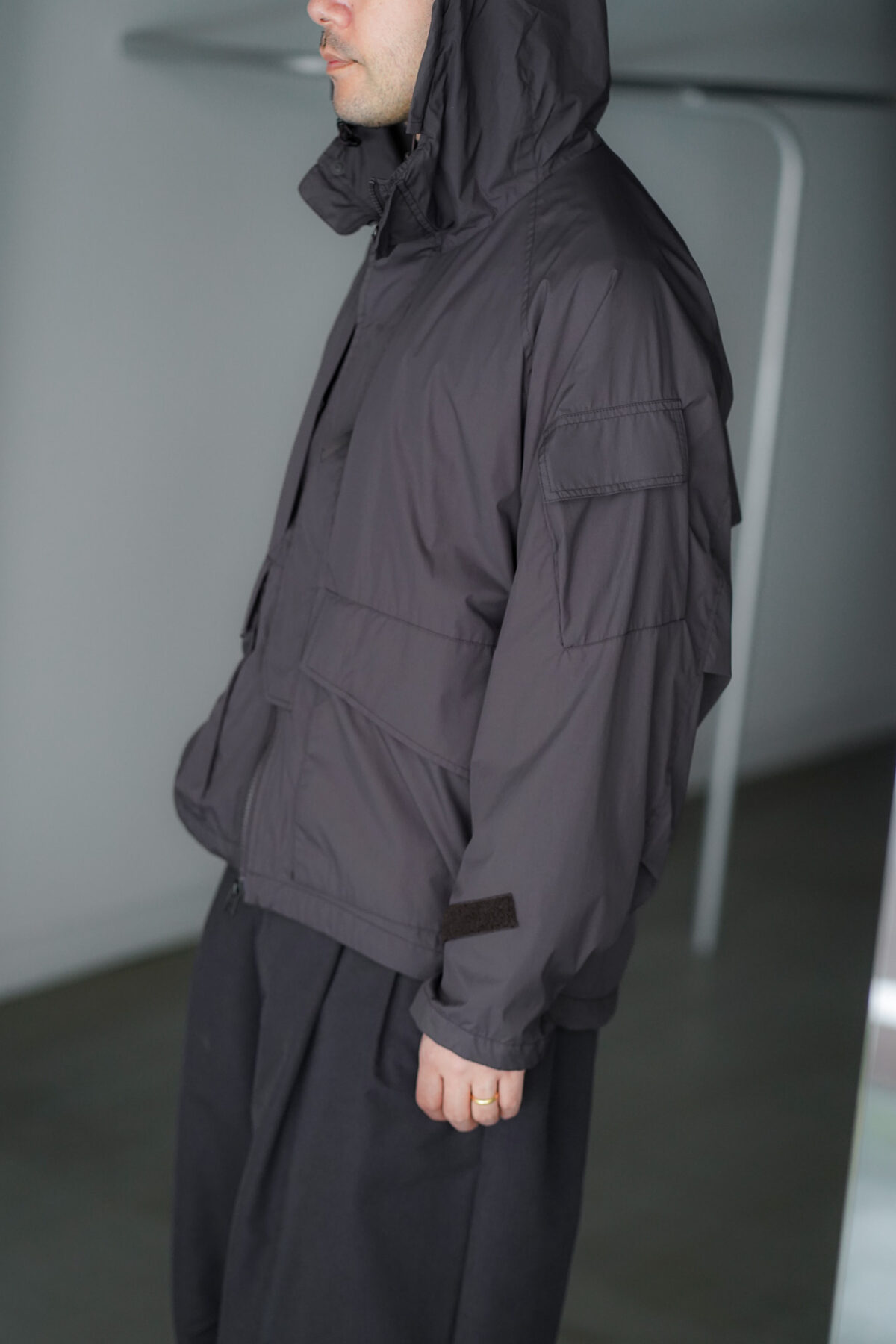 裾口のスピンドル、袖タブにより、機能的なシルエット変化が可能。