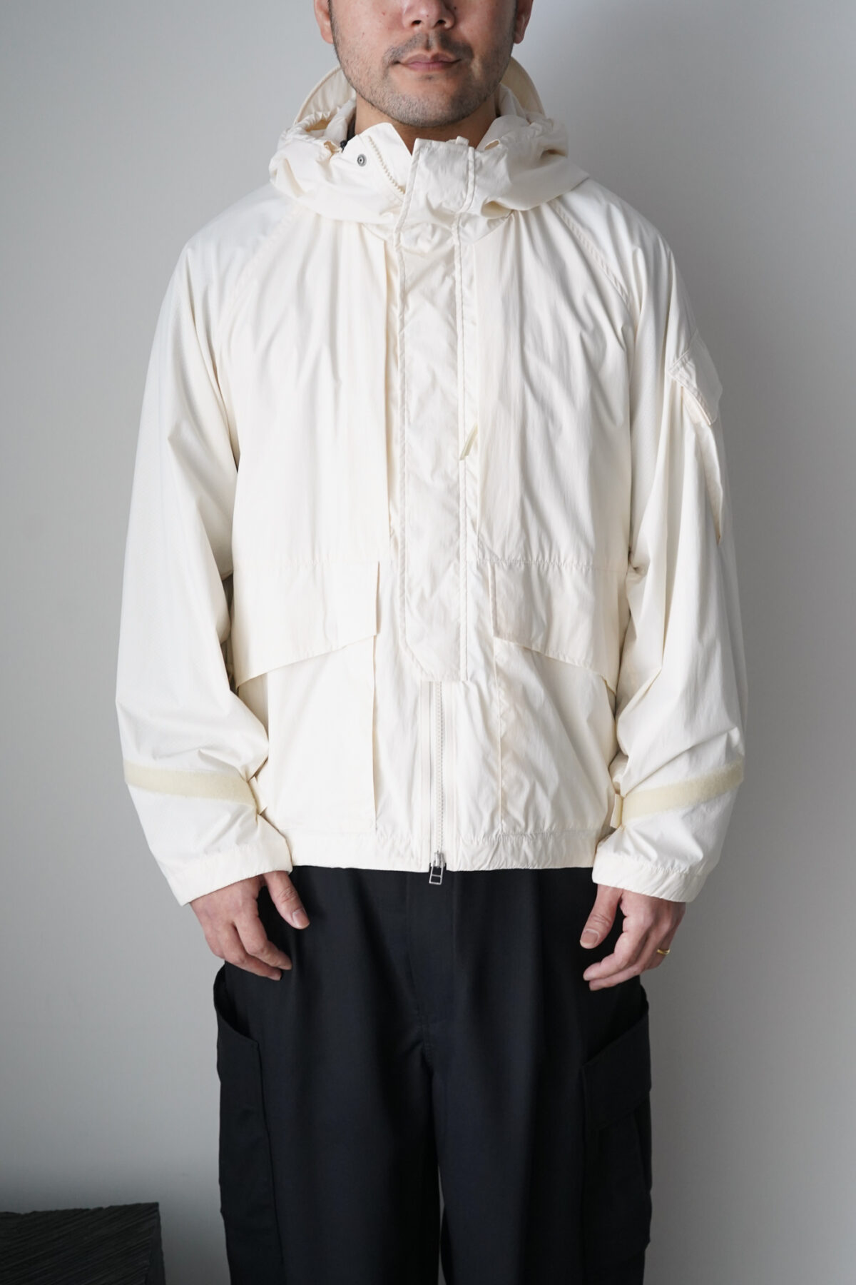 裾口のスピンドル、袖タブにより、機能的なシルエット変化が可能。