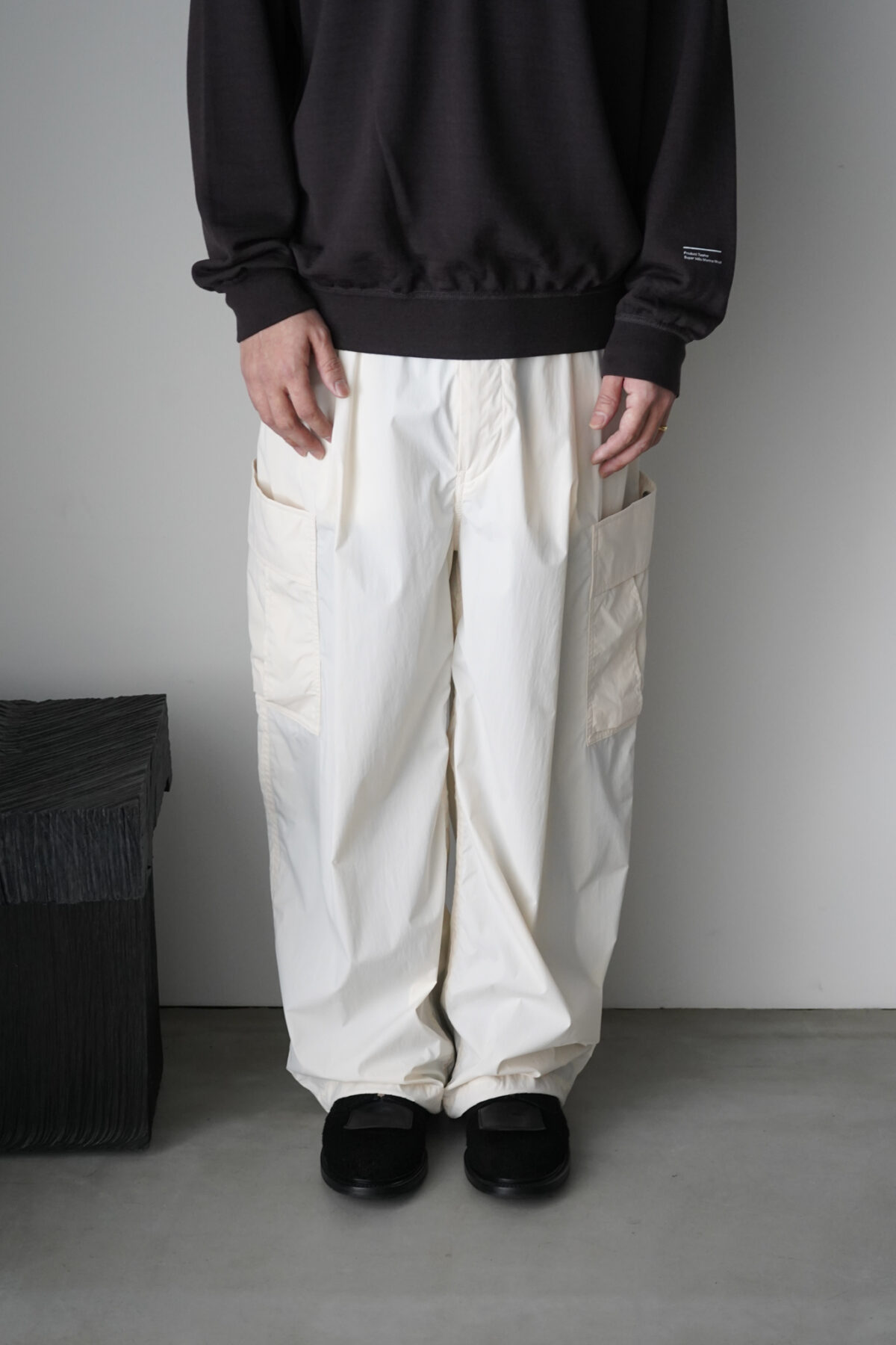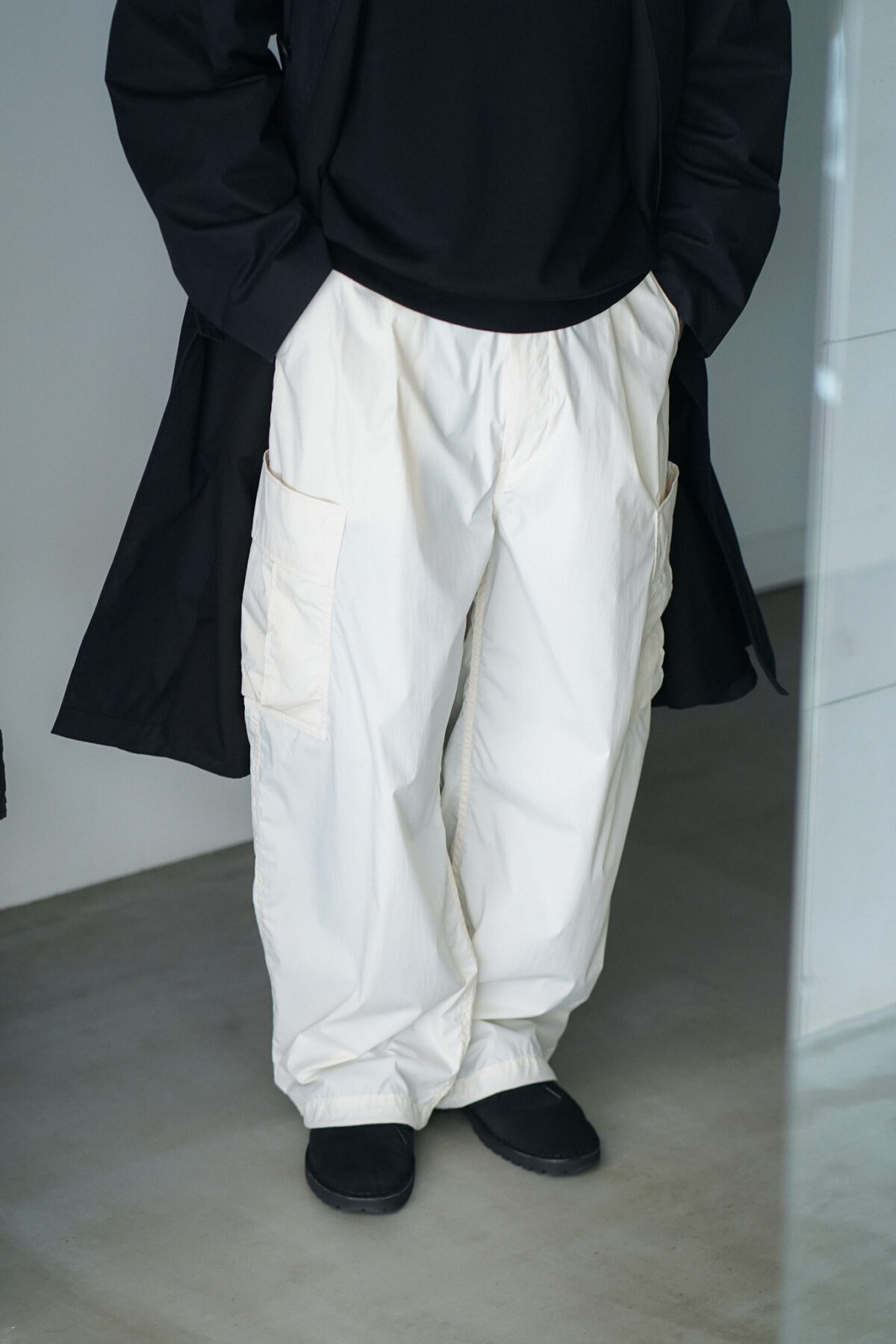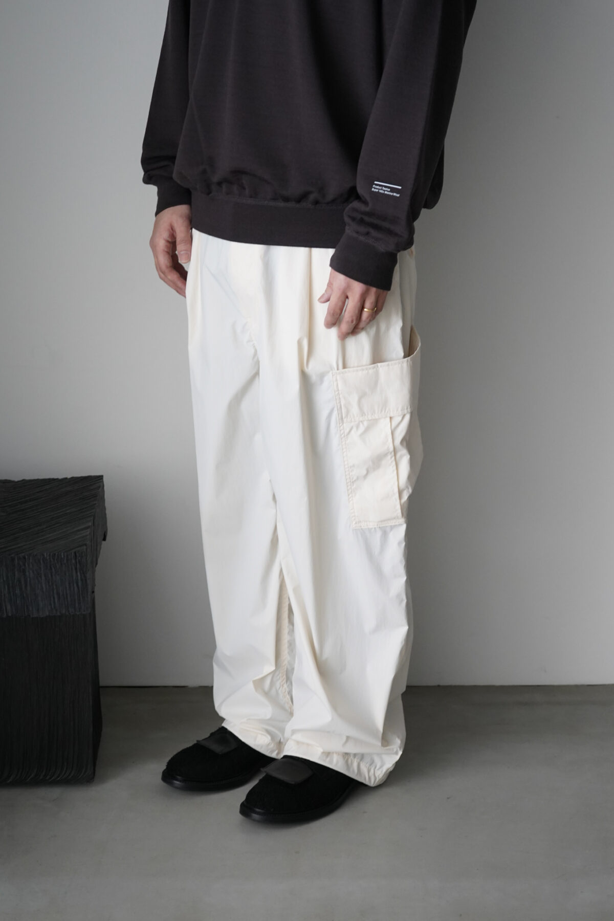 P12 RAIN JACKET ECRU と同素材、セットアップとして着用可能です。