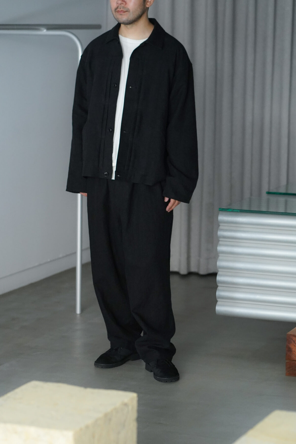 YOKO SAKAMOTO PLEATS JACKET - MAX HIGH COUNT HEMP - BLACK