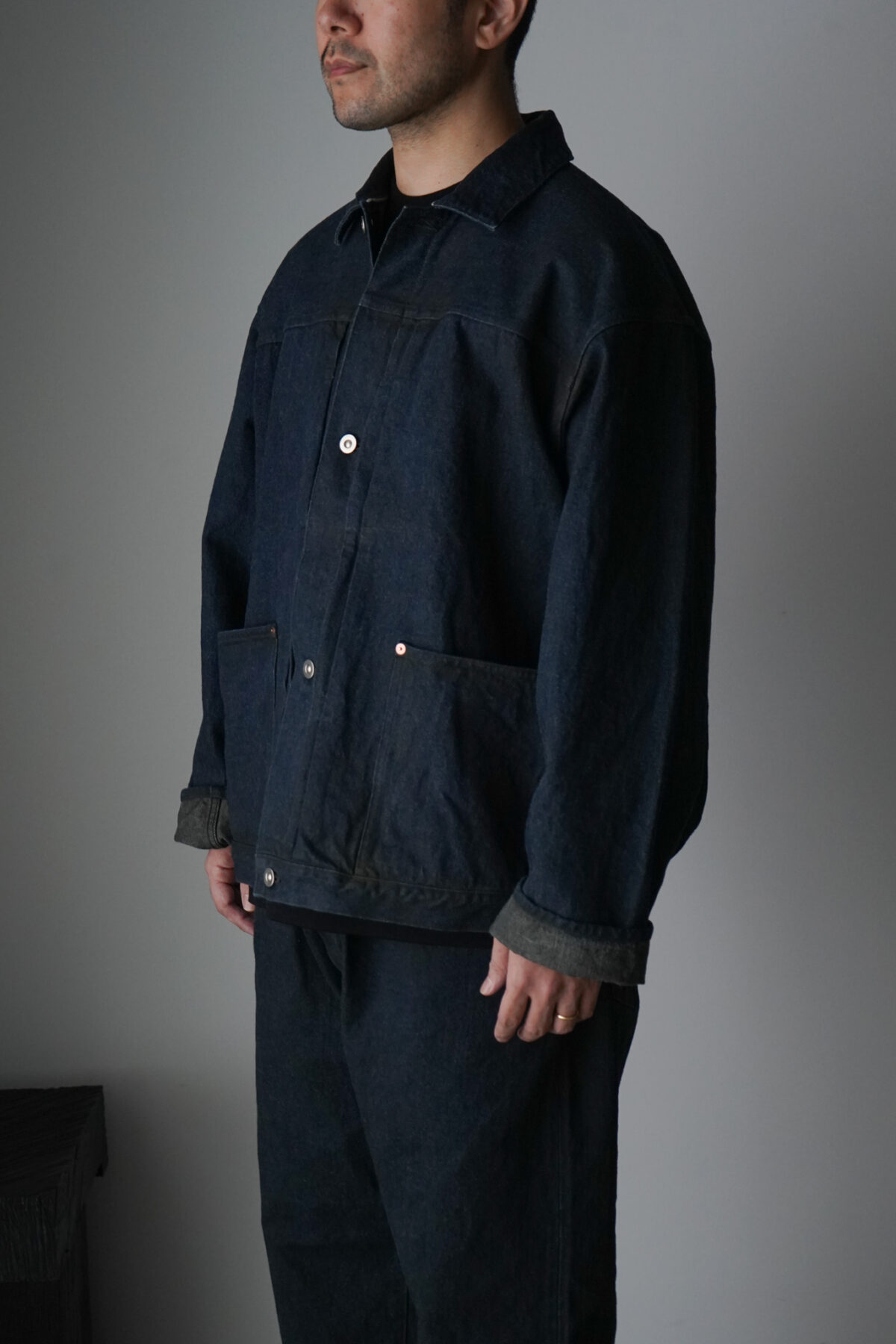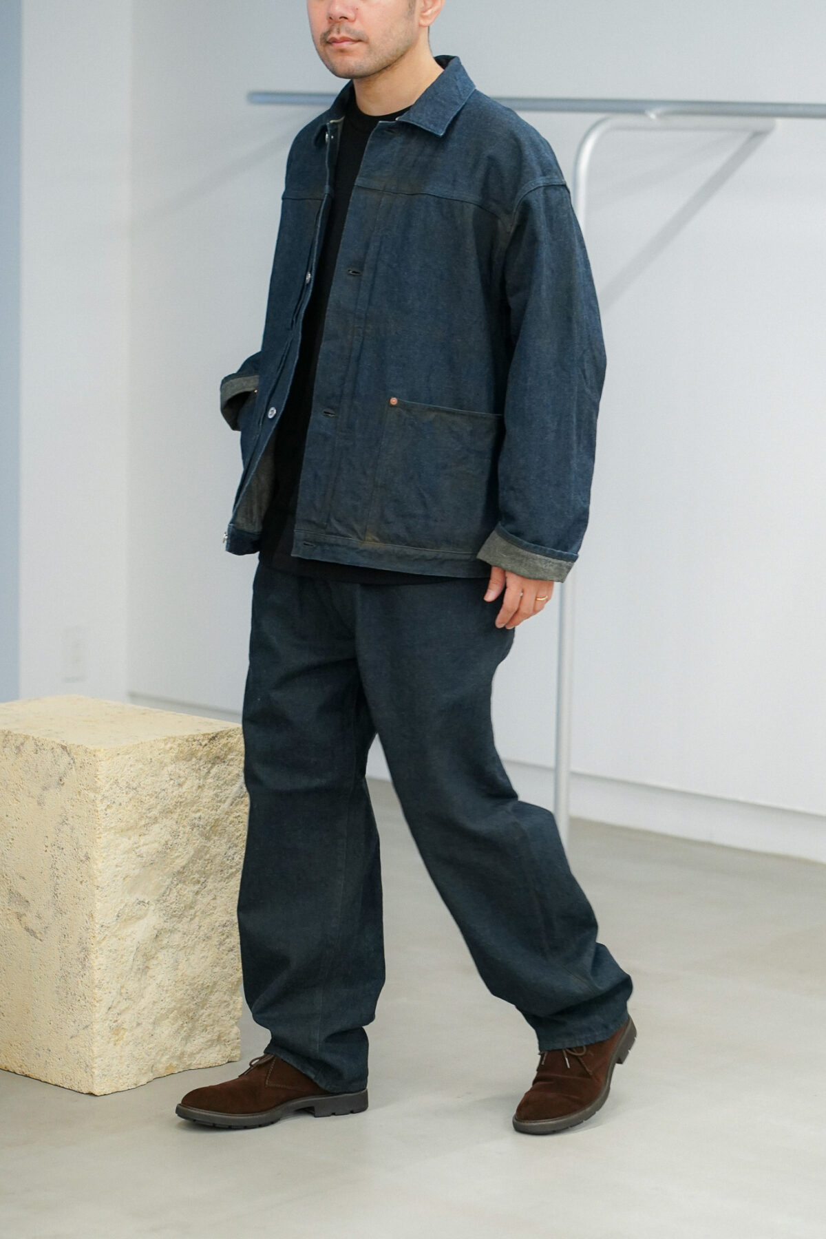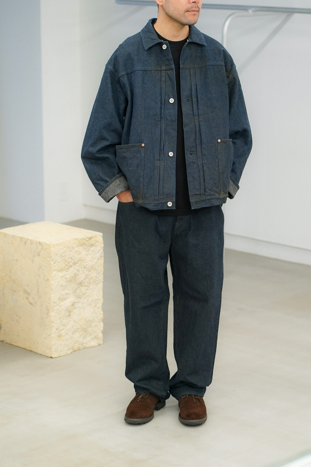 5POCKET EASY PANTS – RAW DENIM – YELLOW OCHRE と同素材でセットアップで着用可能です。