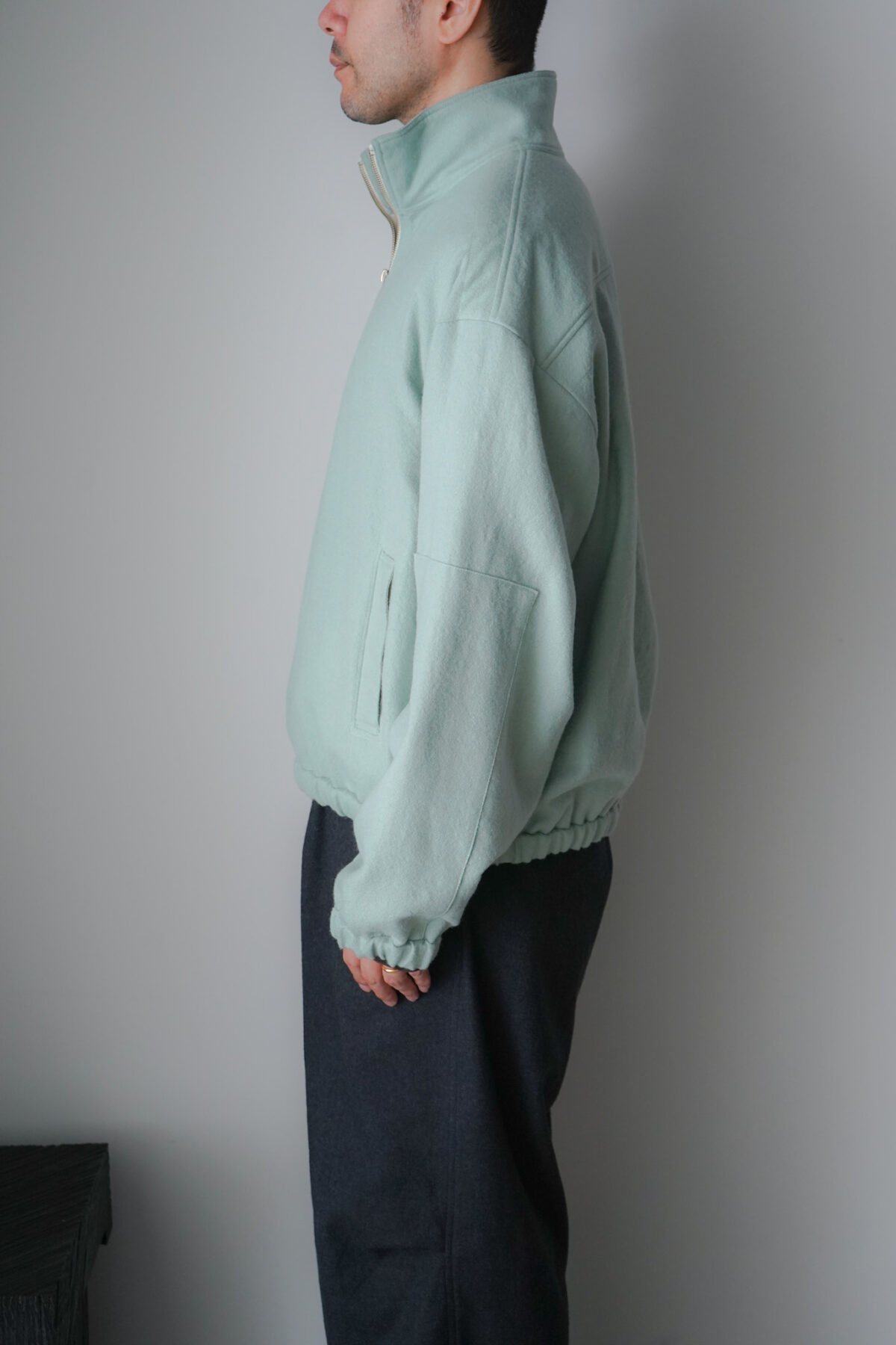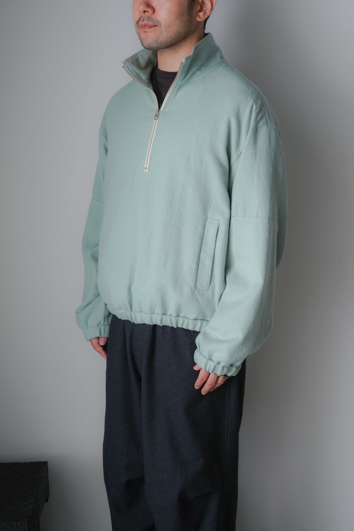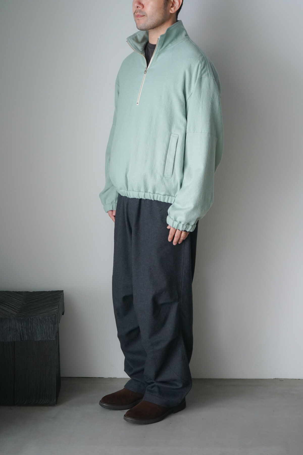水流縮繊の加工による、ソフトでエアリーな風合いが特徴の生地を使って大人のフリースをデザインしました。