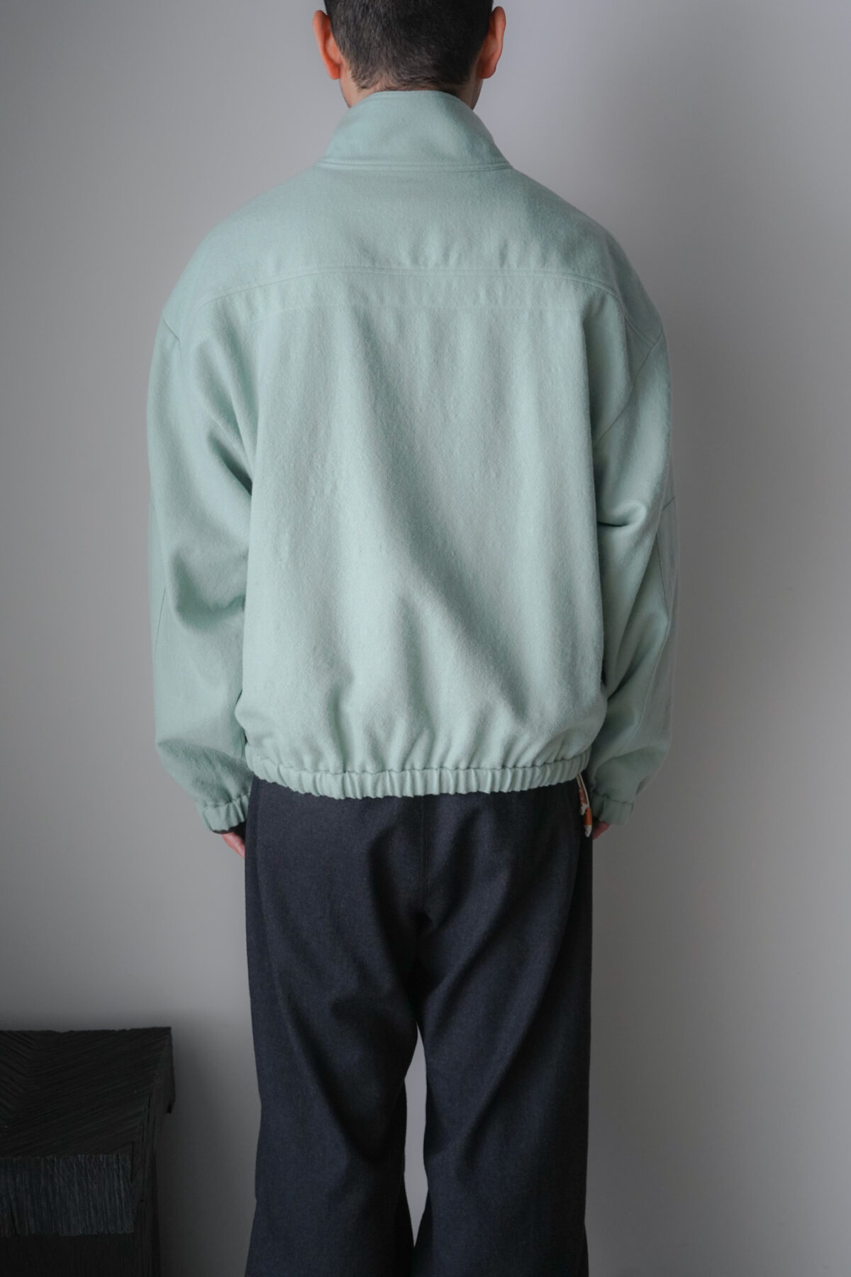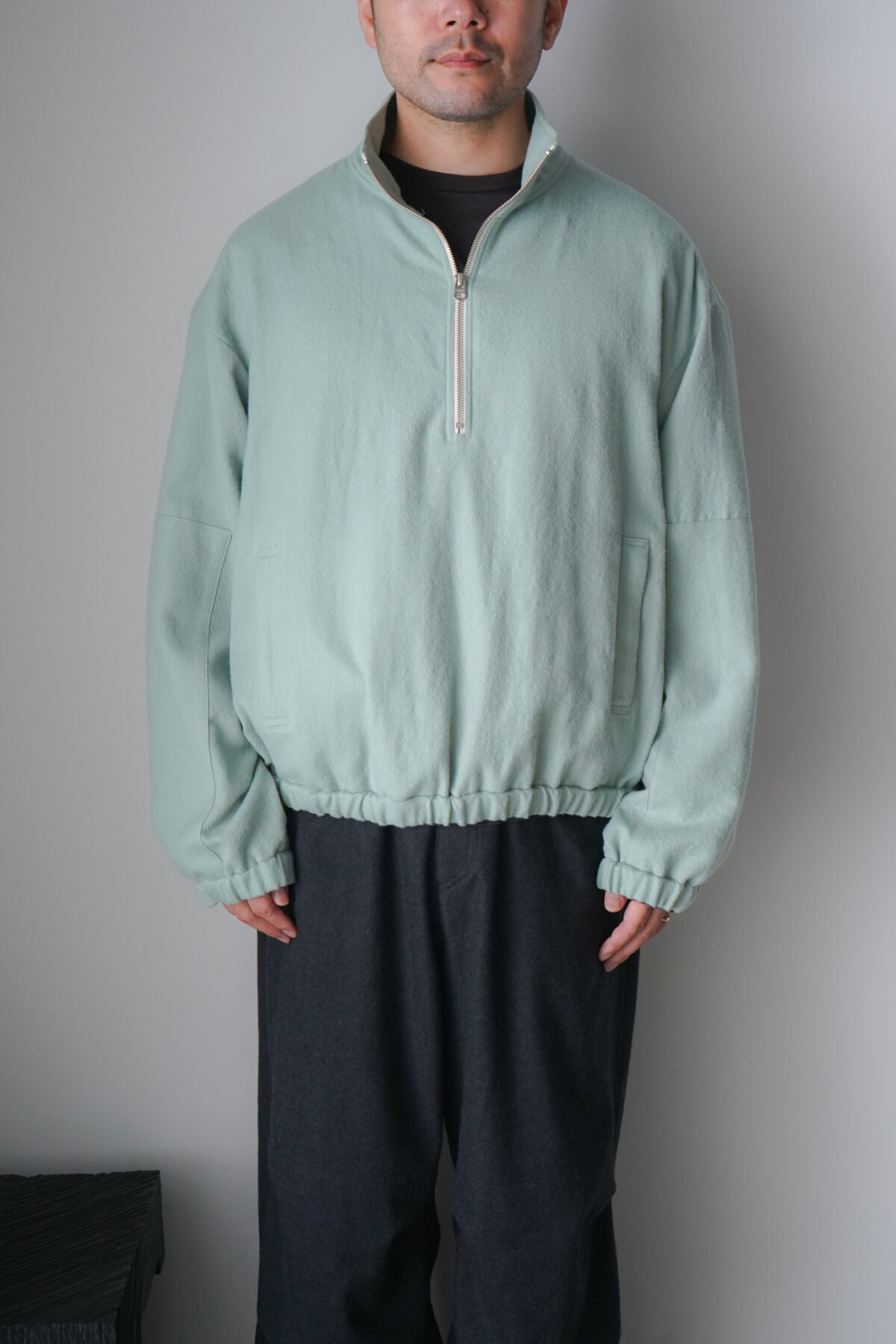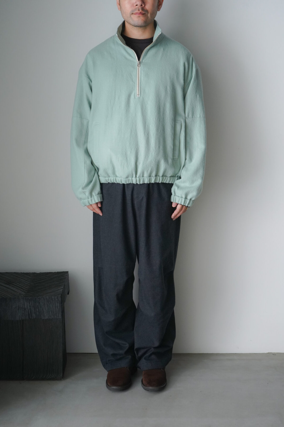 水流縮繊の加工による、ソフトでエアリーな風合いが特徴の生地を使って大人のフリースをデザインしました。