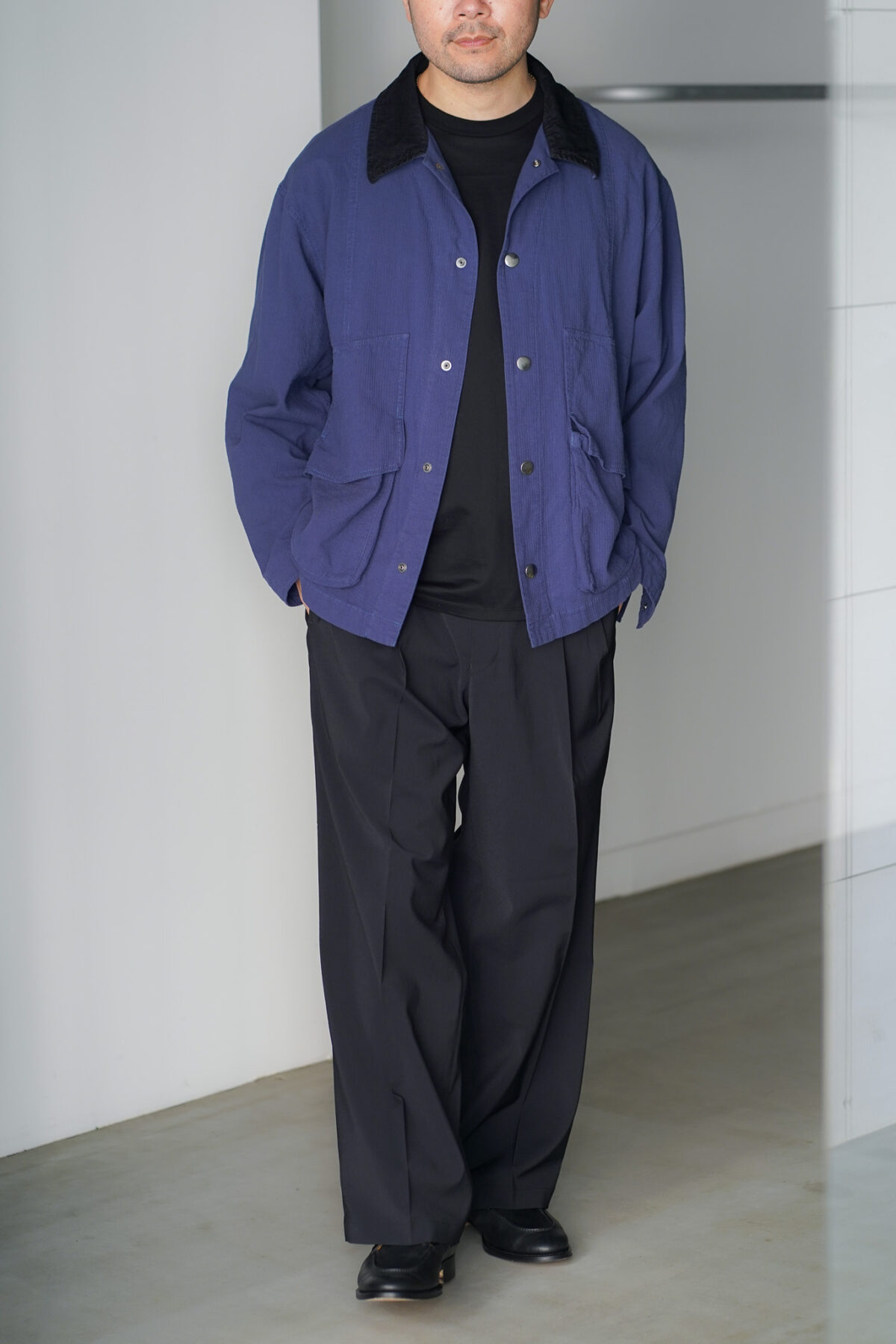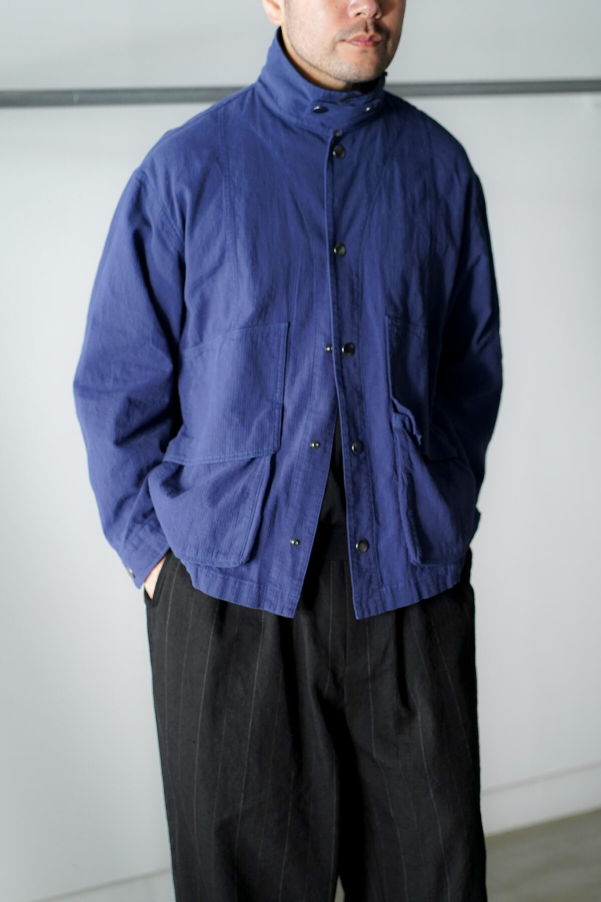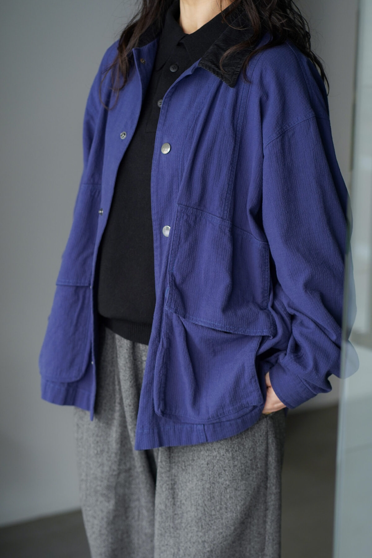 ジャケットのカラー襟部分にコーデュロイ素材を使用し異素材のアクセントで色々演出が可能です。
