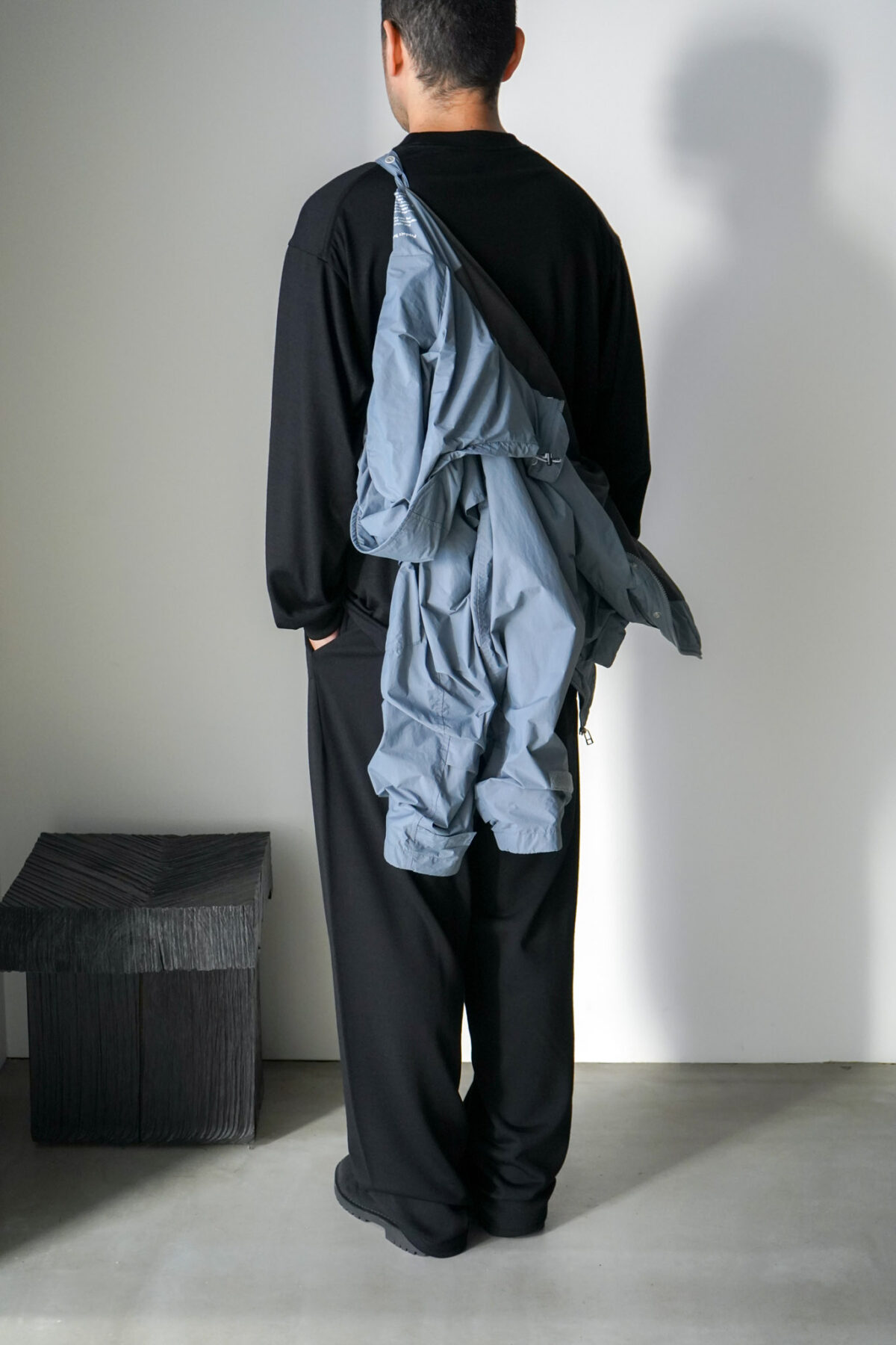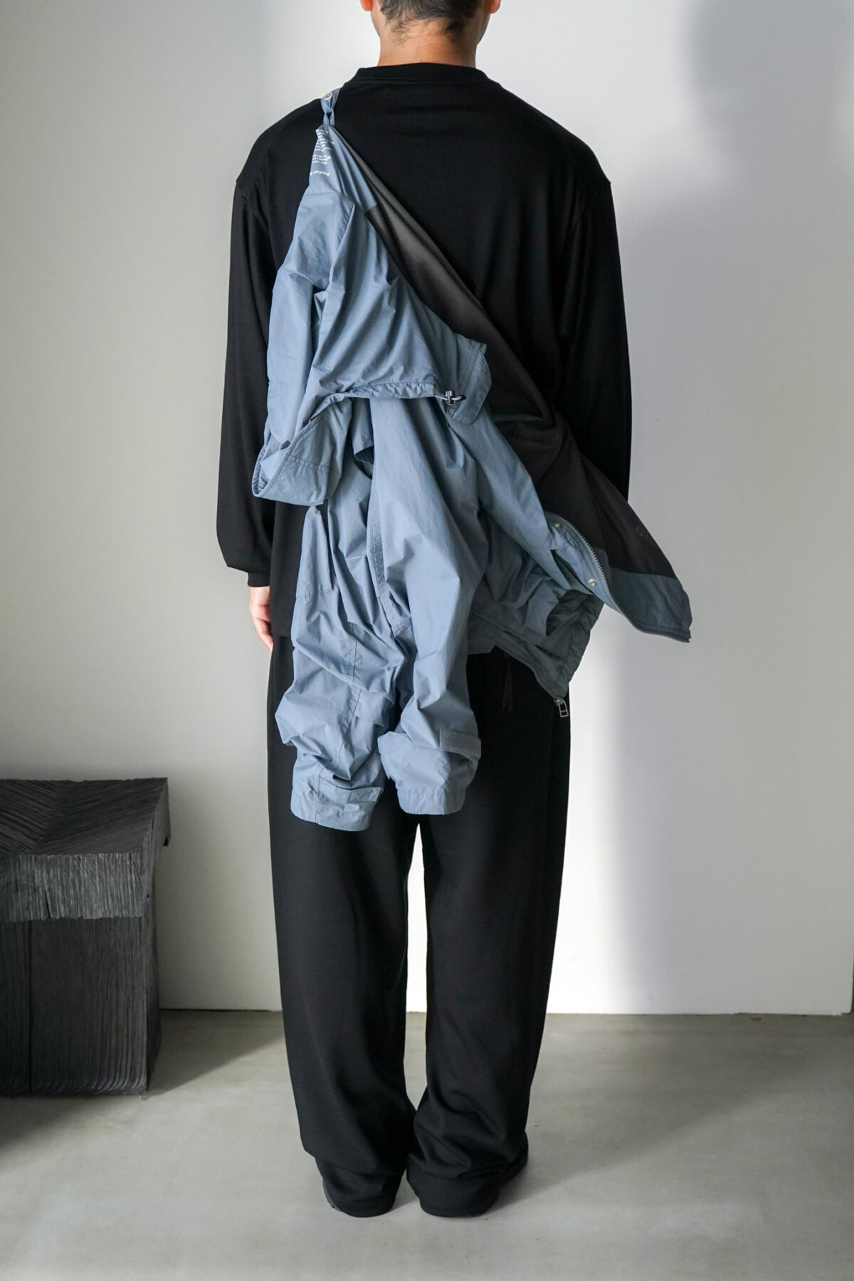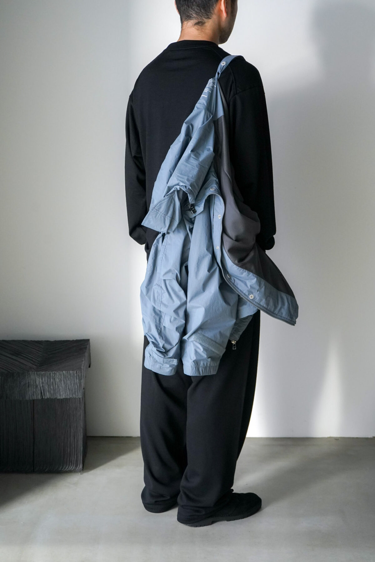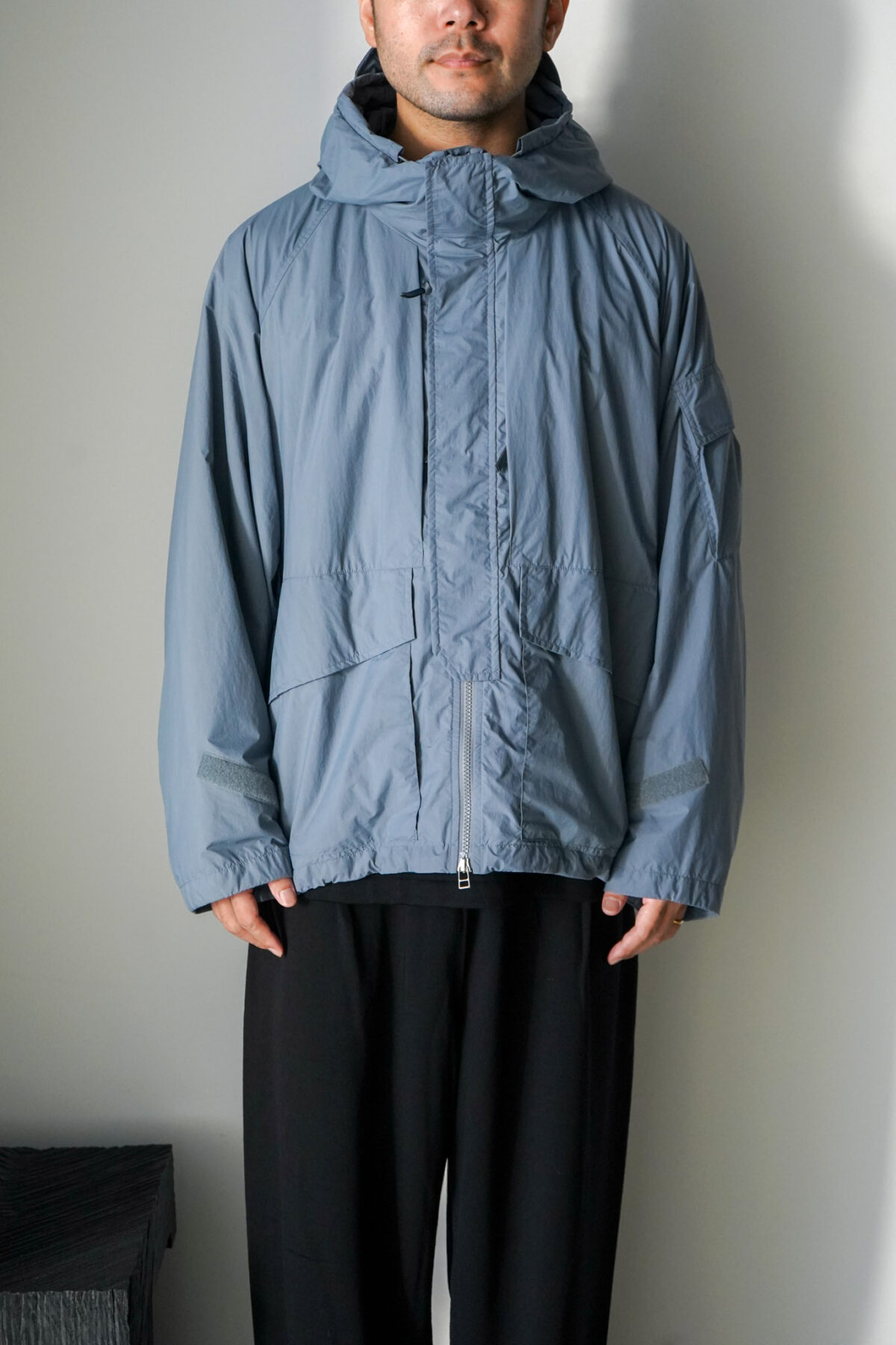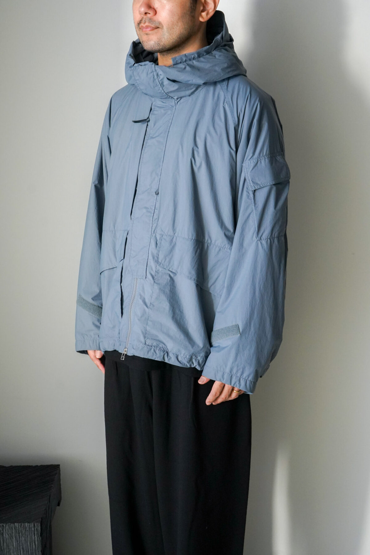 裾口のスピンドル、袖タブにより、機能的なシルエット変化が可能。