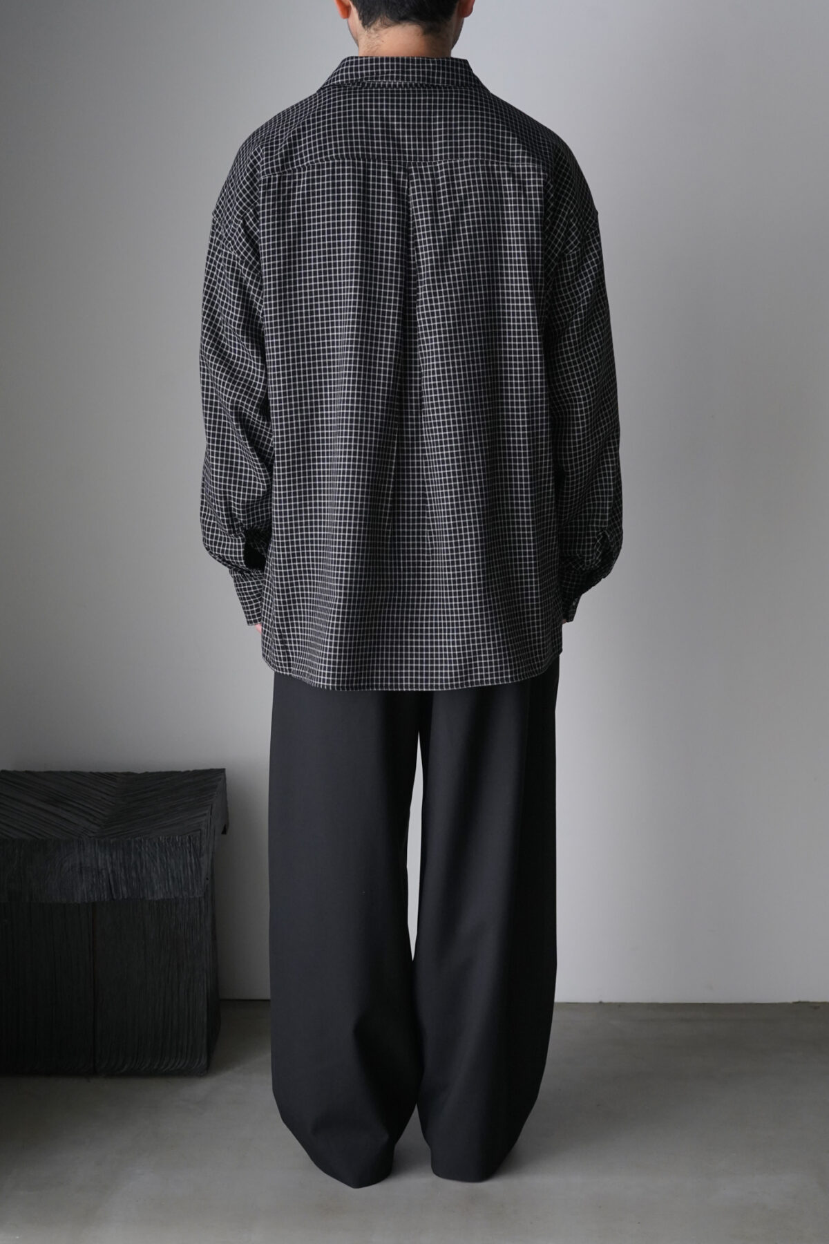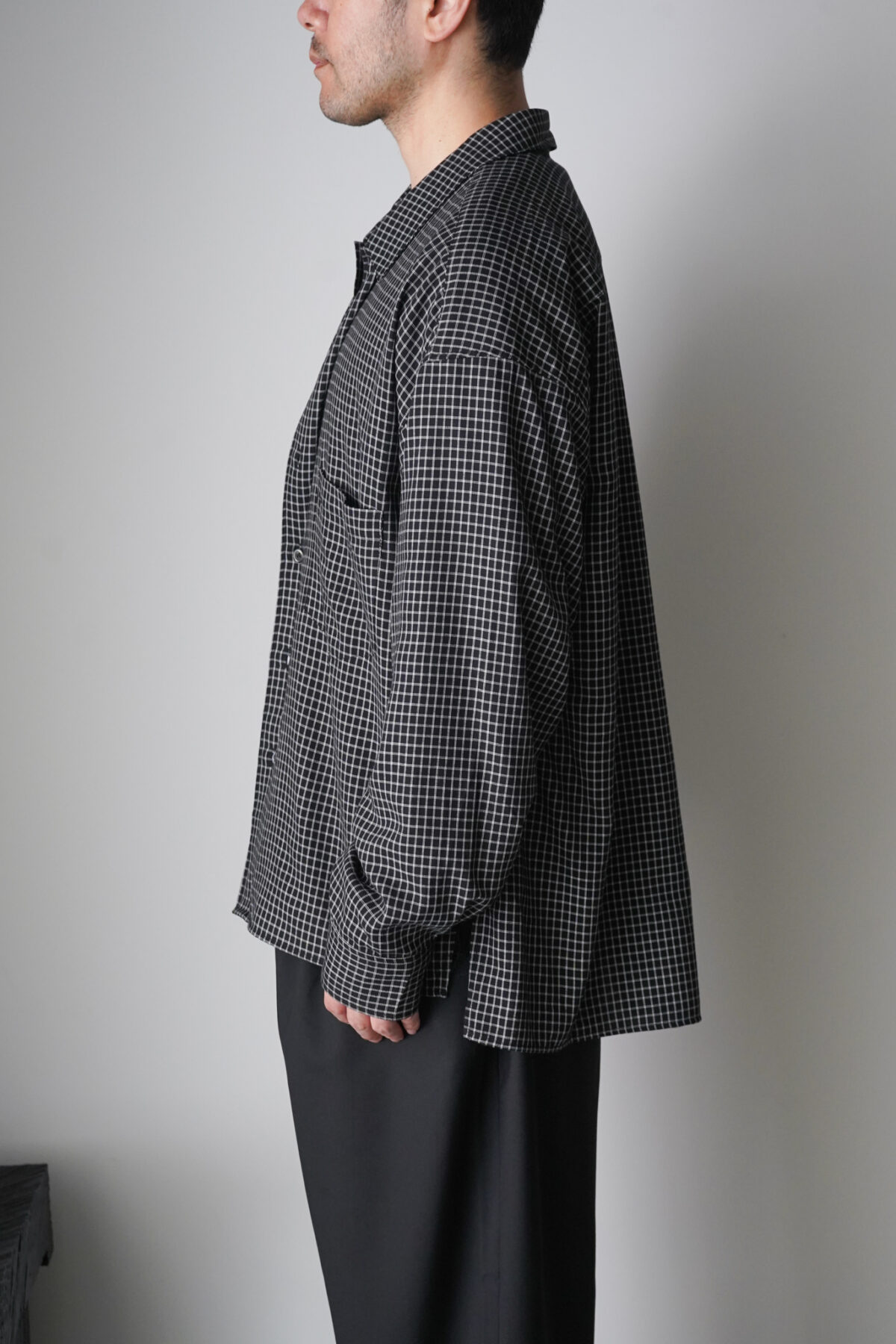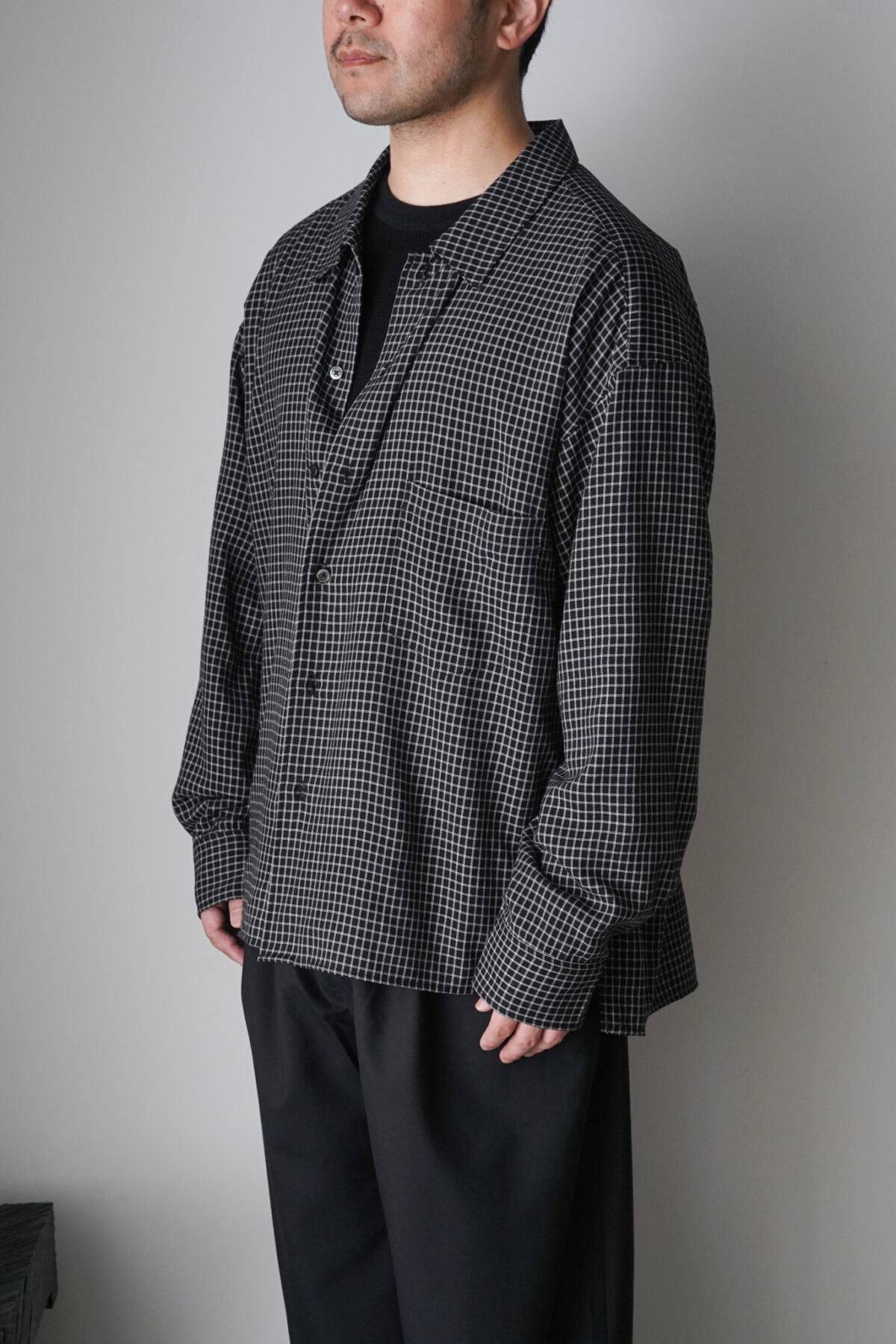 着用感はリラックスしたフィッティングで羽織りのように着ていただける仕様、フェイスはシャツですがちょっとしたジャケットのようなニュアンスも感じます。着心地も羽織った時のシルエットも大変良くとてもおすすめさせていただきたい一枚です。