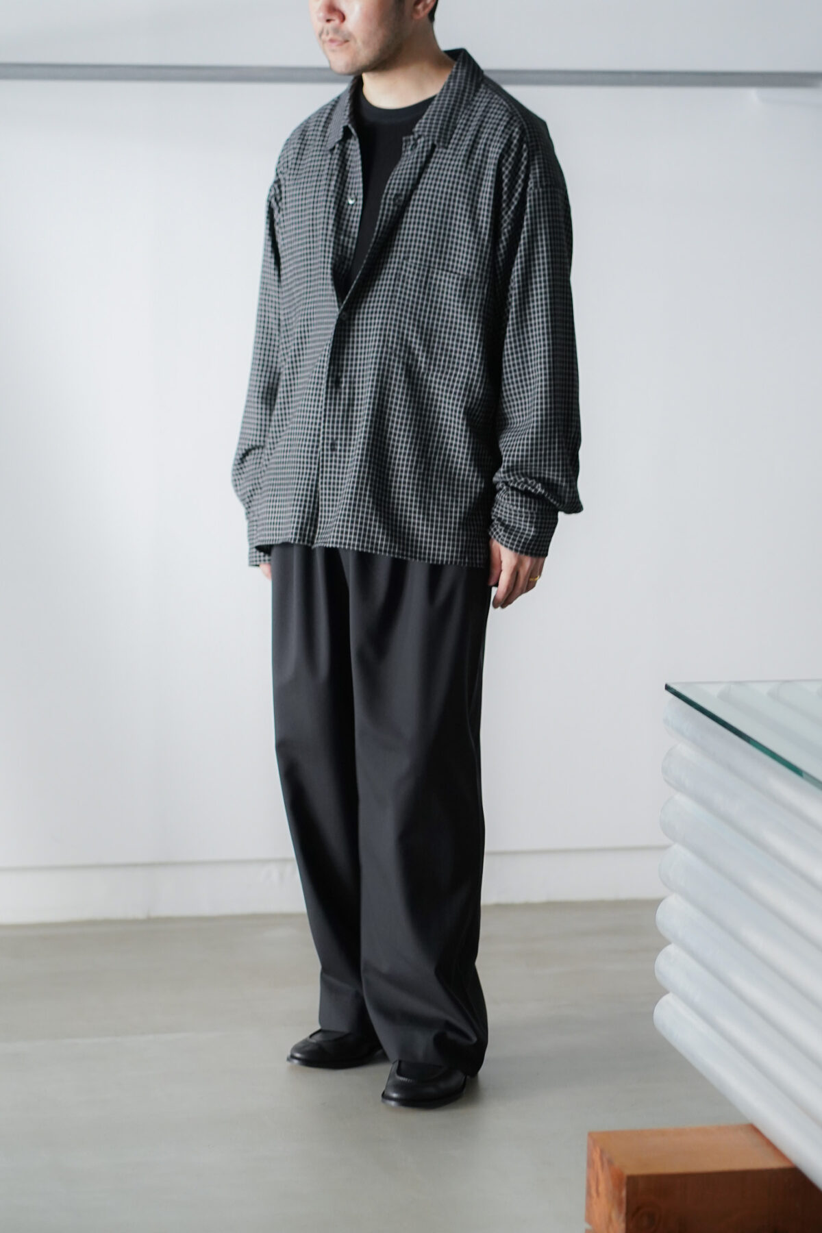 同ブランドのデニムスラックスやスラックスとどちらも相性がよく、スタリングに迷うことなく合わせていただけます。今季は着丈をやや短く調整したバランスに仕上げられています。