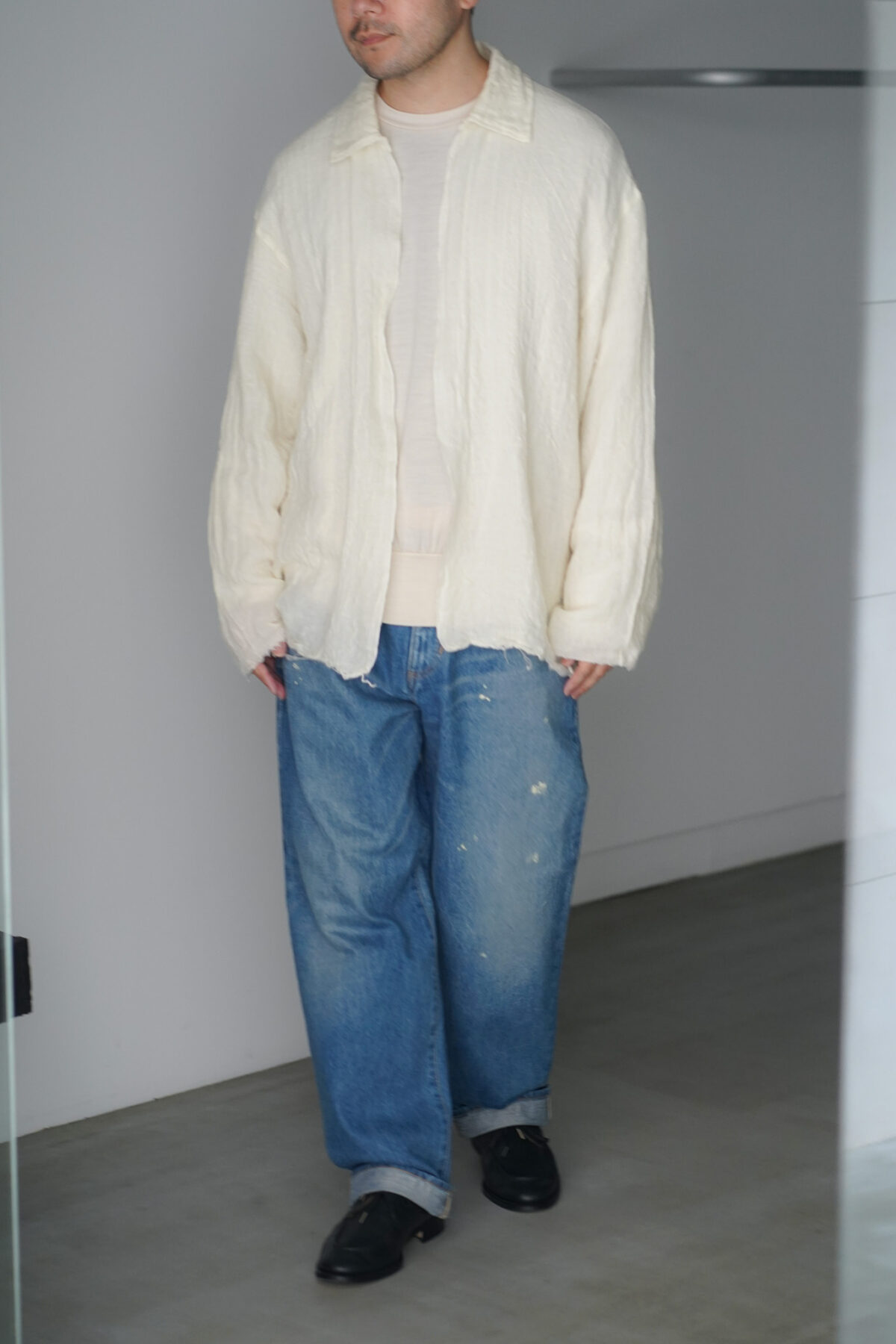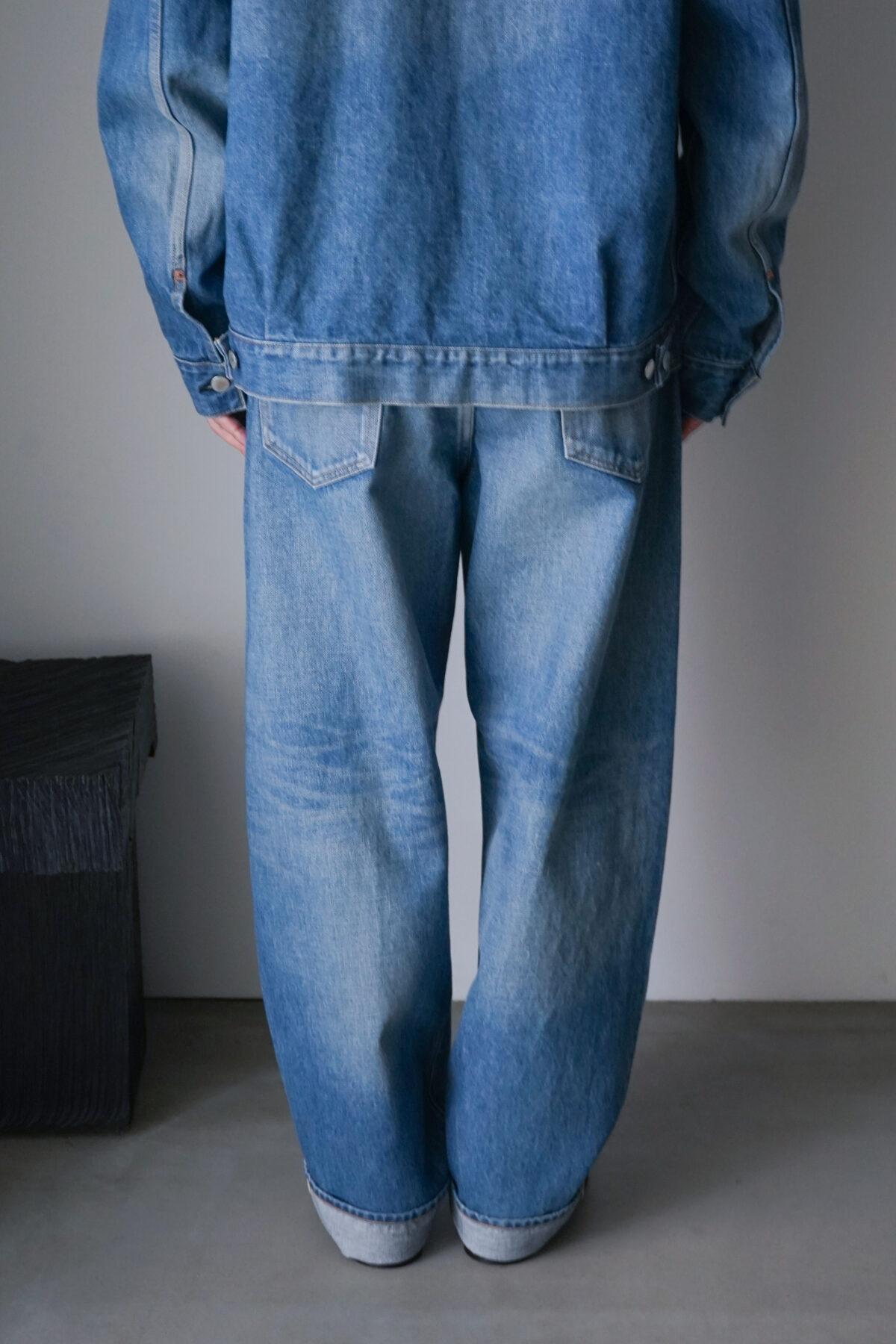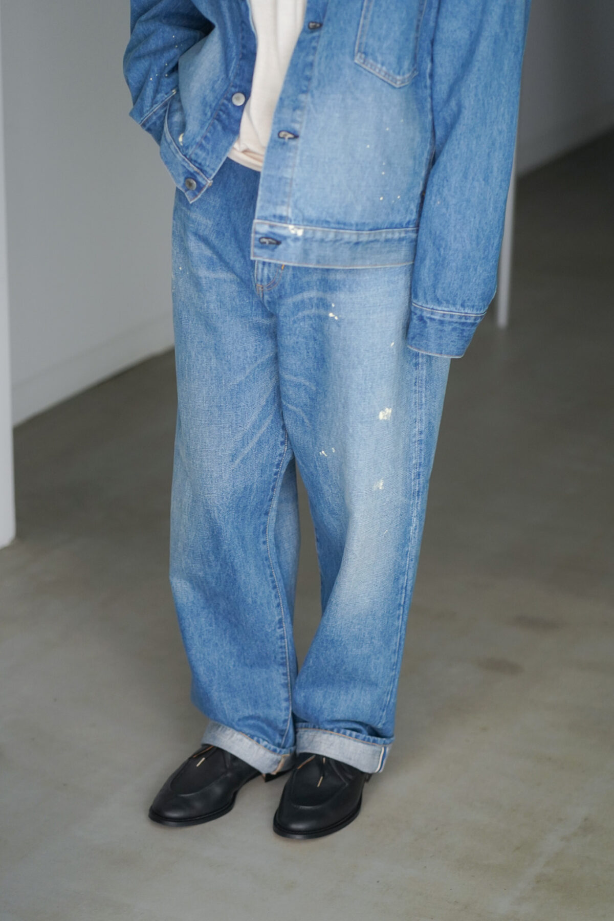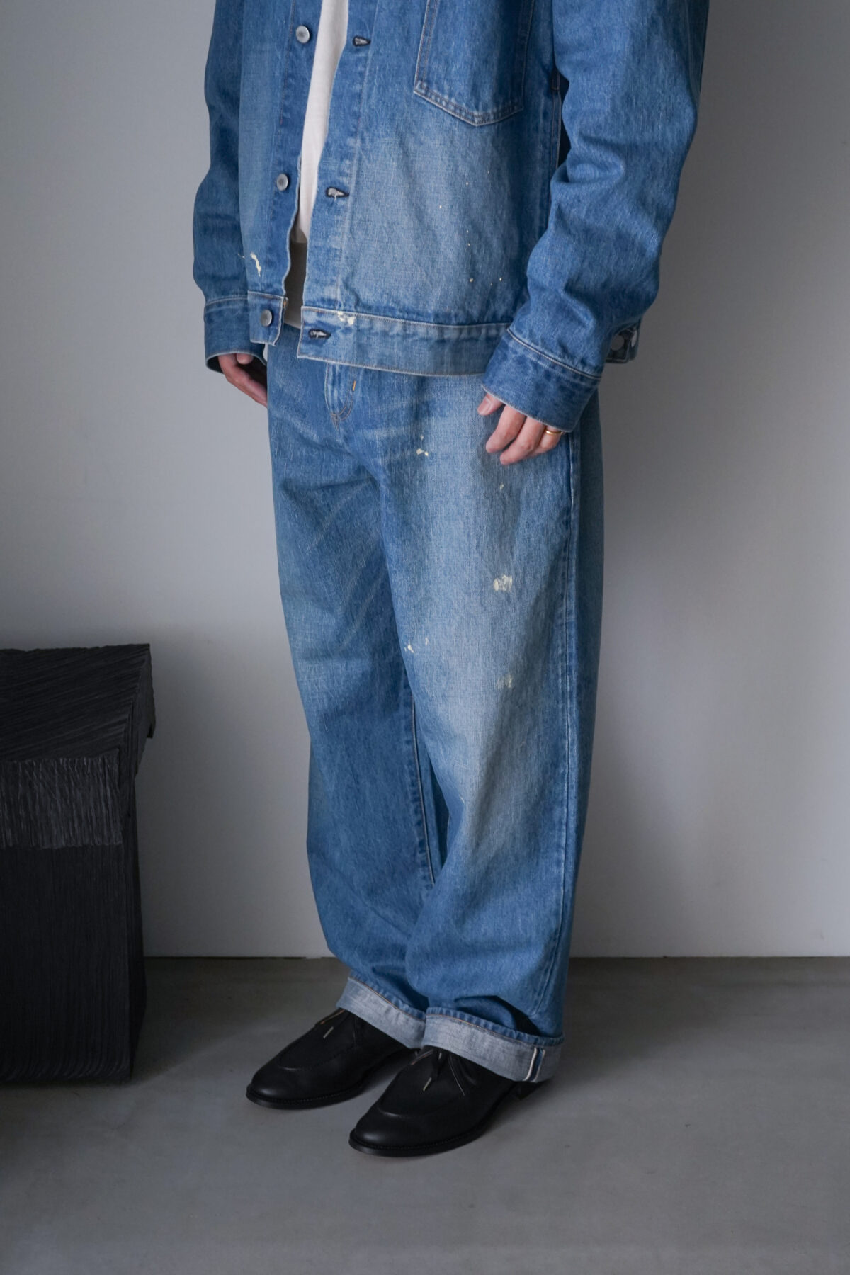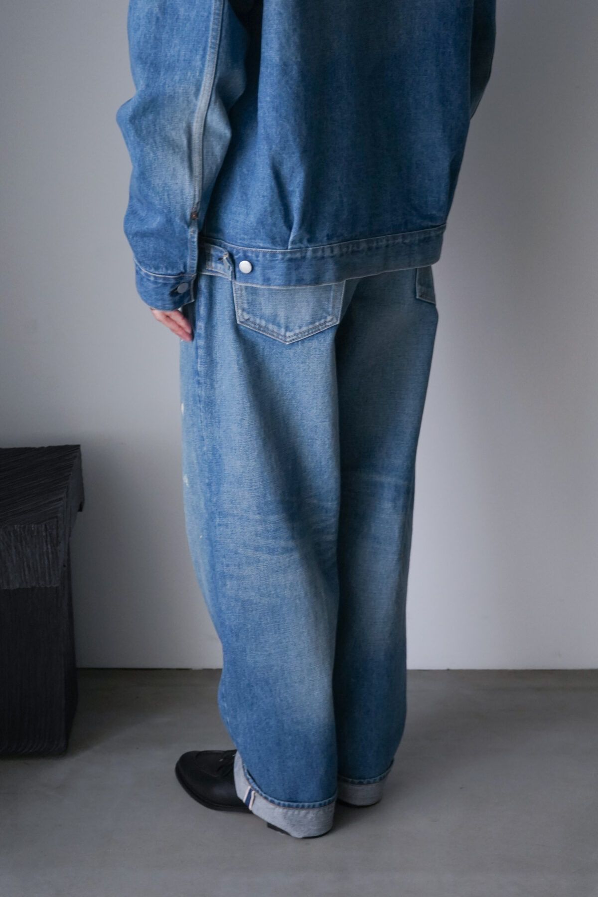 ディテールは90年代の所謂レギュラーと呼ばれる年代のデニムパンツの40inchをモチーフに、随所のパターンを調整し、セルビッヂのデニムを使用することで、当時のバランス感を踏襲しつつも、革靴からスニーカーまで幅広いスタイリングを楽しむことができる、現代的なバランスをもったデニムパンツにアップデートさせました。