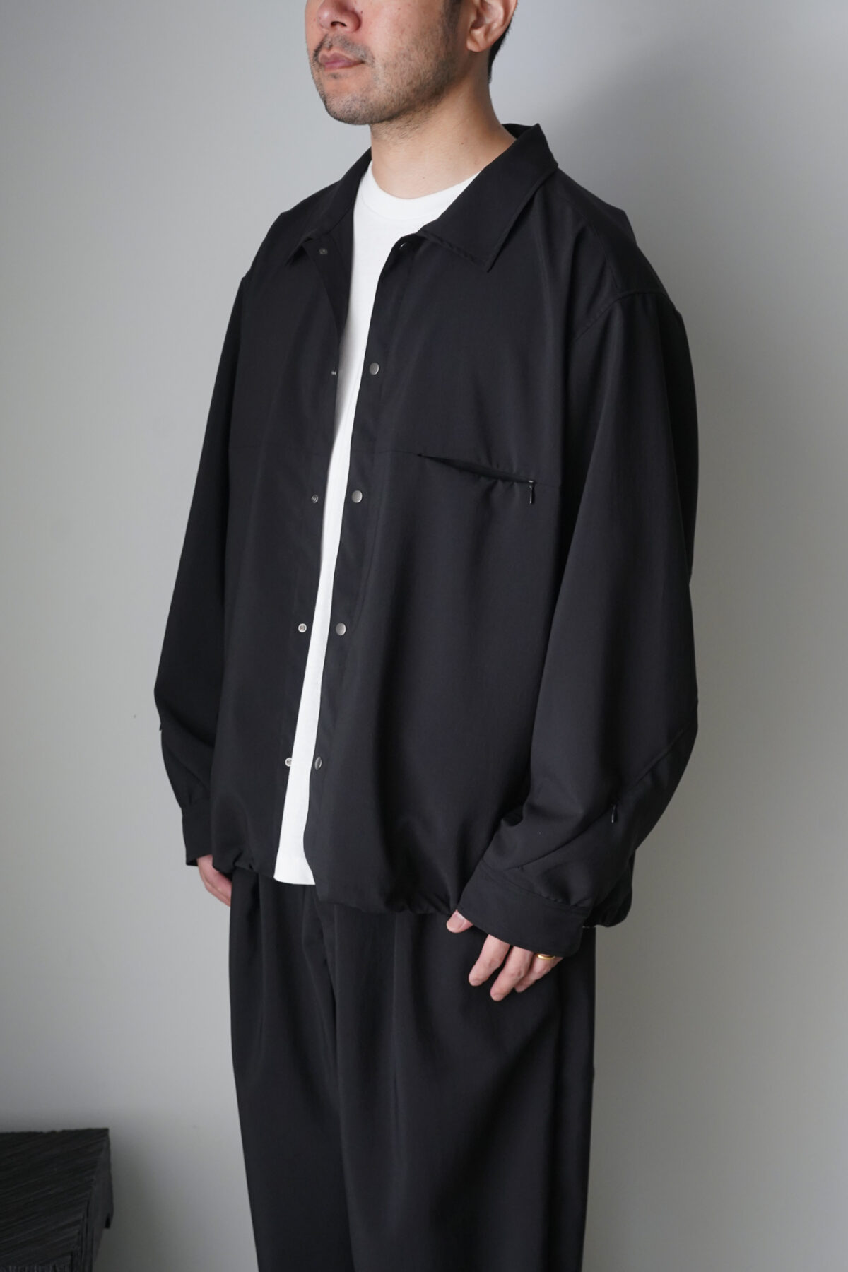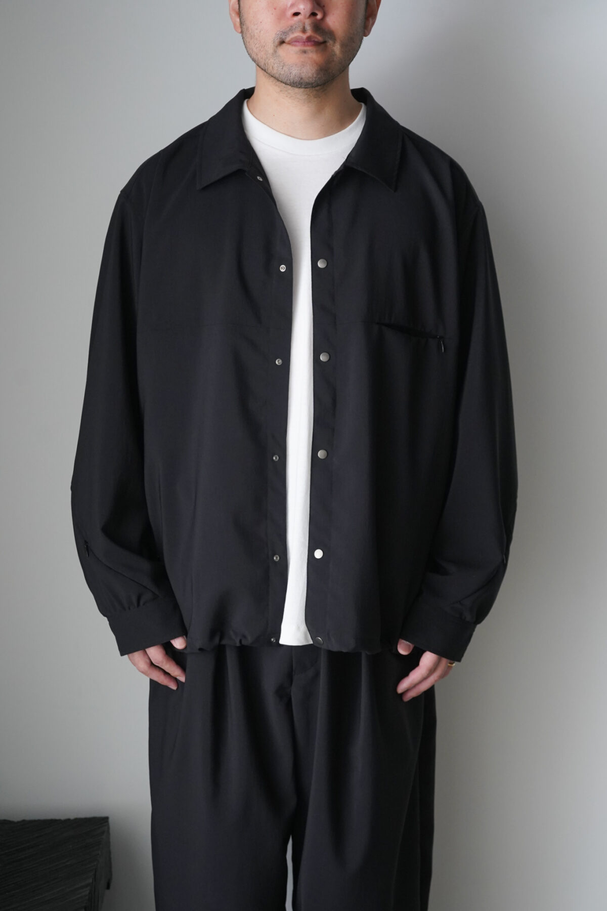 フロントにはスナップボタンを採用し、ドローコードによってシルエットの調整も可能。