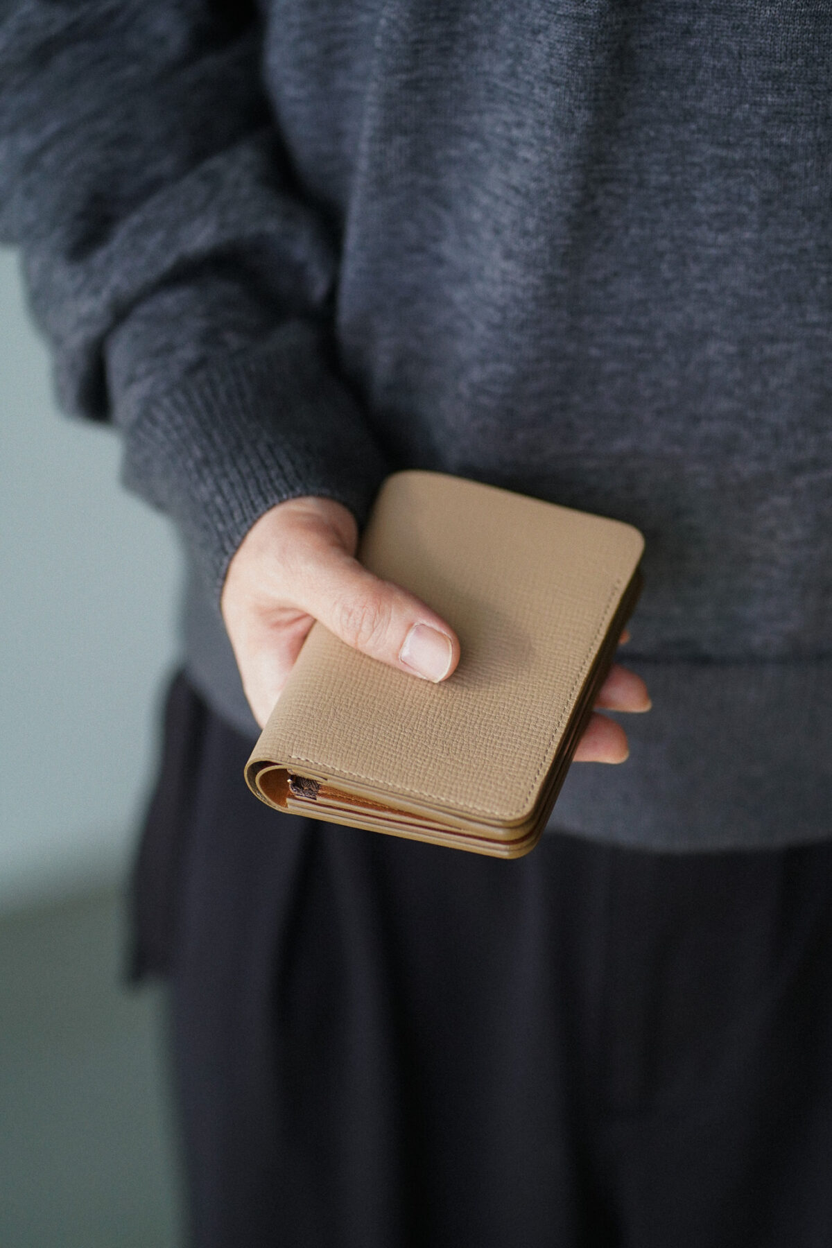 表にサーペンタイン(カウレザー)、内側にシングルホースフロント(ホースレザー)を使用したショートウォレット。メインのお財布としてご使用いただける容量を確保しつつ、大変収まりのいいサイズ感です。ジップにはYKKエクセラZIPが使用され大変滑らかで品を感じます。クラシックな印象を持ち、現代的な仕様、サイズ感に仕上げられています。