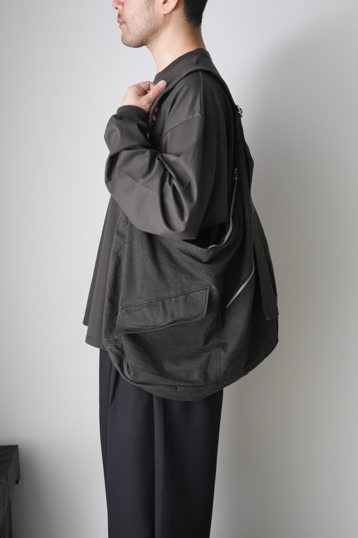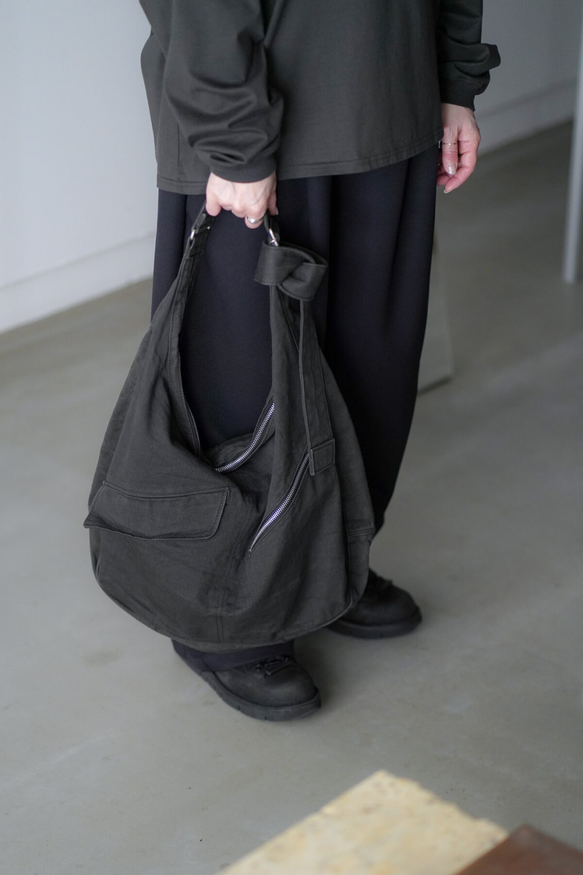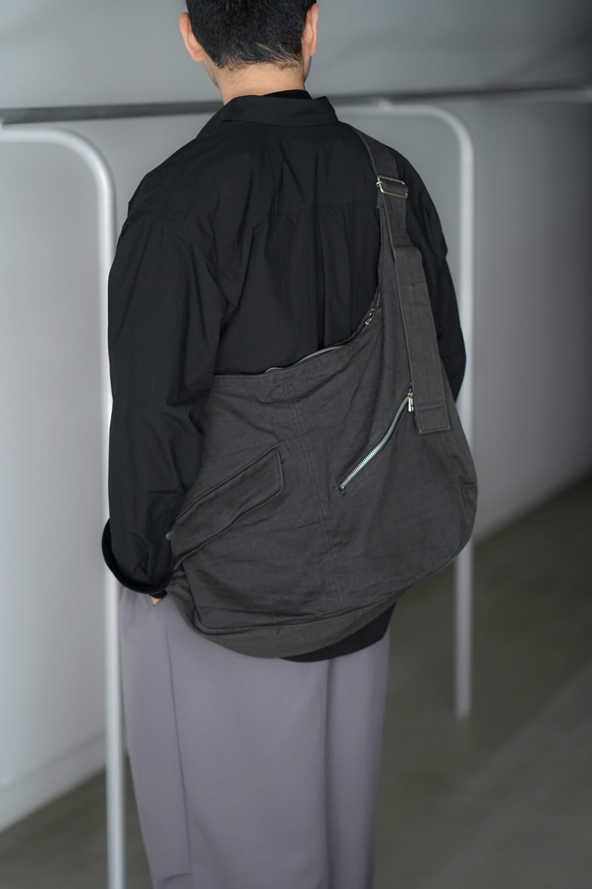 硫化染めを施したチノクロスを使用したショルダーバッグ。