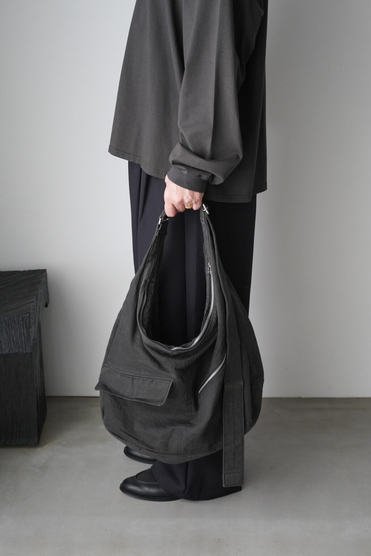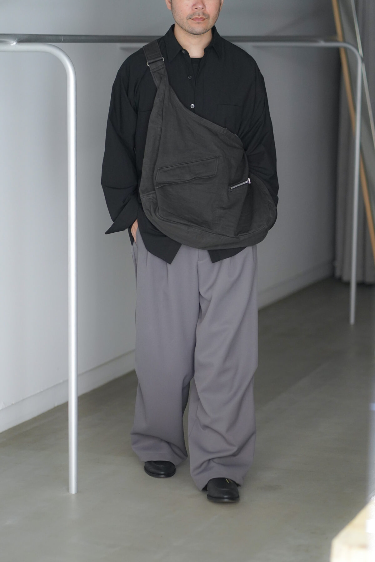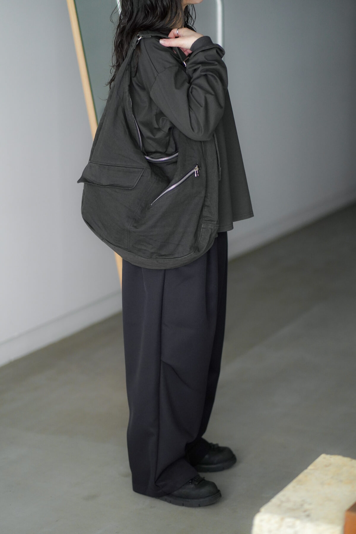 硫化染めを施したチノクロスを使用したショルダーバッグ。