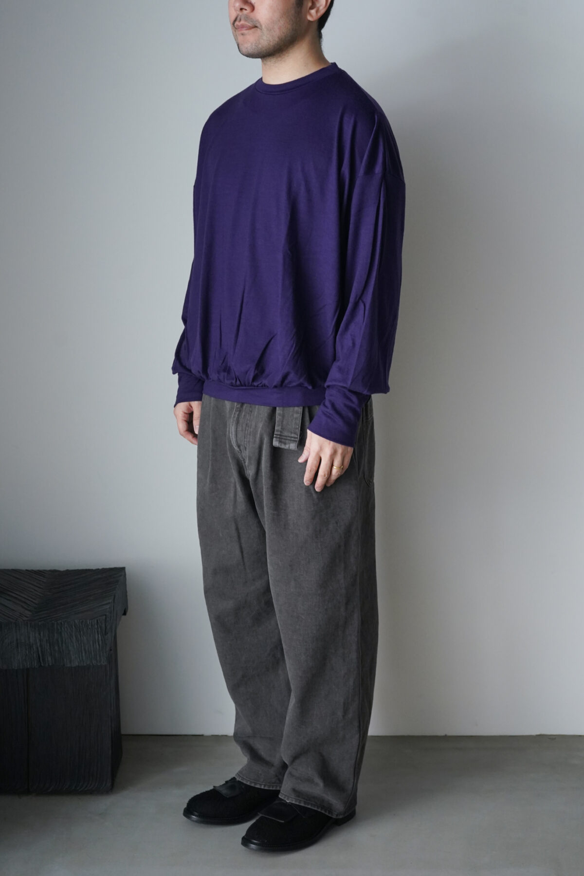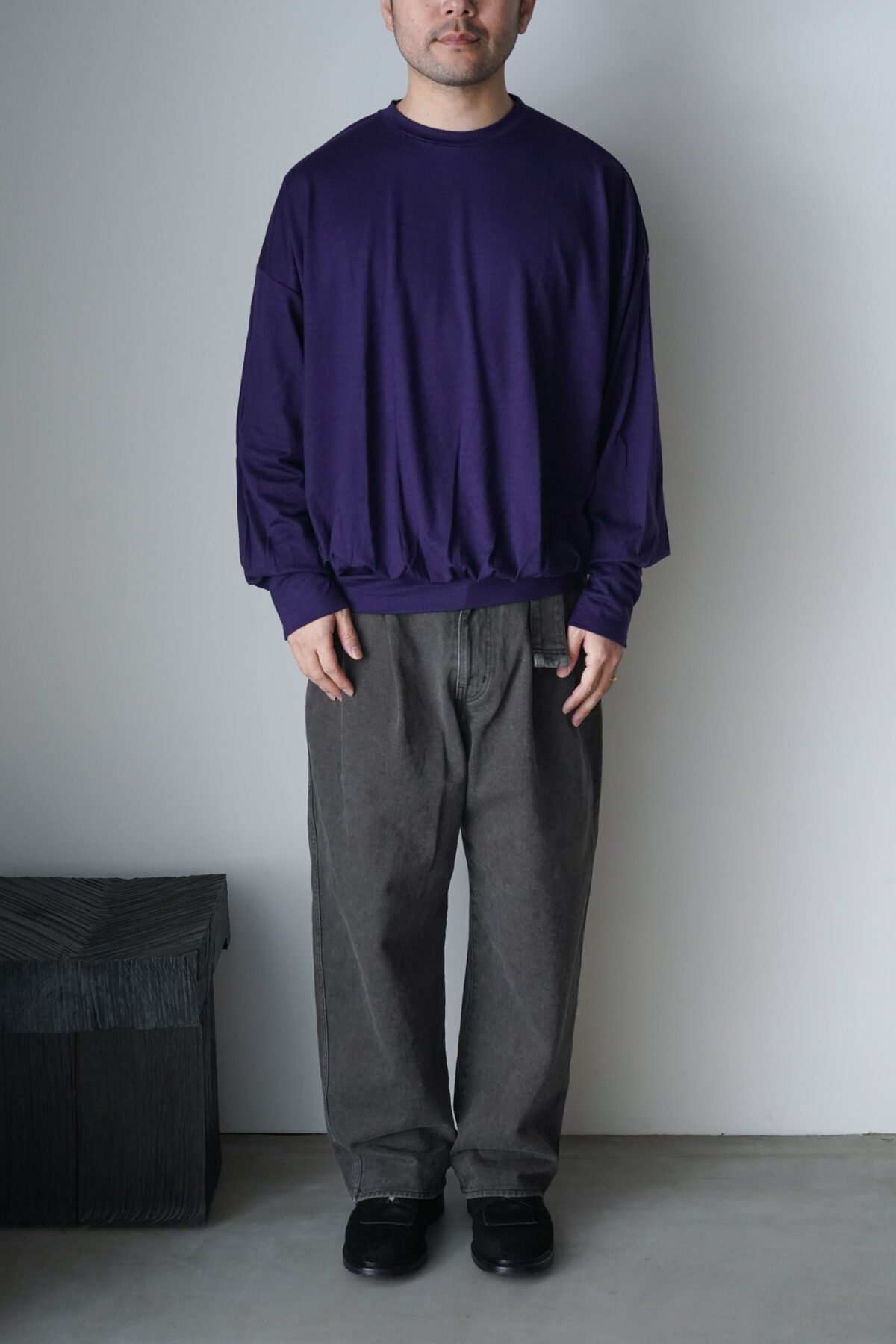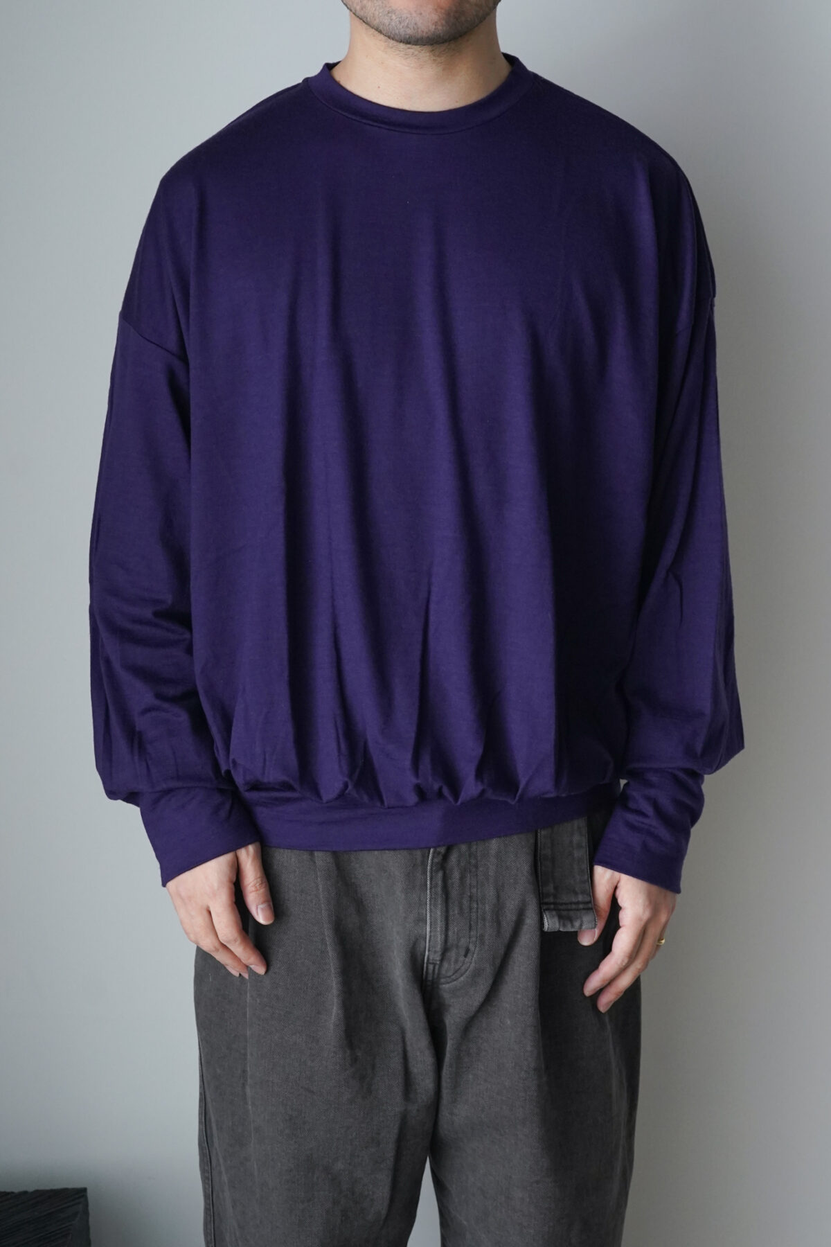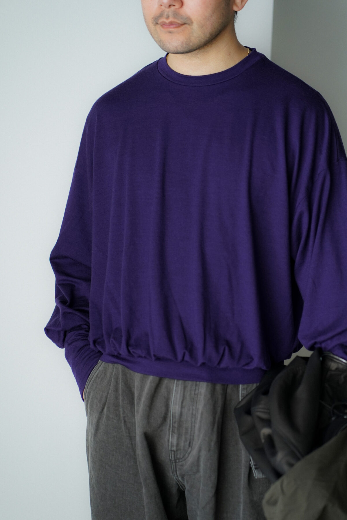 着用した際のフォルムが大変収まりよく、一枚で着てもインナーとしても重宝するbo top。お洗濯の際、イージケアなのも着用の頻度が高い理由と思っております。サイズは2サイズ、freeとlooseを揃えさせていただきました。