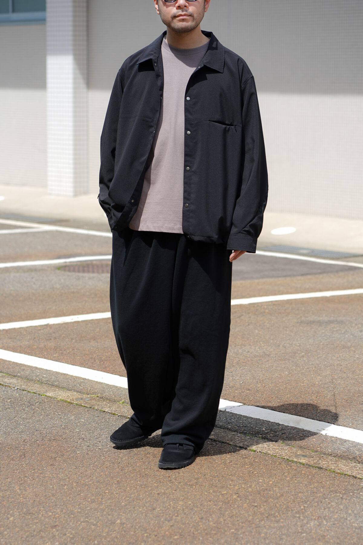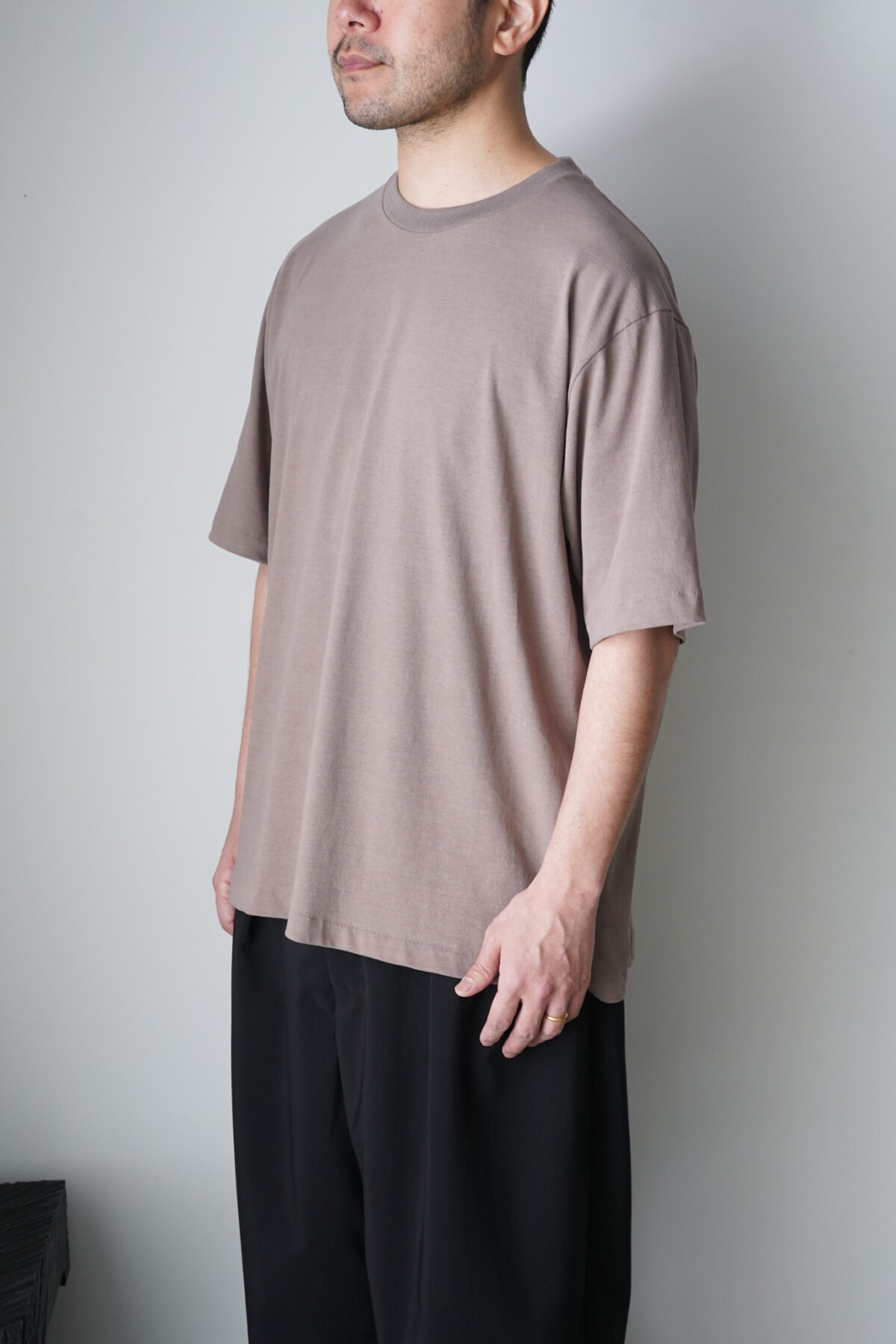 そういった要素を体現した一枚。シルエットは程よい余白があり、キュプラ混の素材は、ドライな肌触りとドレープ感が特徴です。