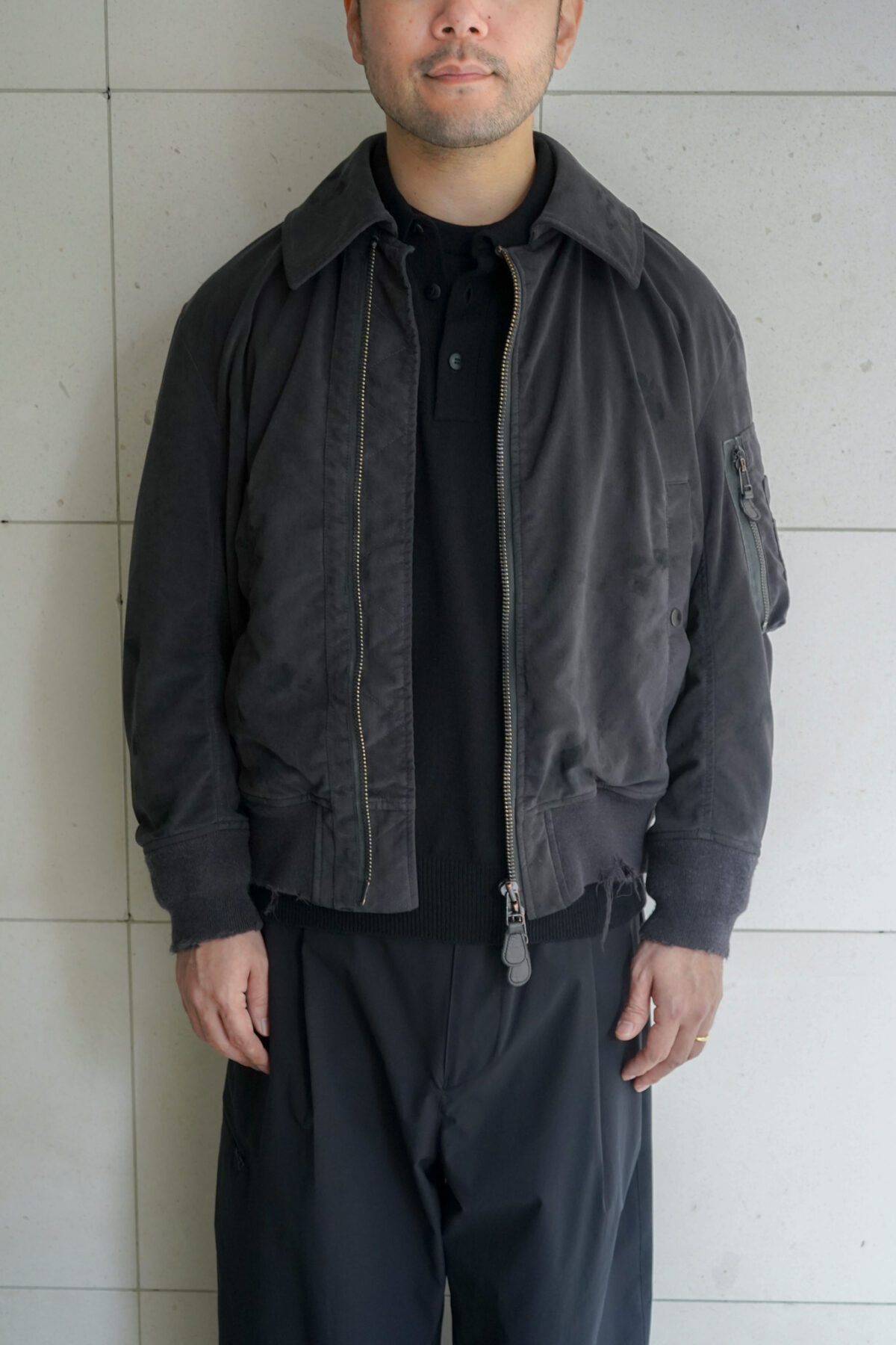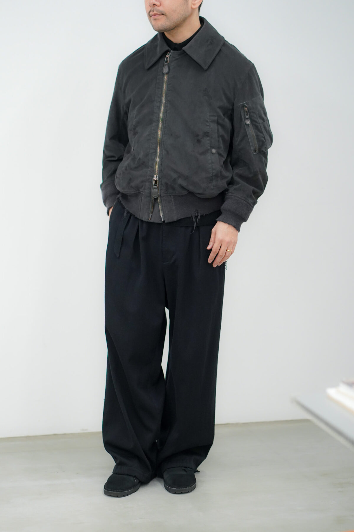 Product Twelve ULTRA SUEDE AGING FLIGHT JACKET CHARCOAL