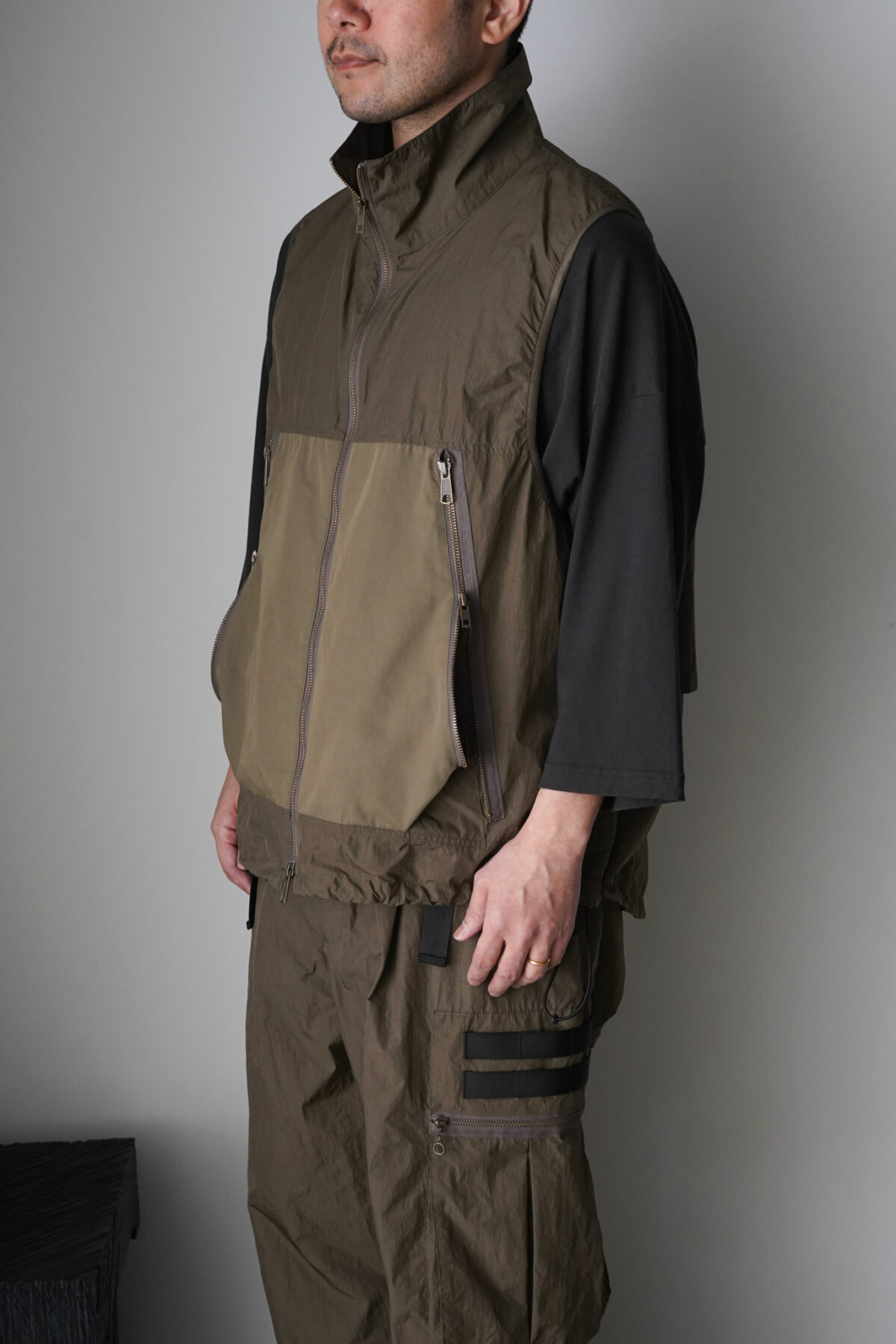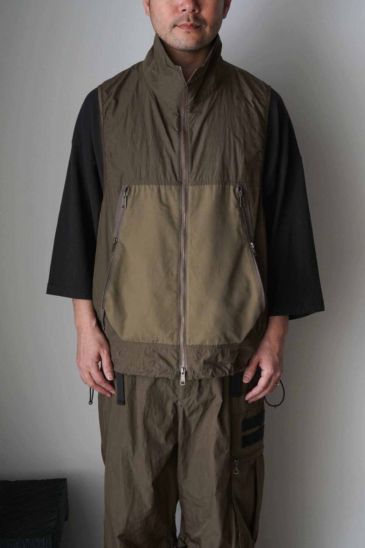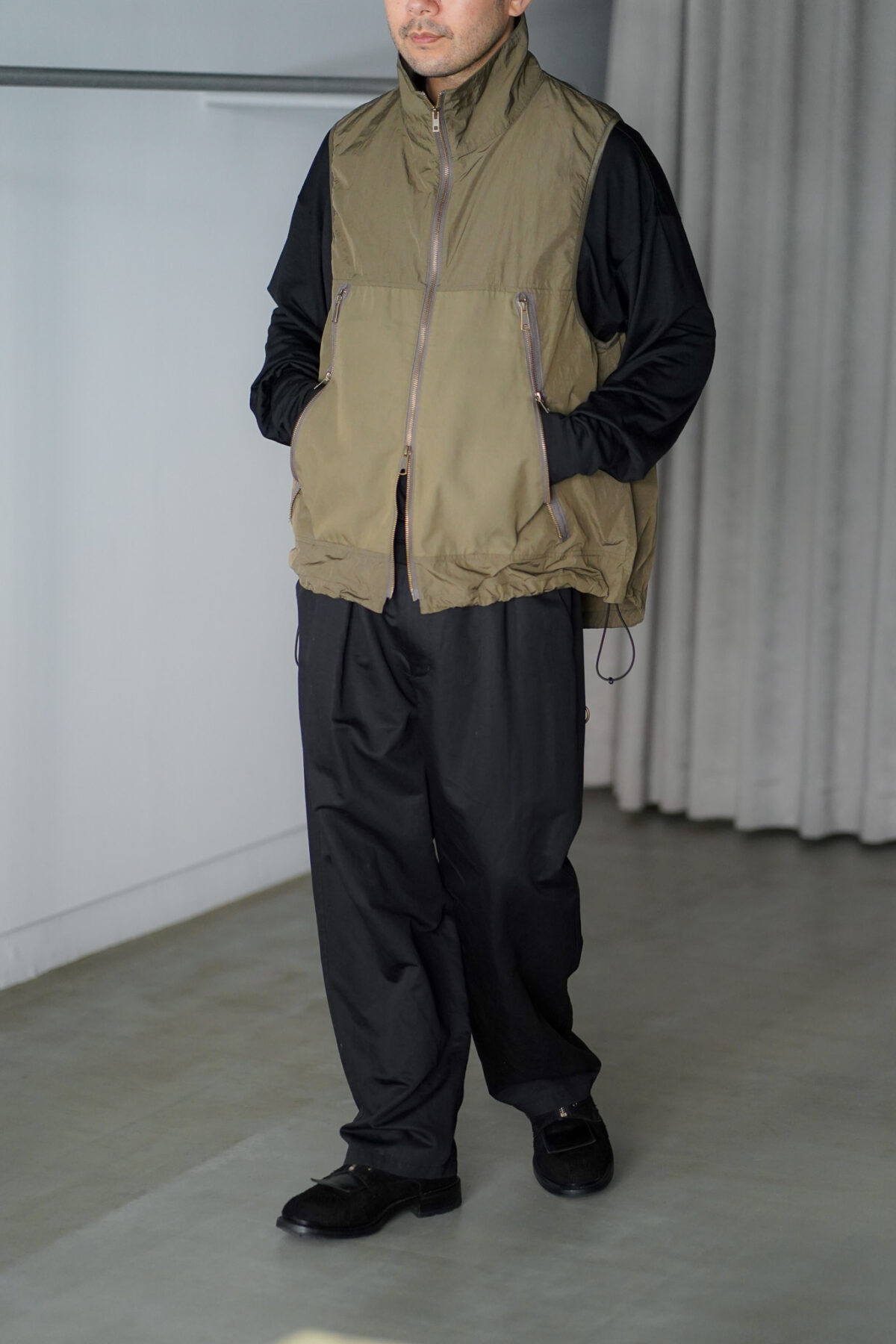 同色の中で素材や質感の違いを活かし、奥行きのある立体的な表情に仕上げられたベスト。