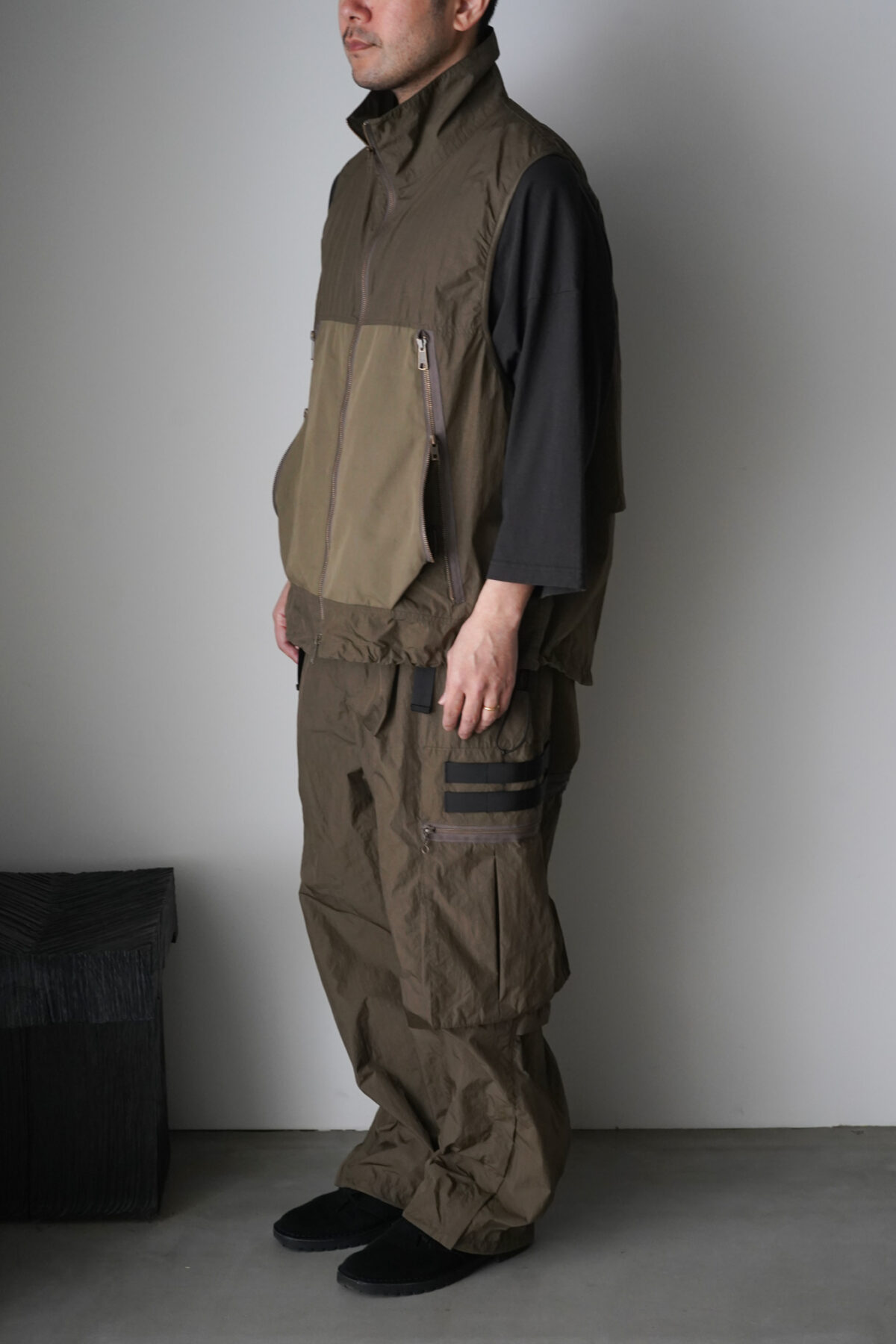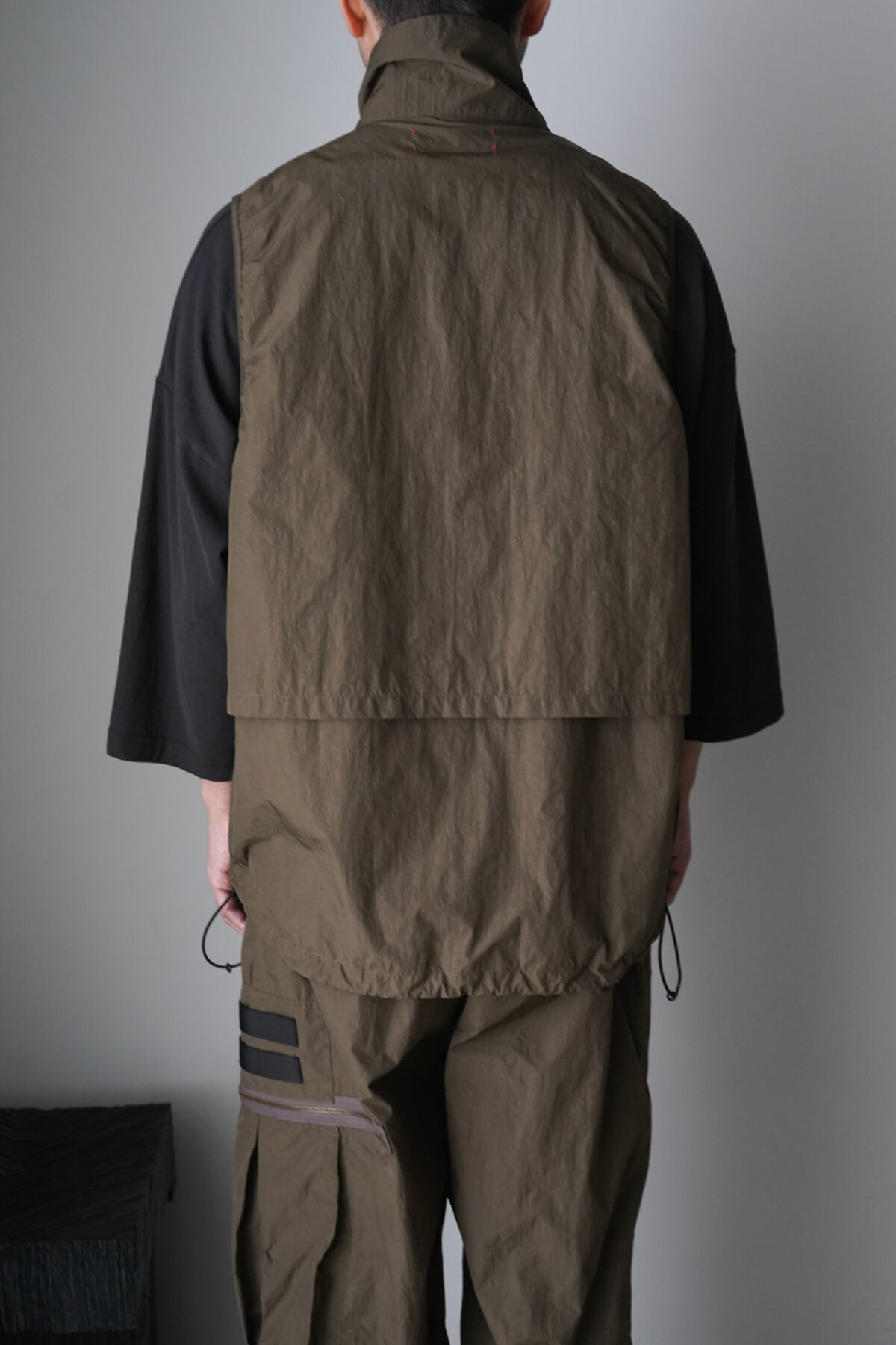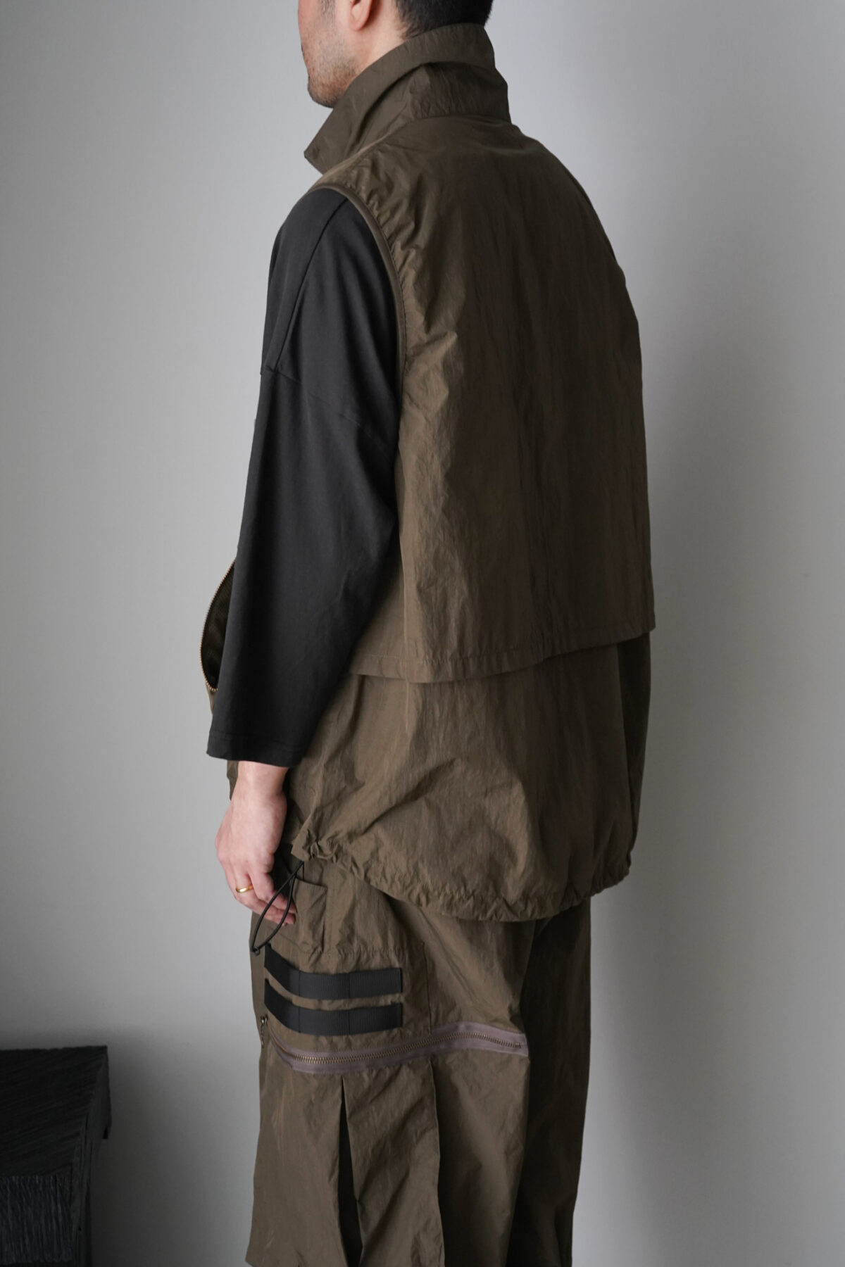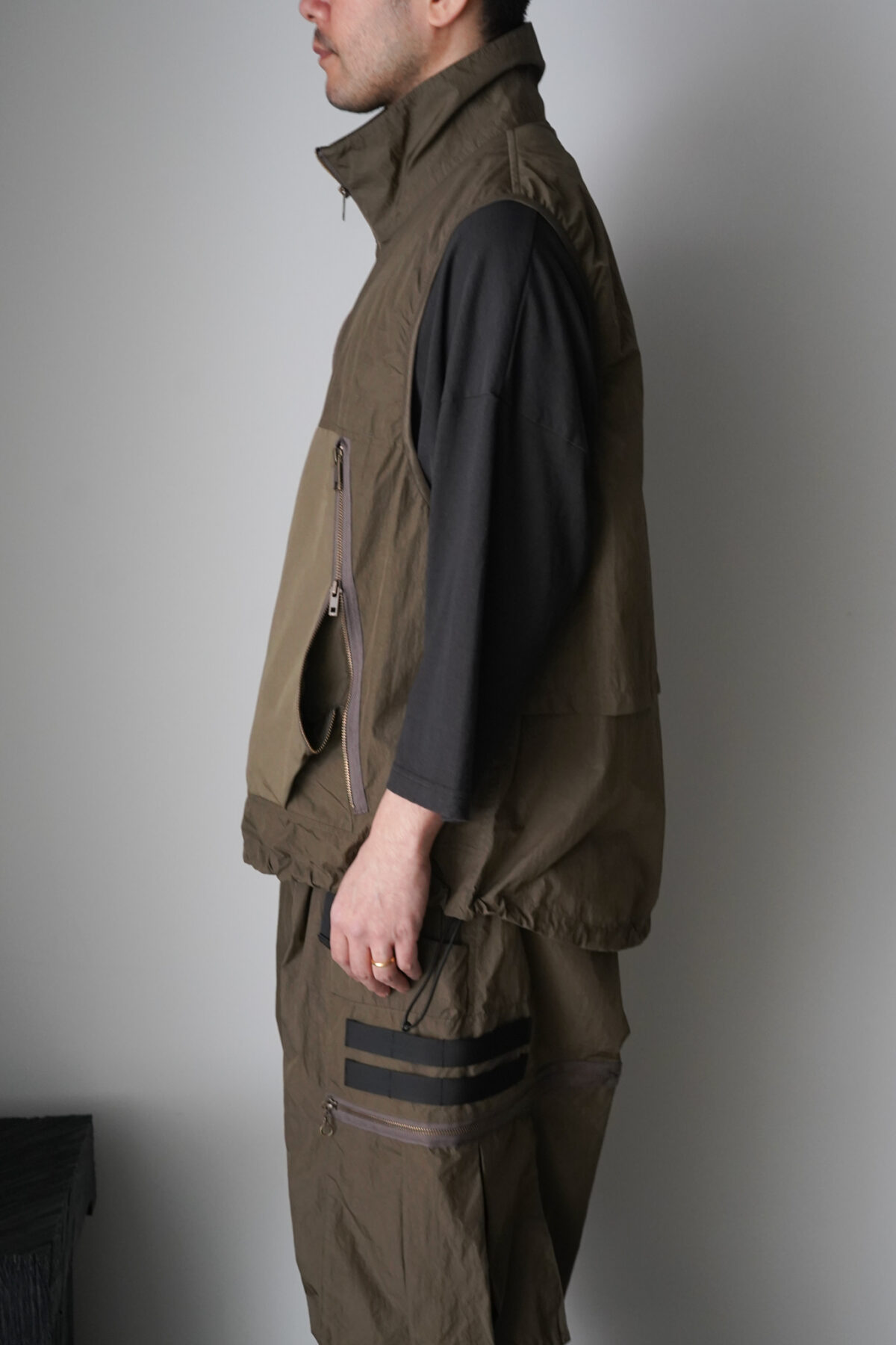 同色の中で素材や質感の違いを活かし、奥行きのある立体的な表情に仕上げられたベスト。